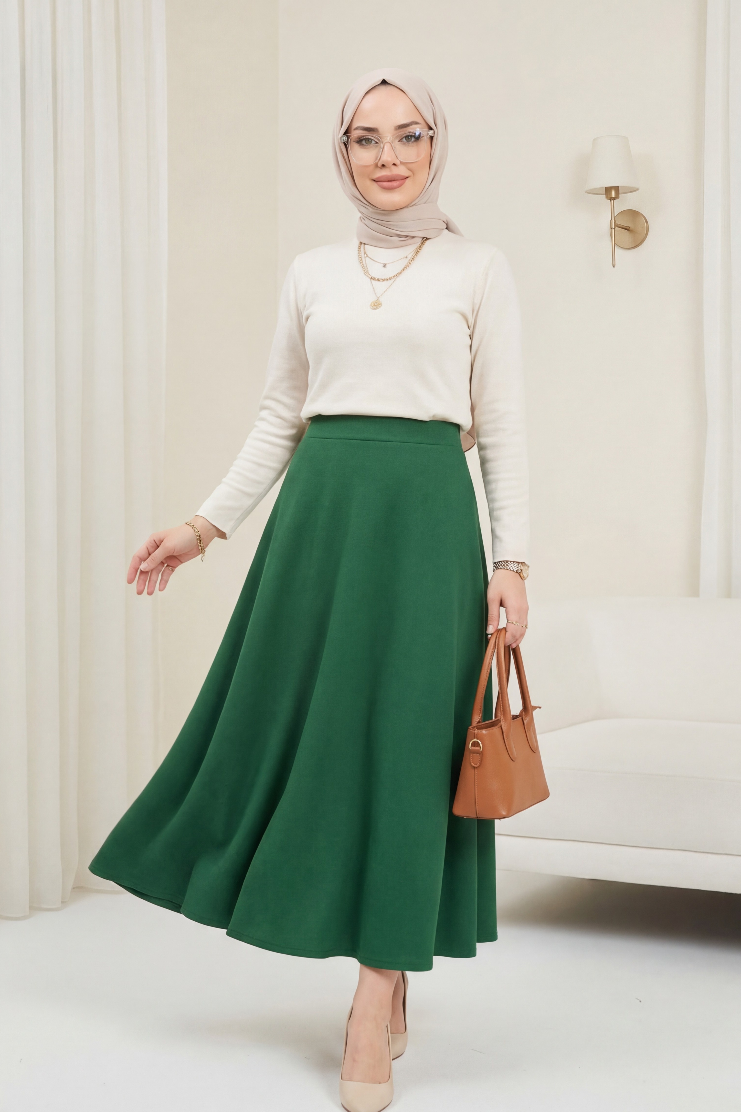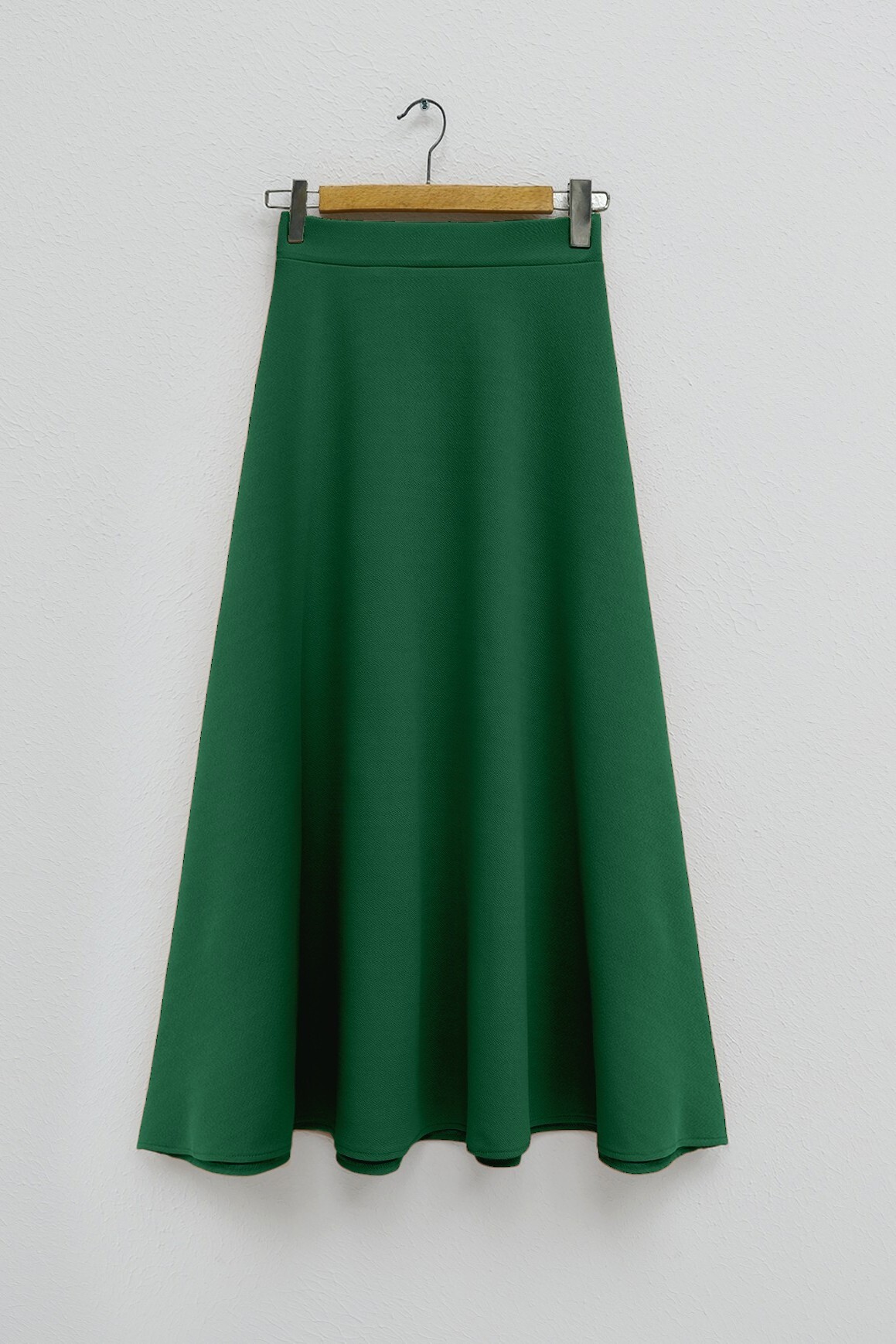 İthal Likralı Krep Kumaş Kiloş Çan Etek -Green