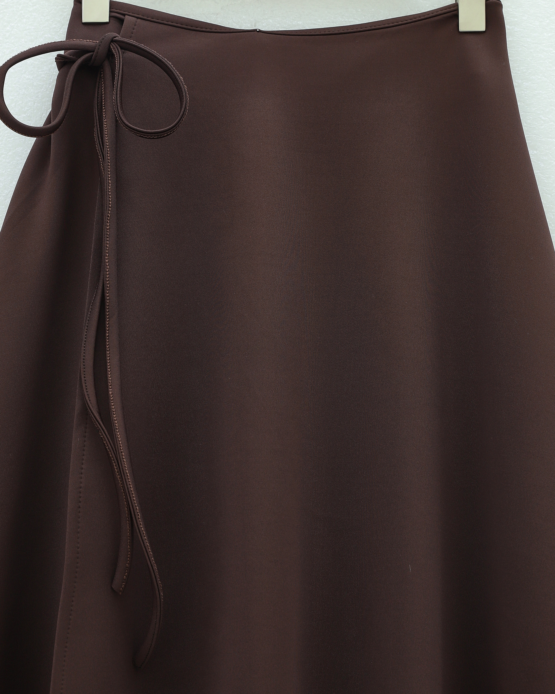 Layered Zippered Scuba Skirt with Side Tie Detail -Brown