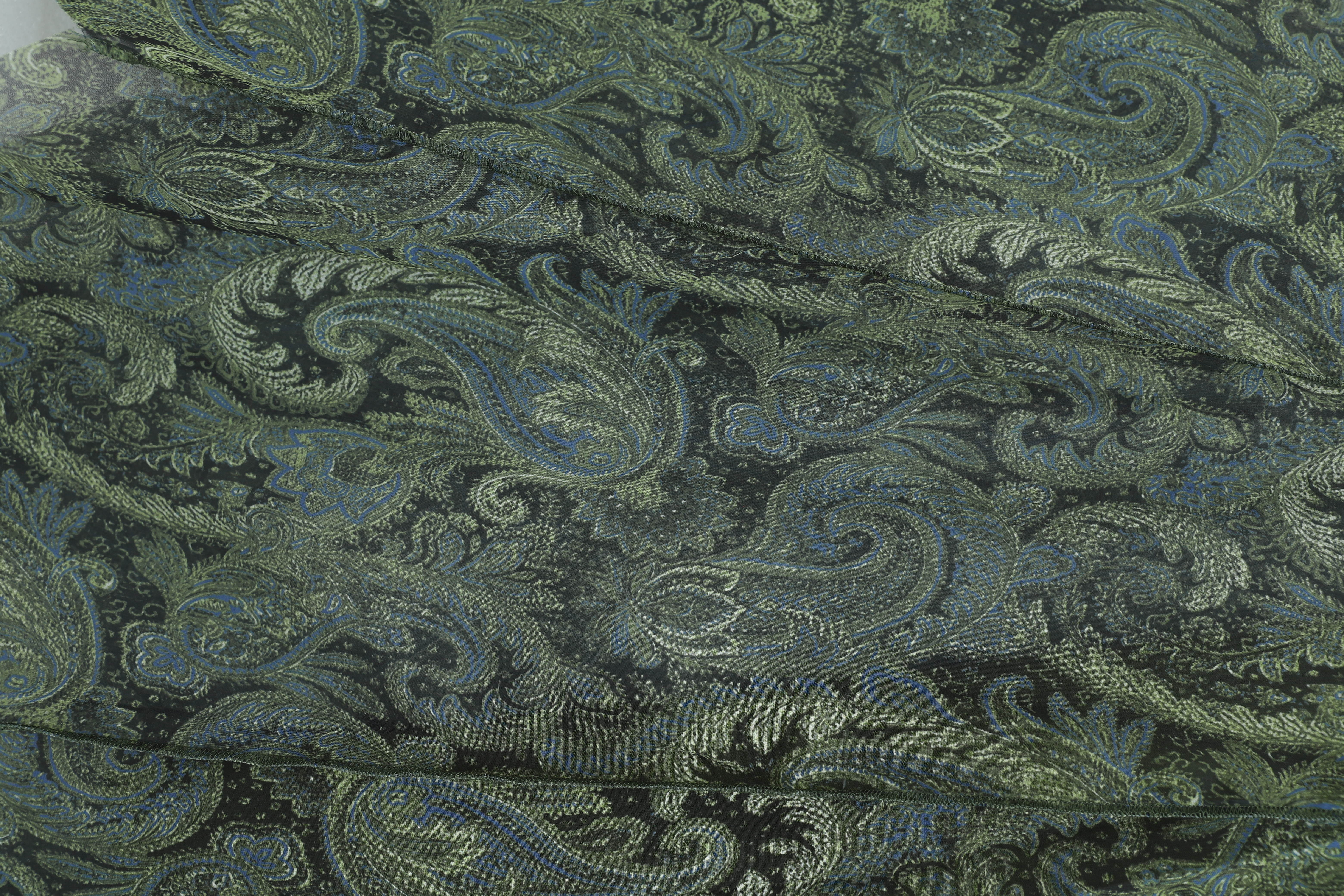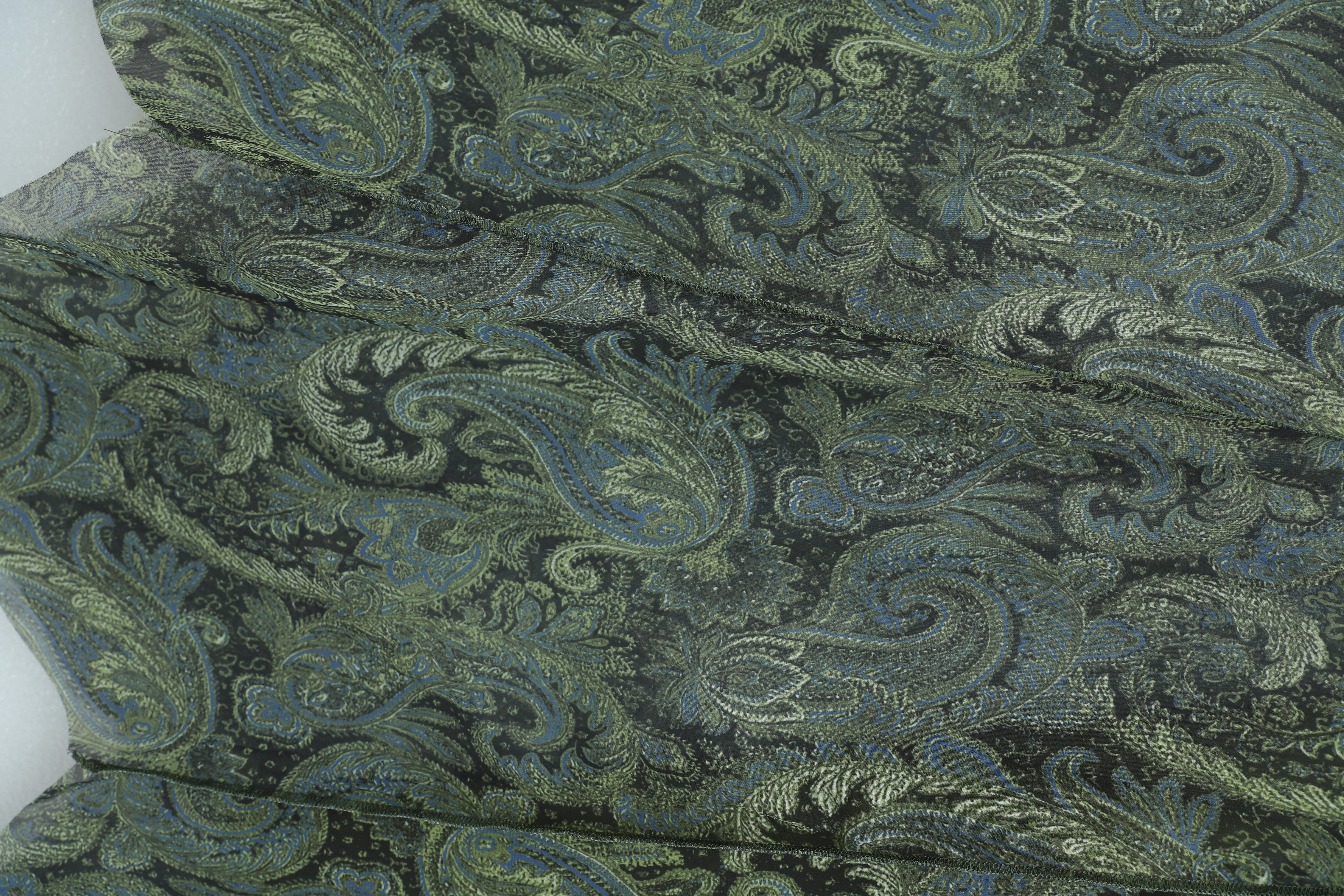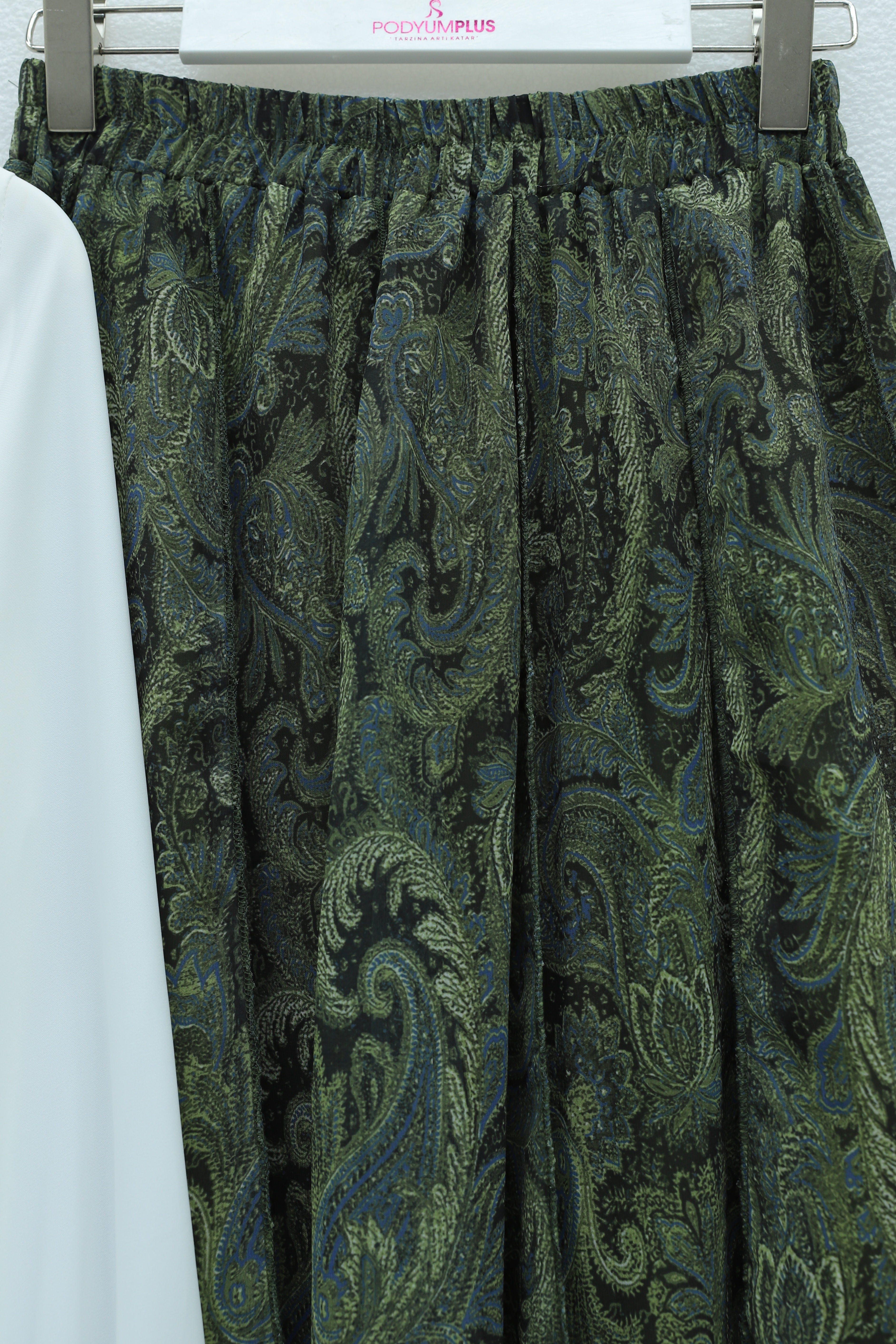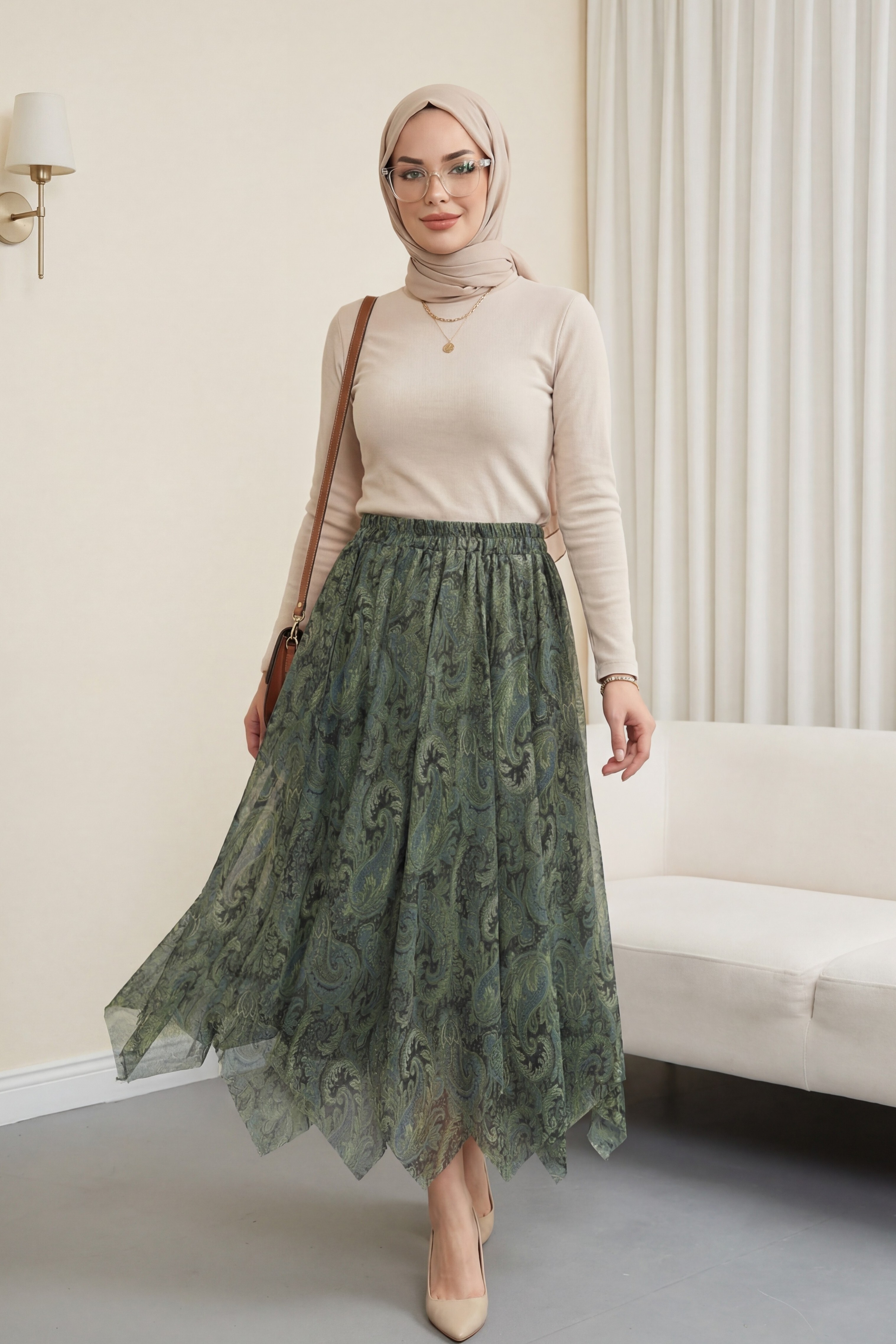 Patterned, Lined Chiffon Skirt with Elastic Waistband -Green