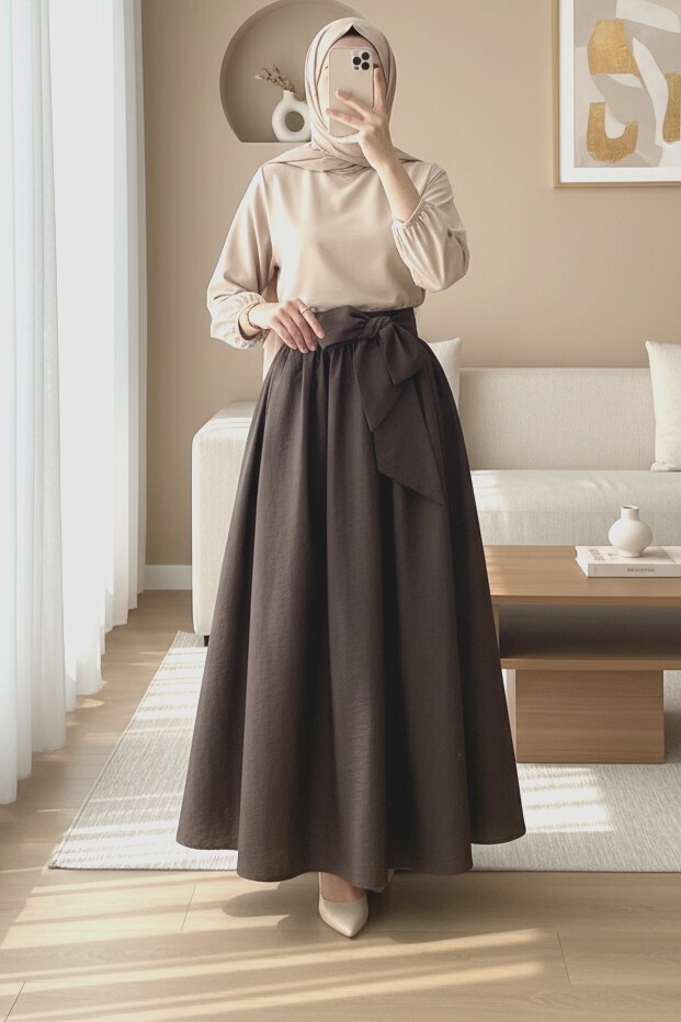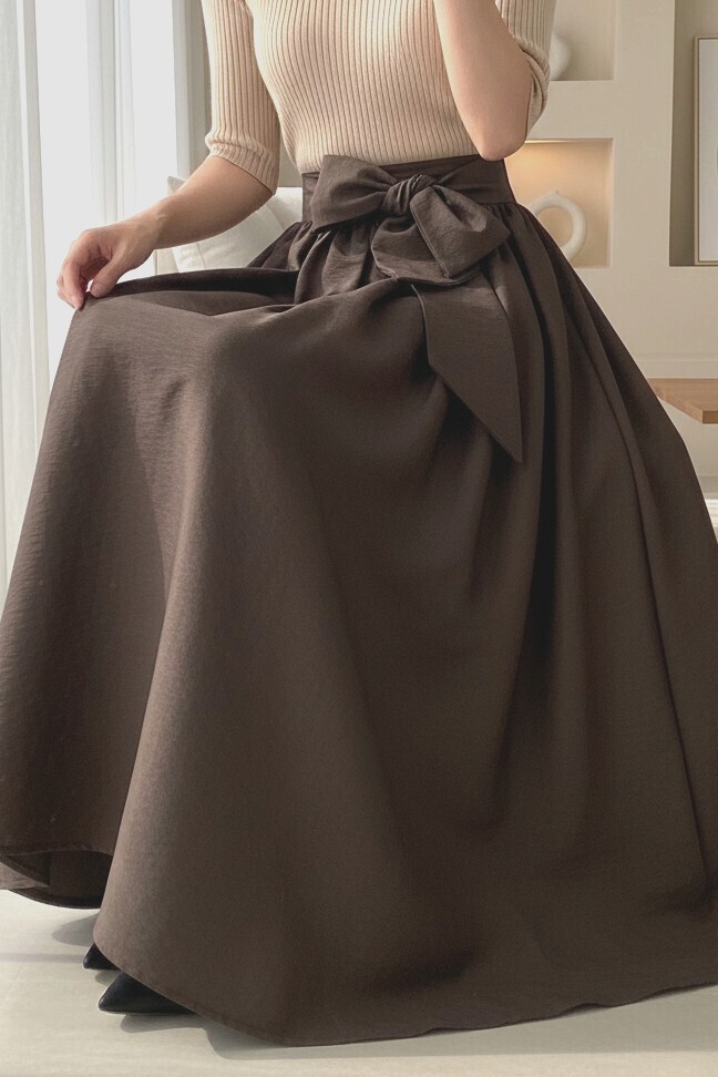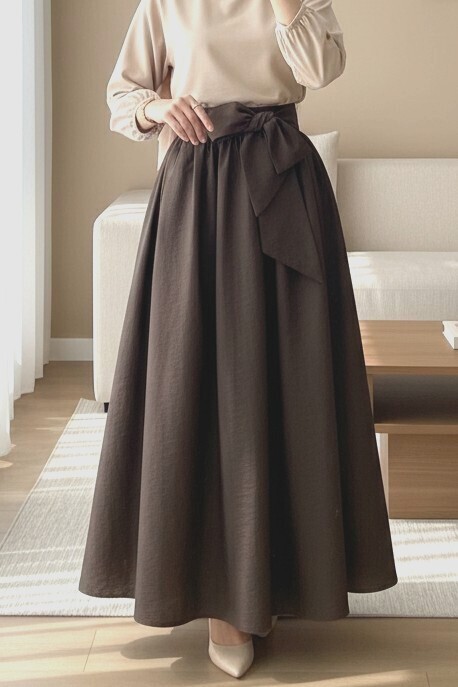 Pleated Belted Parachute Skirt -Dark Coffee