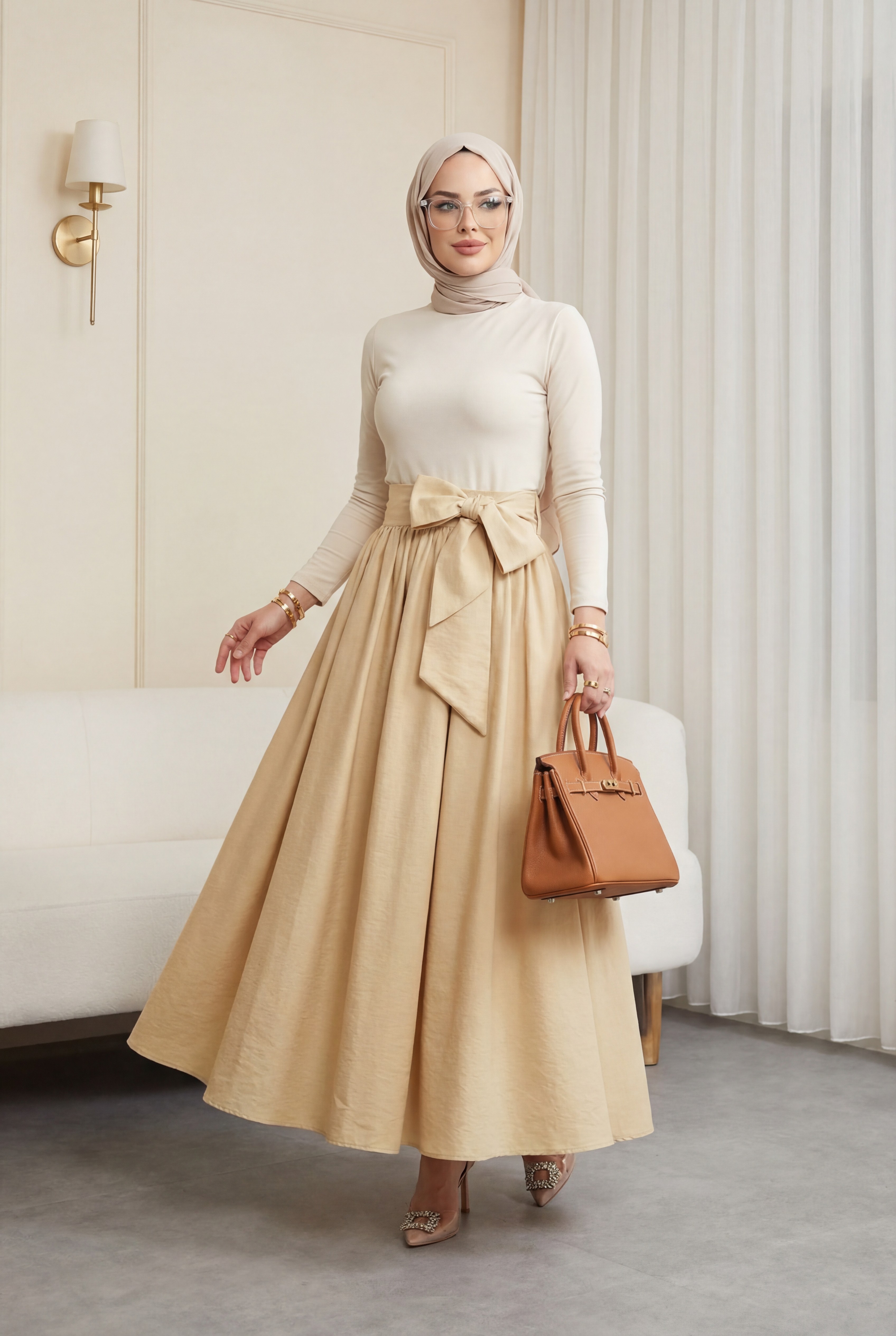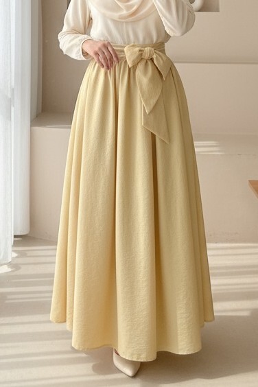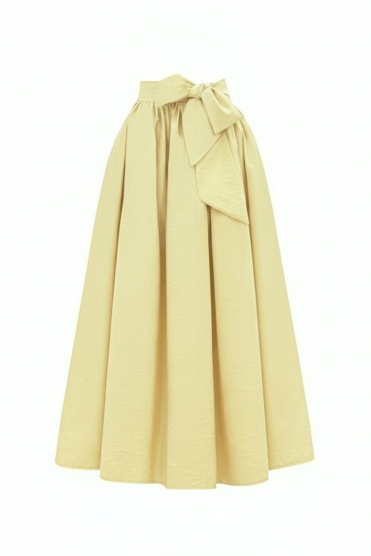Pleated Belted Parachute Skirt -Light yellow