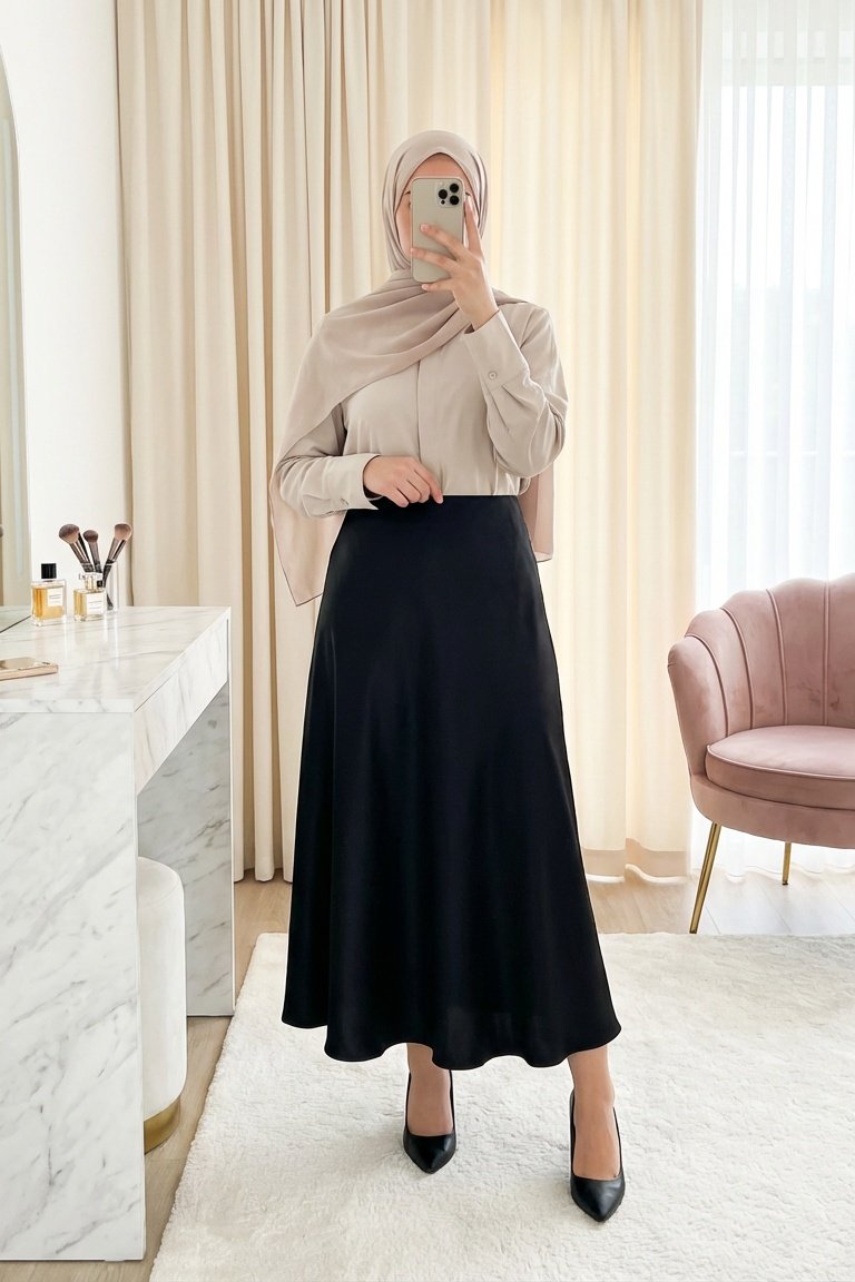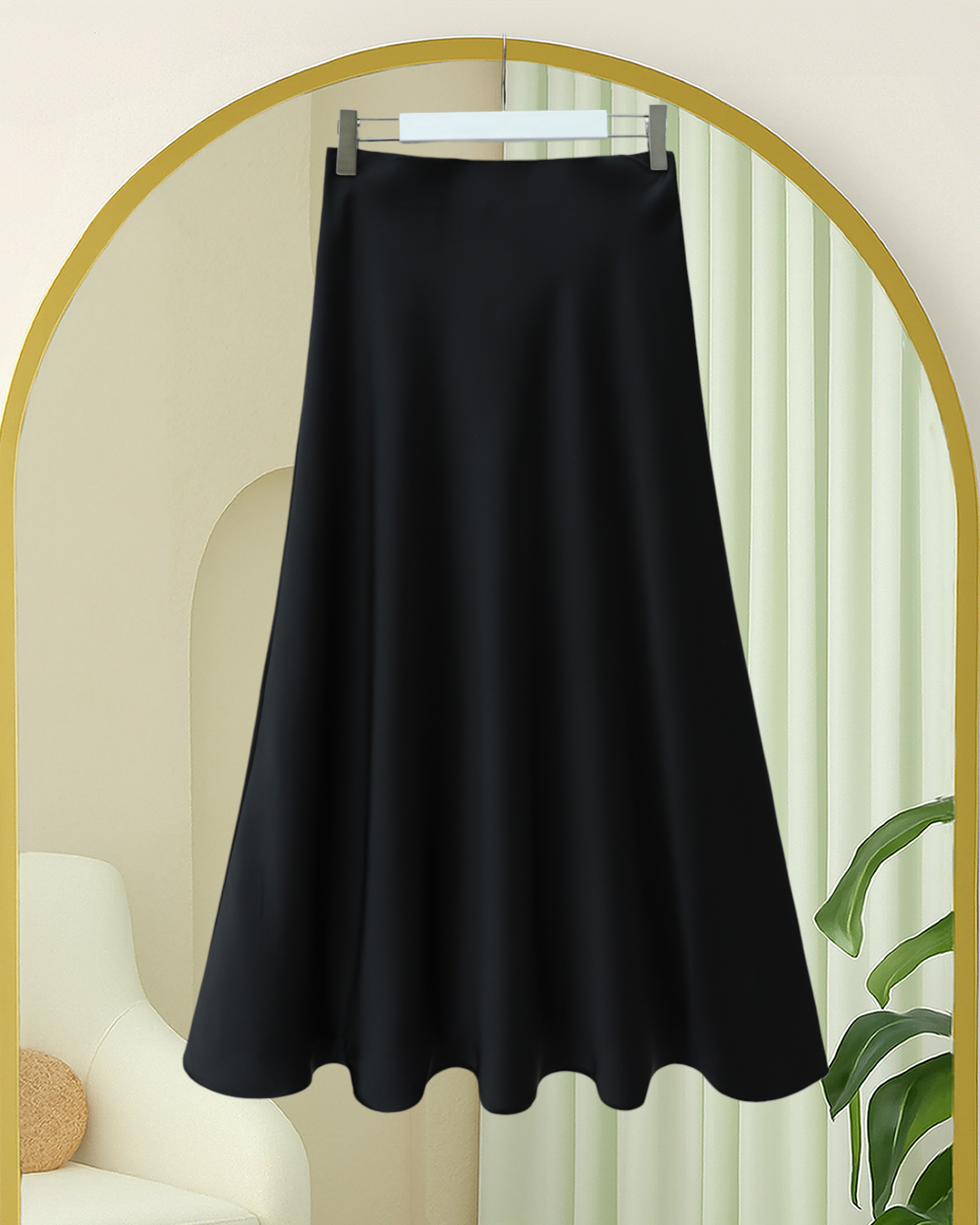 Zra Plain Satin Skirt -Black