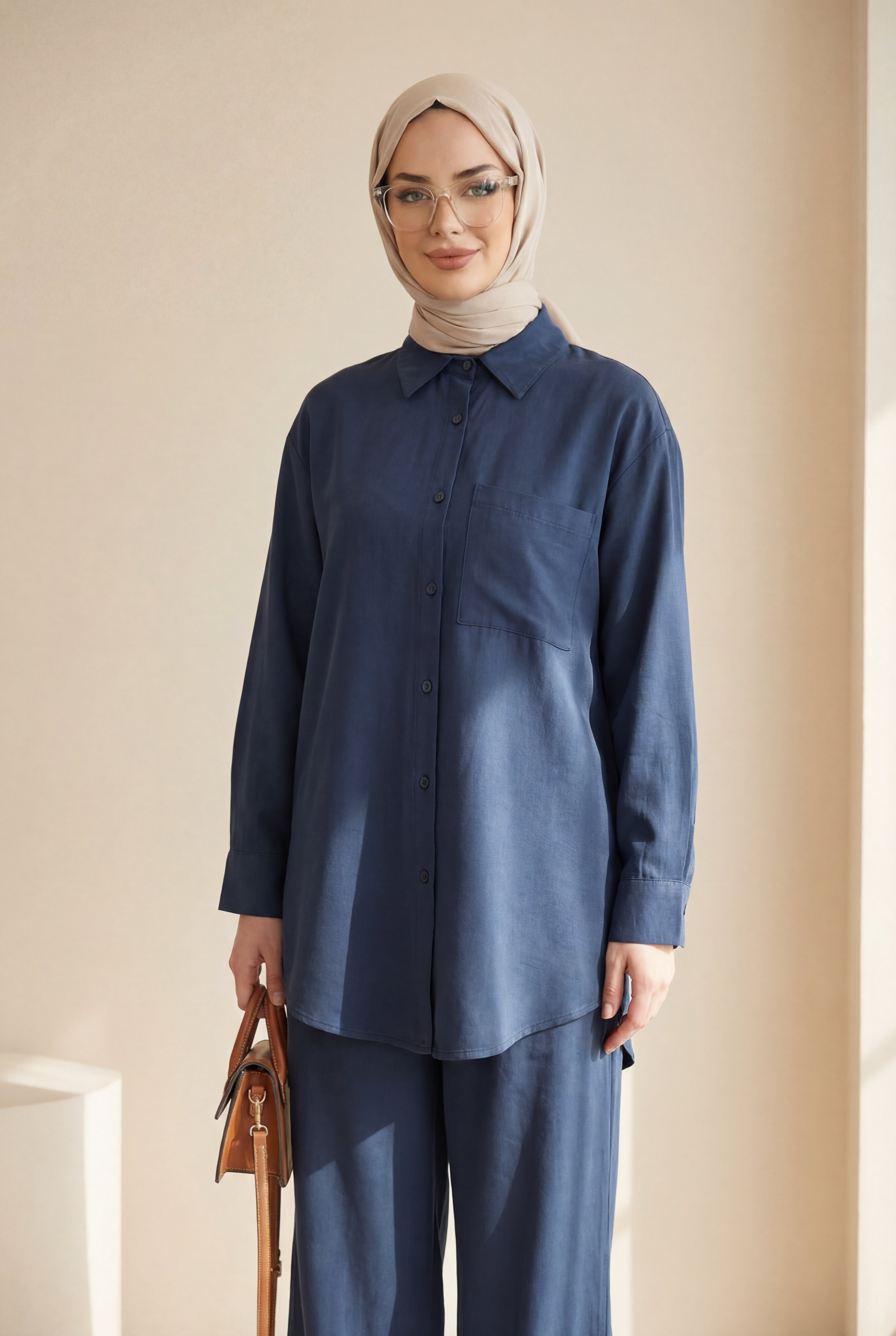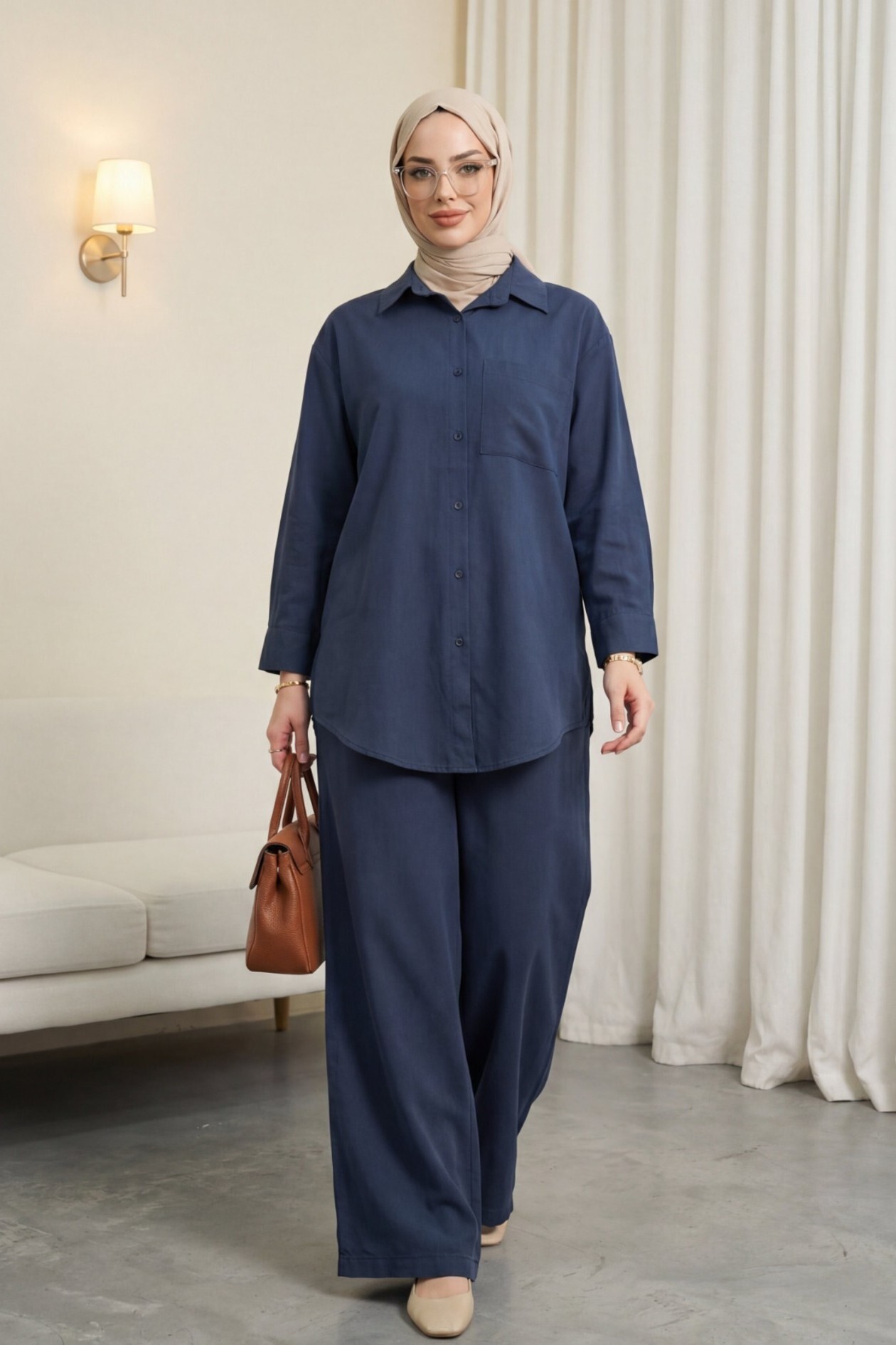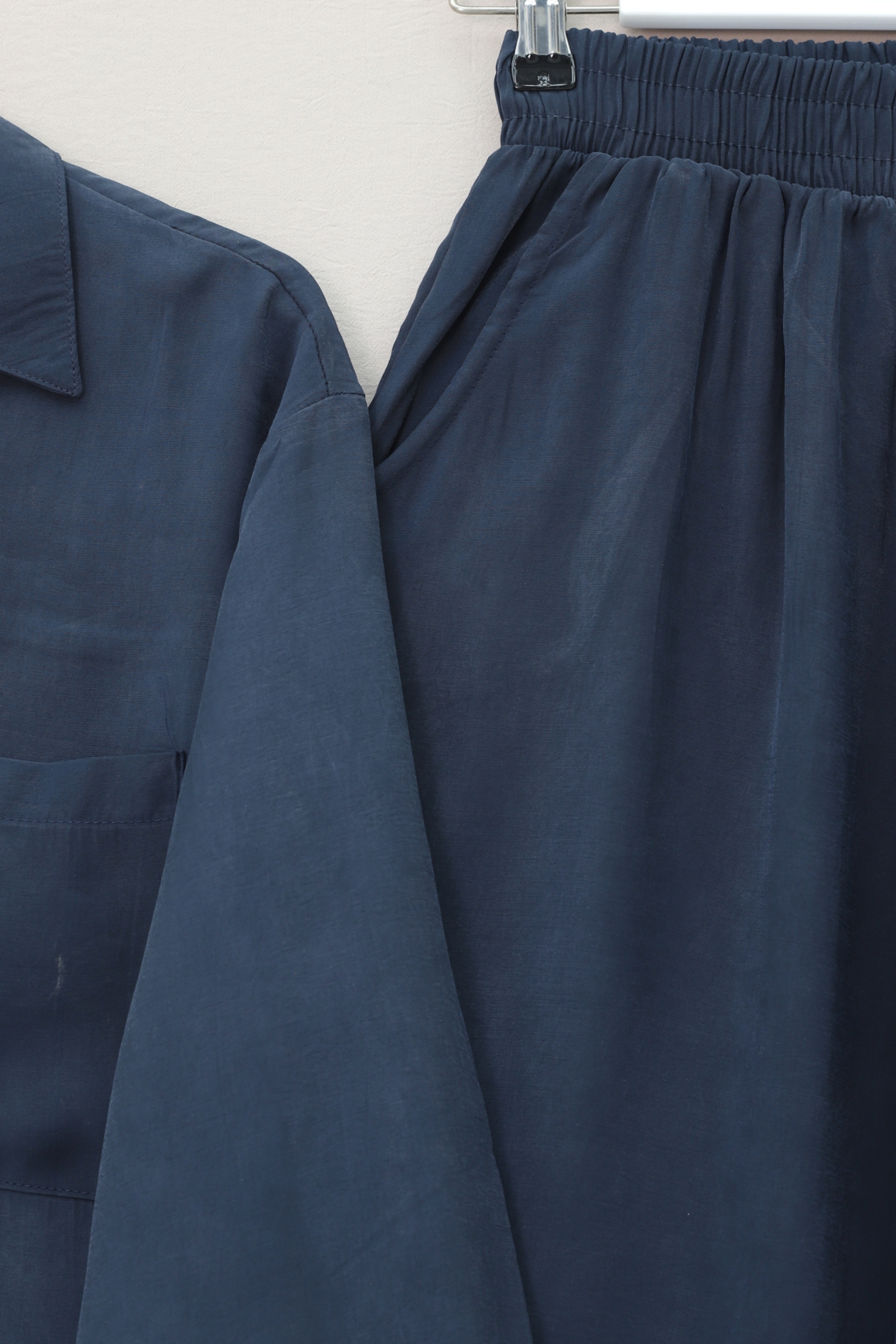 Button-front, single-pocket shirt and trousers suit -Navy blue