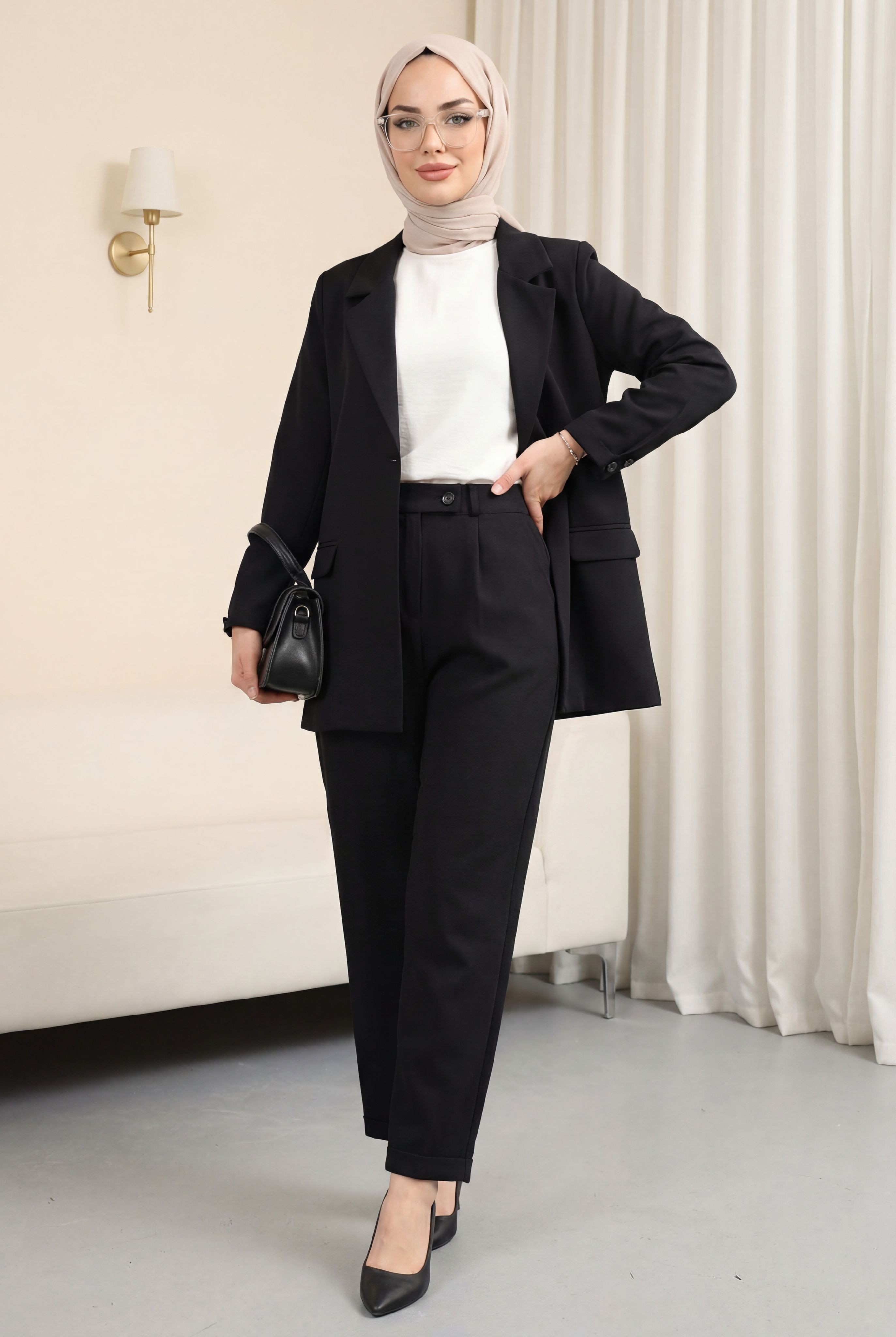 Kimono Set with Double Front Tie and Trousers -Mint Color