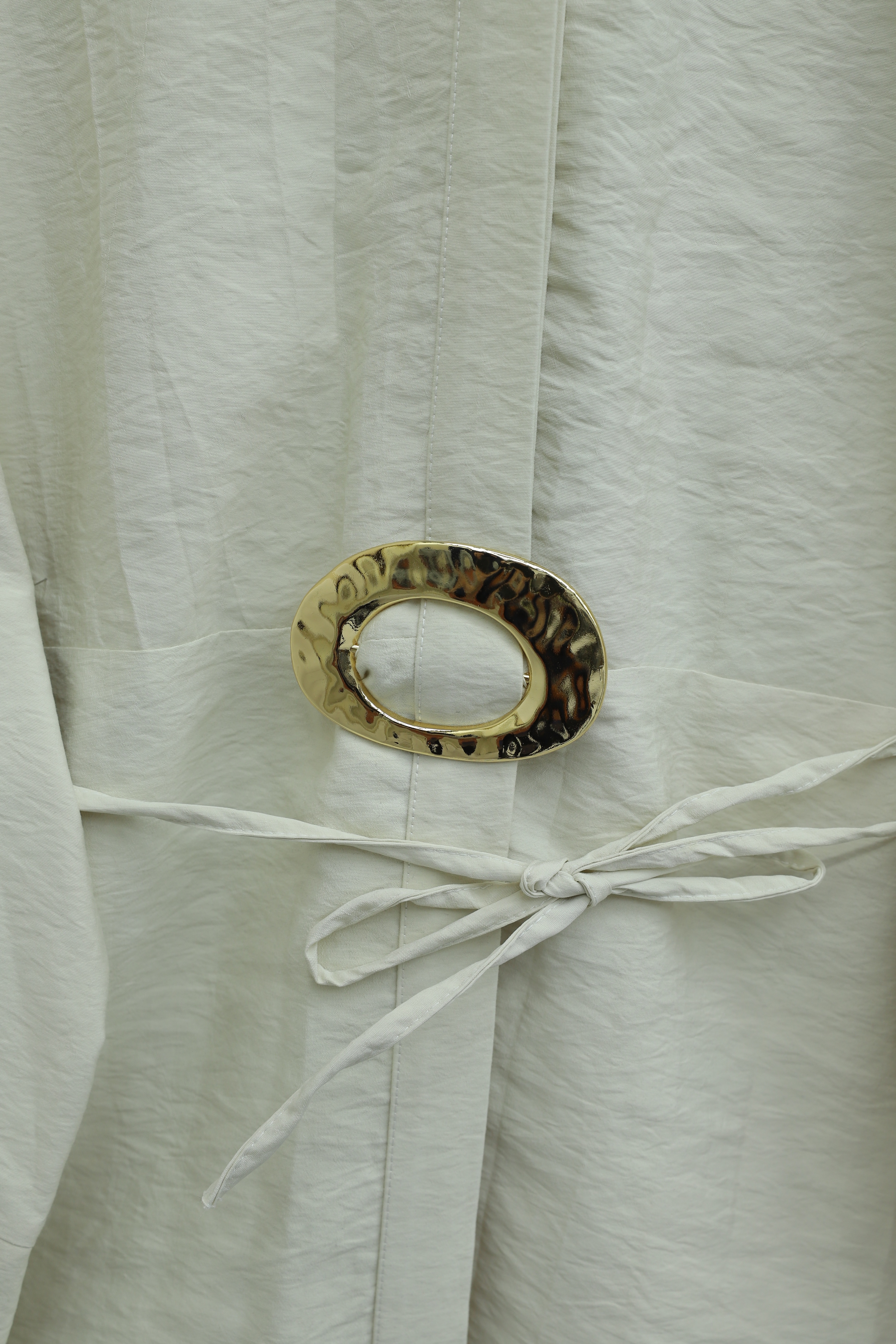 Button-Front Casual Shirt with Ribbon Detail -Oil Green