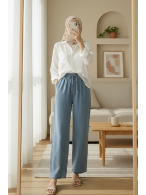Wide Leg Waist Elastic Lacing Detail Jeans -Ice Blue