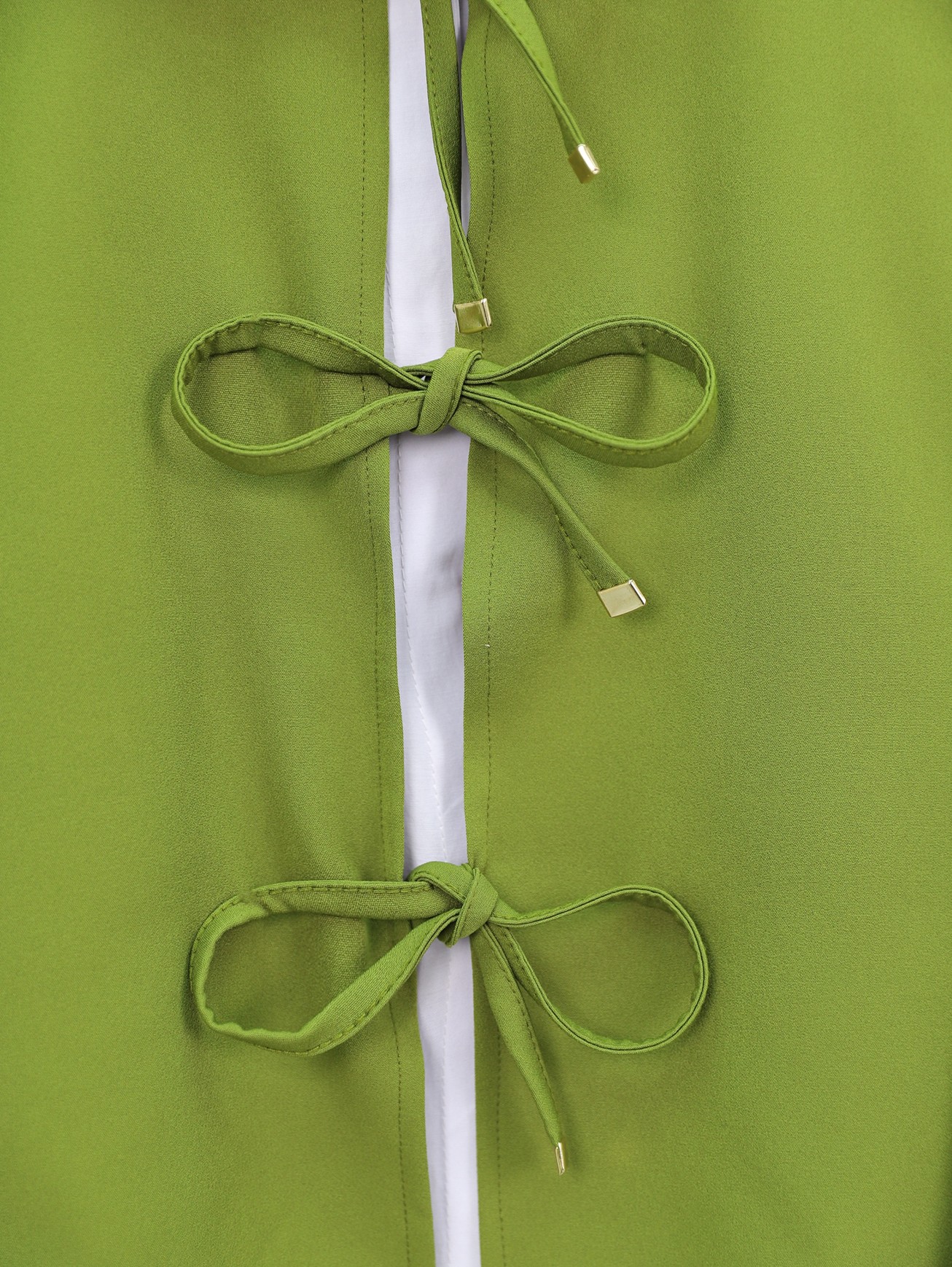 Front Laced Elastic Waist Bell Skirt Suit -PISTACHIO GREEN