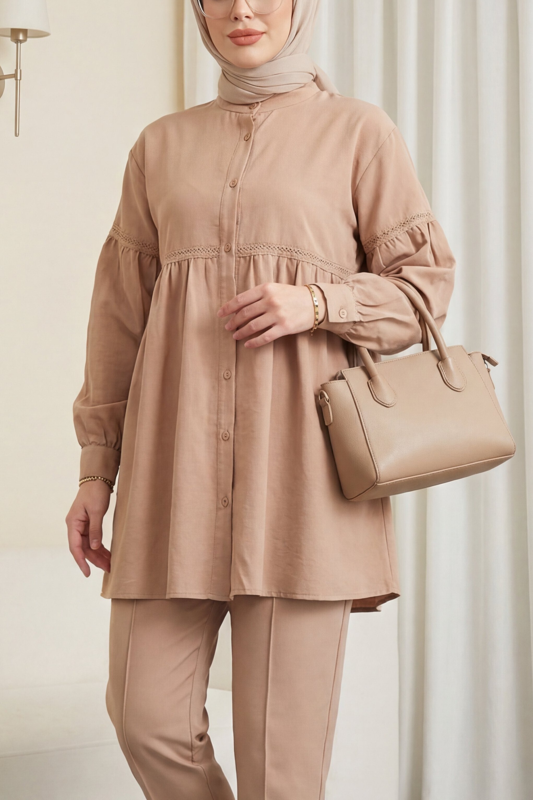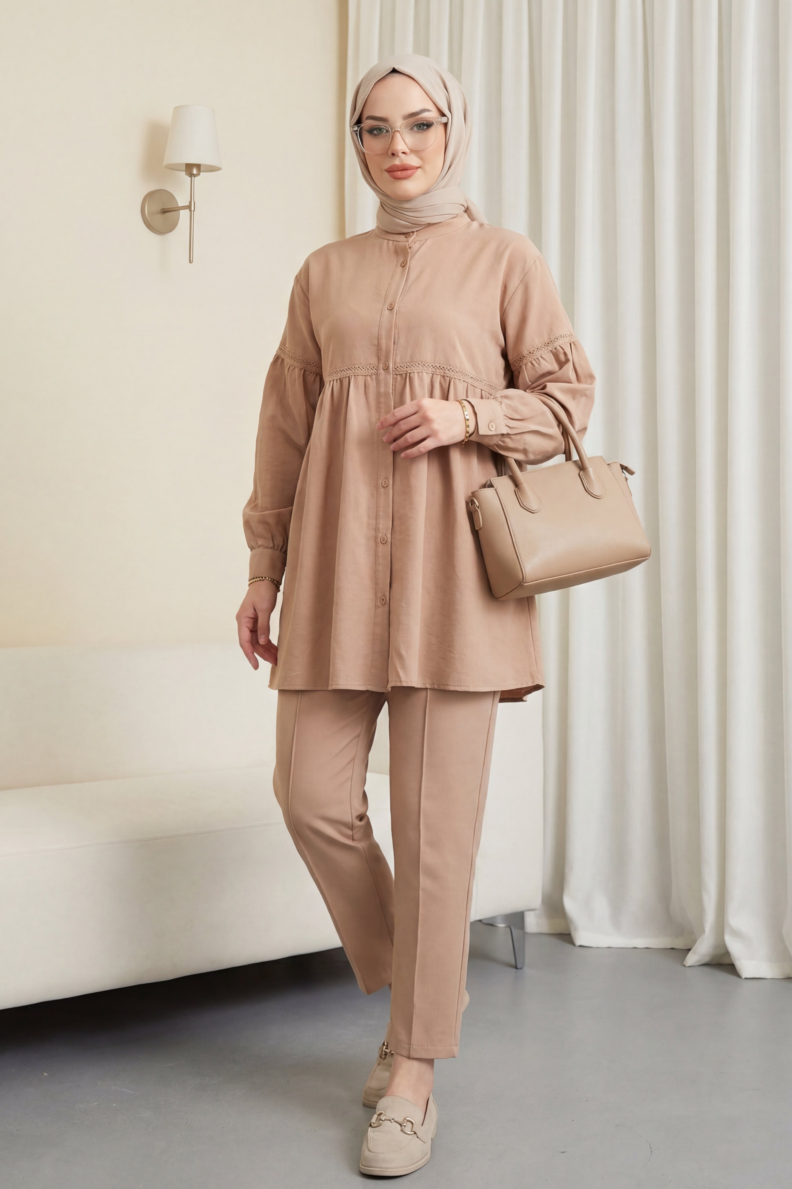 Note: The product content consists of tunic and trousers. (Shoes, bags and jewelry are used for decoration purposes.)