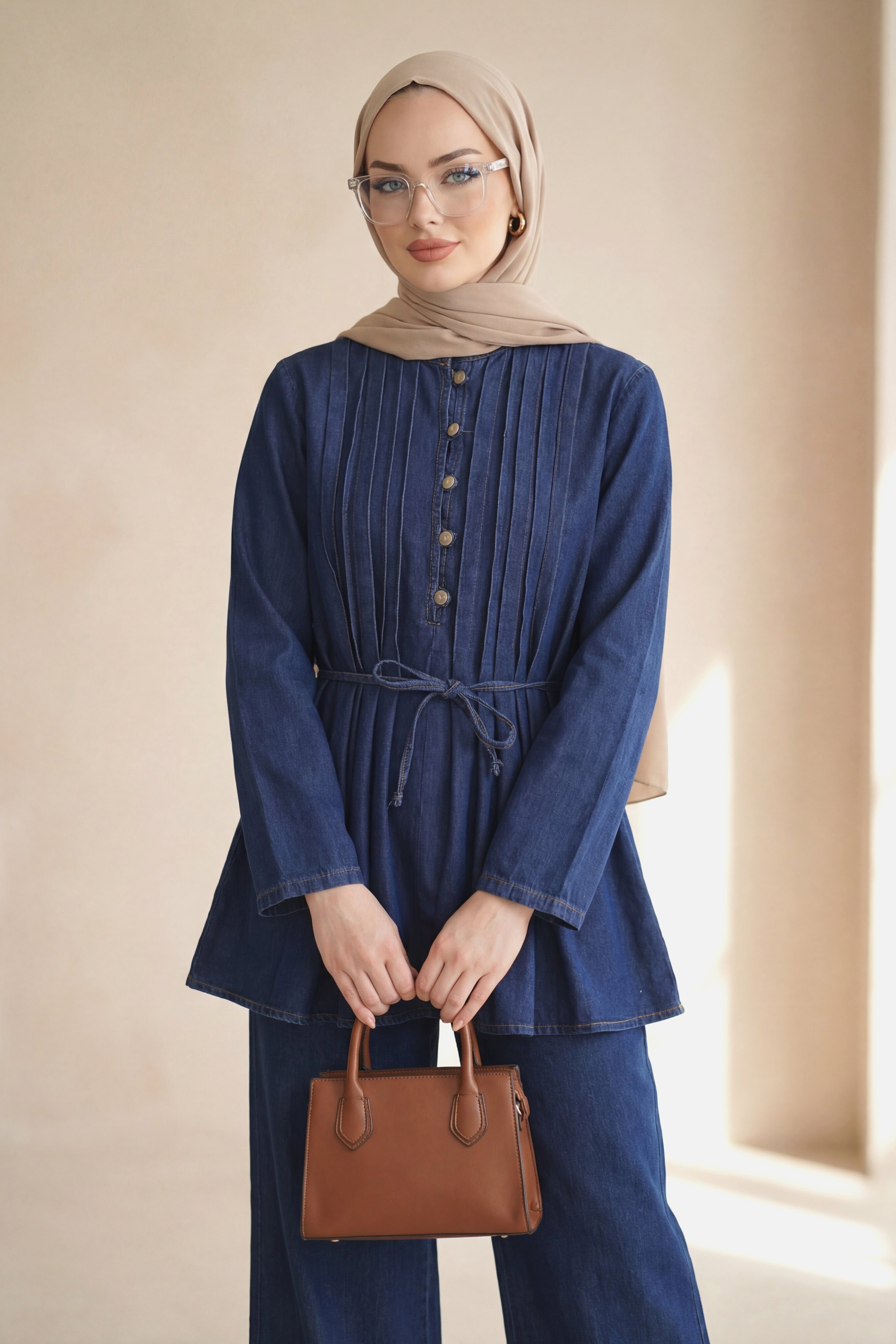 Piece Fabric Buttoned Poplin Tunic -Khaki