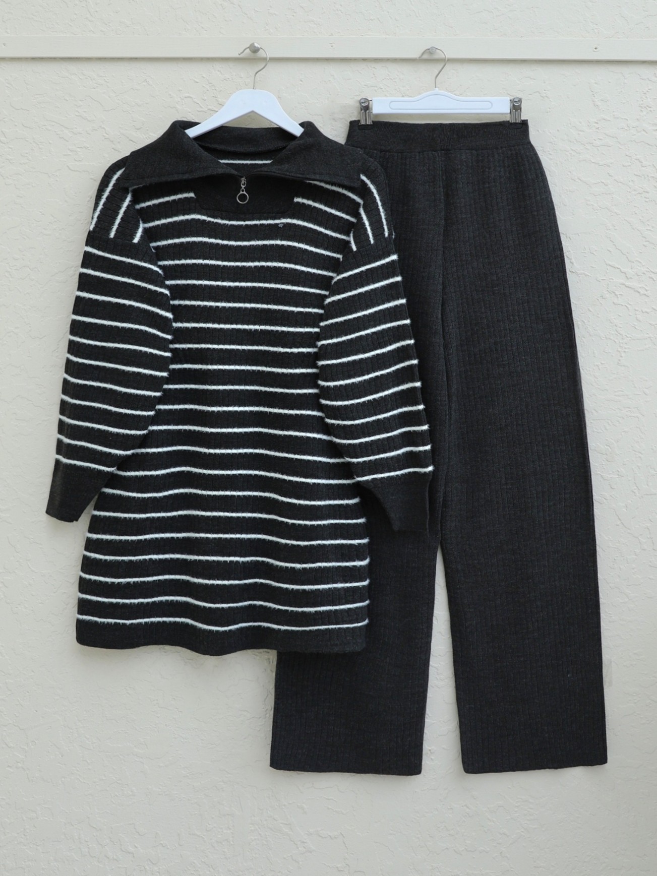 Ribbed Half-Turtleneck Zippered Knit Set The ribbed half-turtleneck zippered knit set is the perfect combination of style and comfort for colder days! Crafted from soft and stretchy knit fabric, this design fits the body perfectly and offers a sleek, modern look with its ribbed texture. The half-turtleneck collar and zippered details provide both elegance and practicality. Ideal for everyday wear or special occasions when you want to combine comfort with chicness, this knit set will quickly become a favorite in your wardrobe. A must-have for those seeking trendy and cozy style!