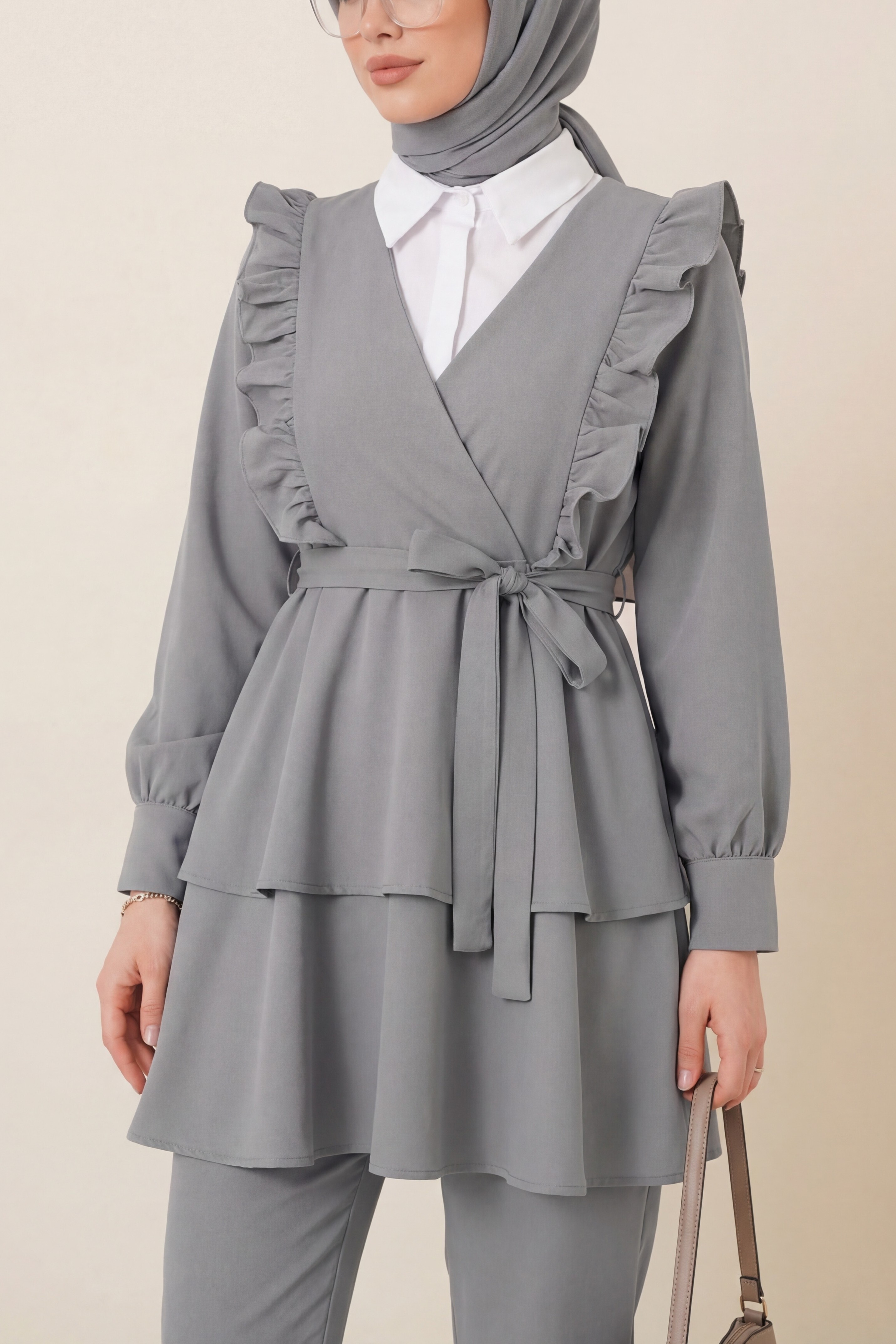 Sleeve Cuff Draped Oval Cut Shirt -Light Mink
