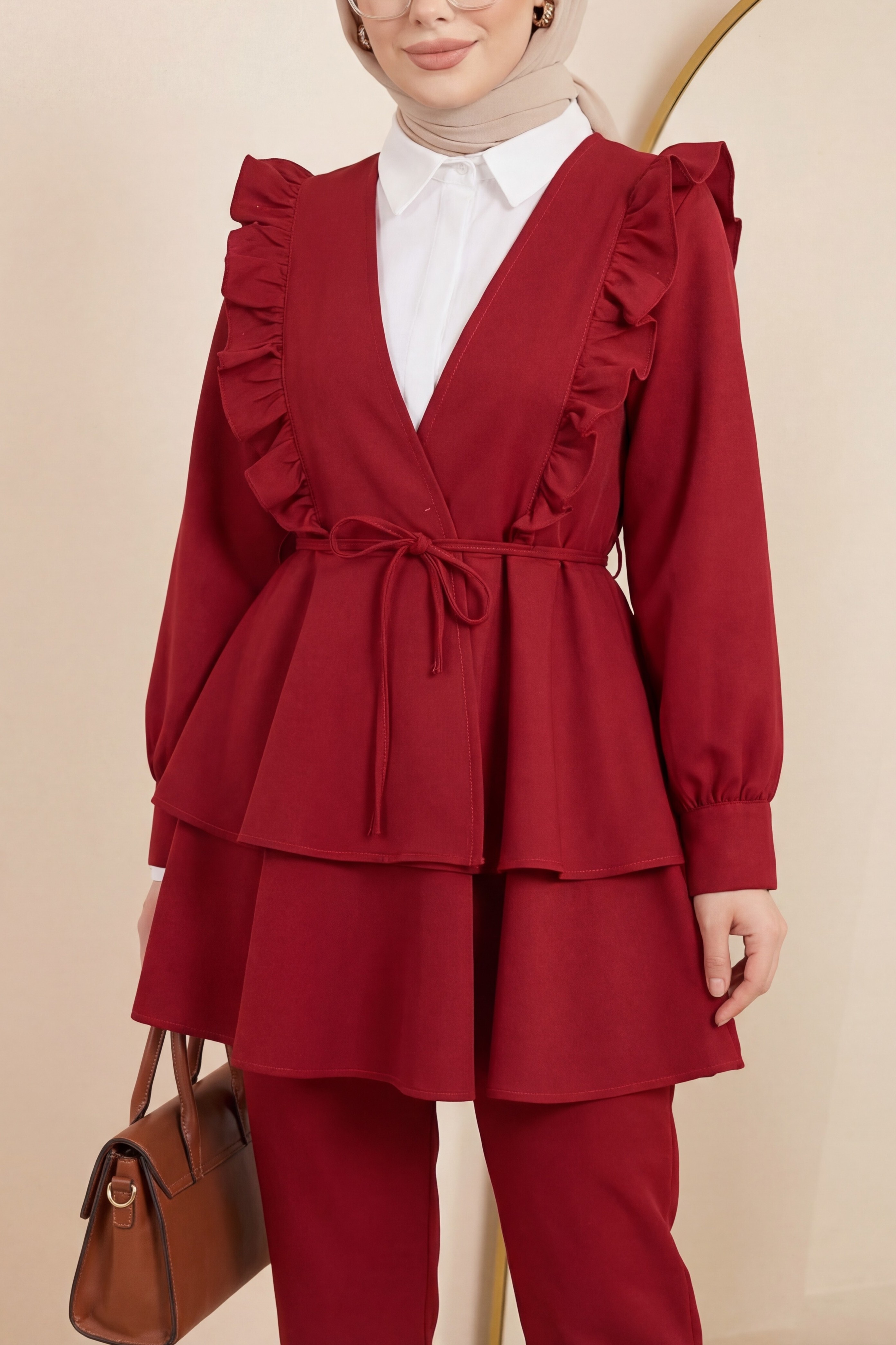 Slim Leg Trousers with Waist Lace -Oil color