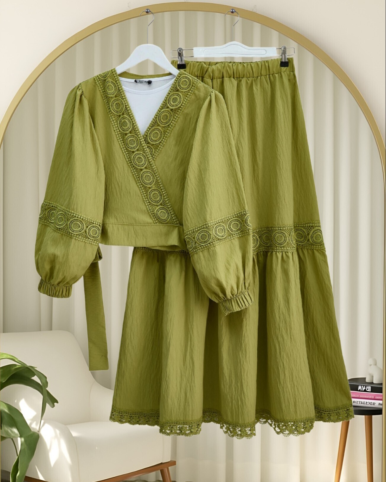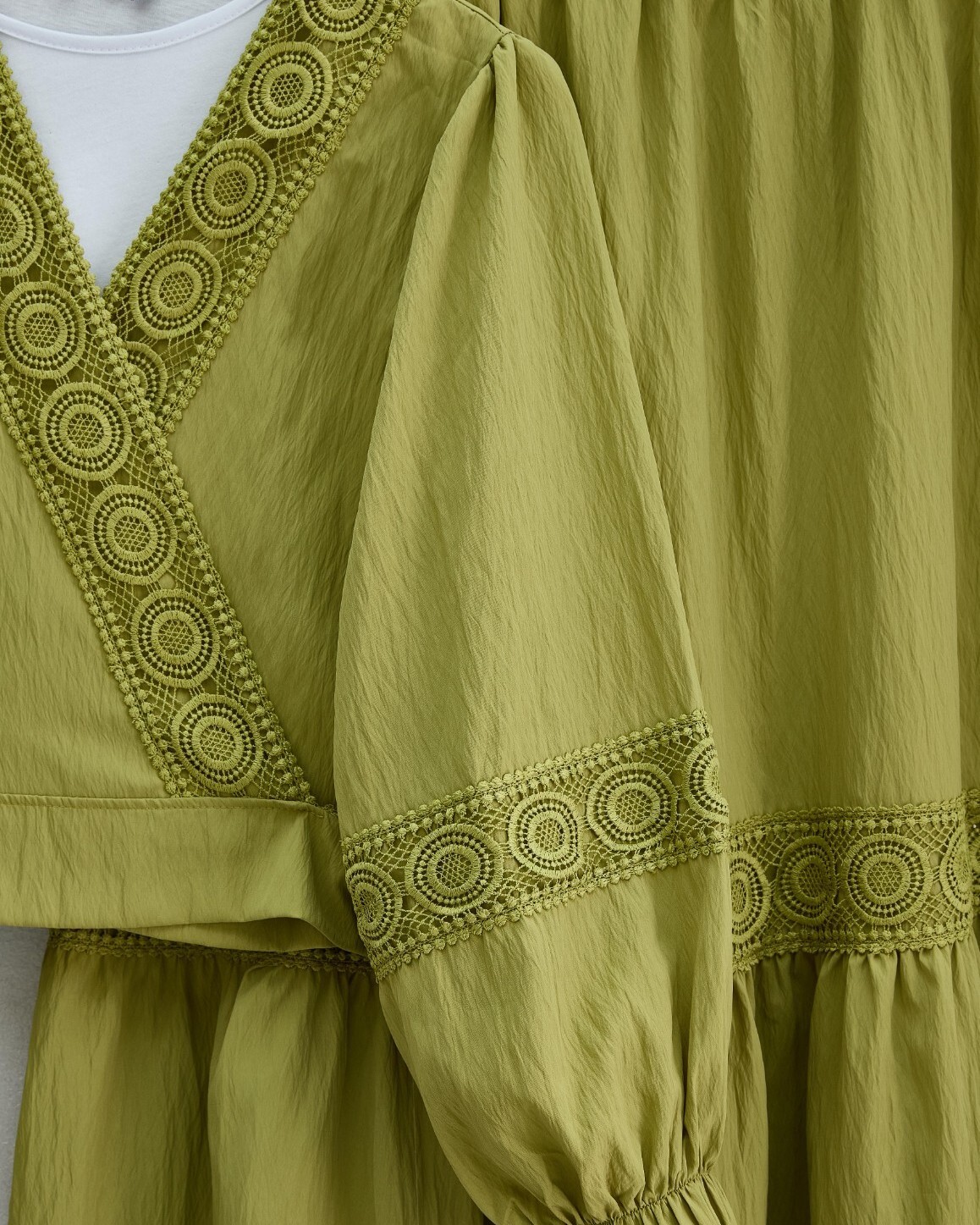 Ethnic Pattern Skirt Piece Lined Chiffon Dress -Light coffee