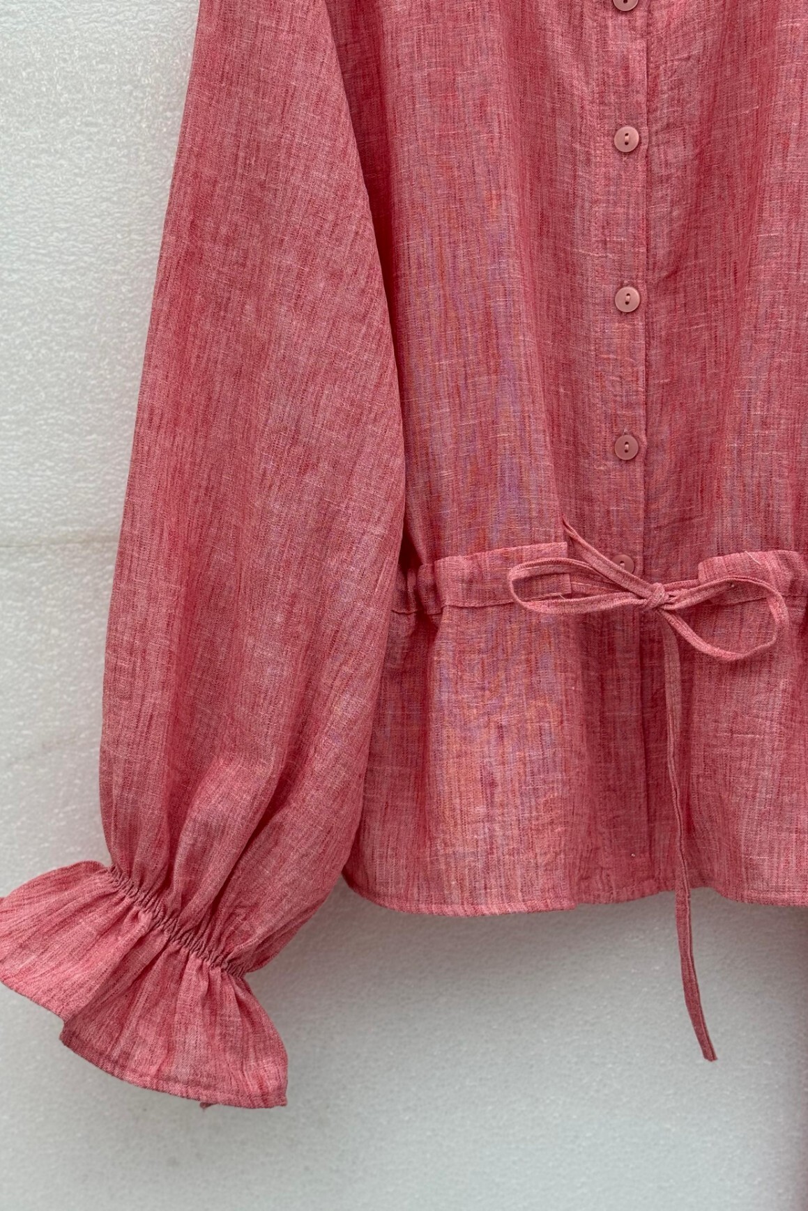 Button-Front Casual Shirt with Ribbon Detail -Blue