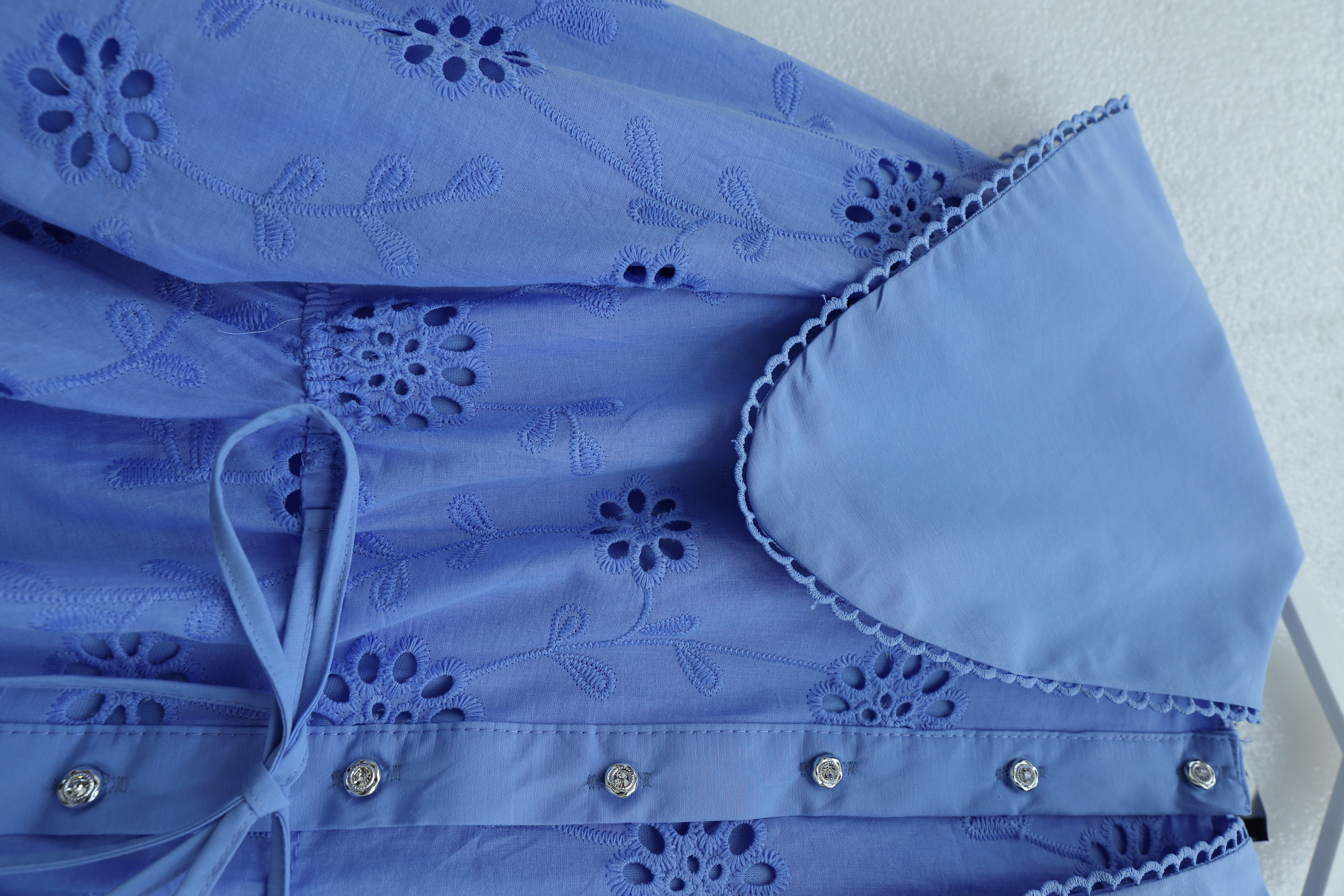 Button-Front Casual Shirt with Ribbon Detail -Blue