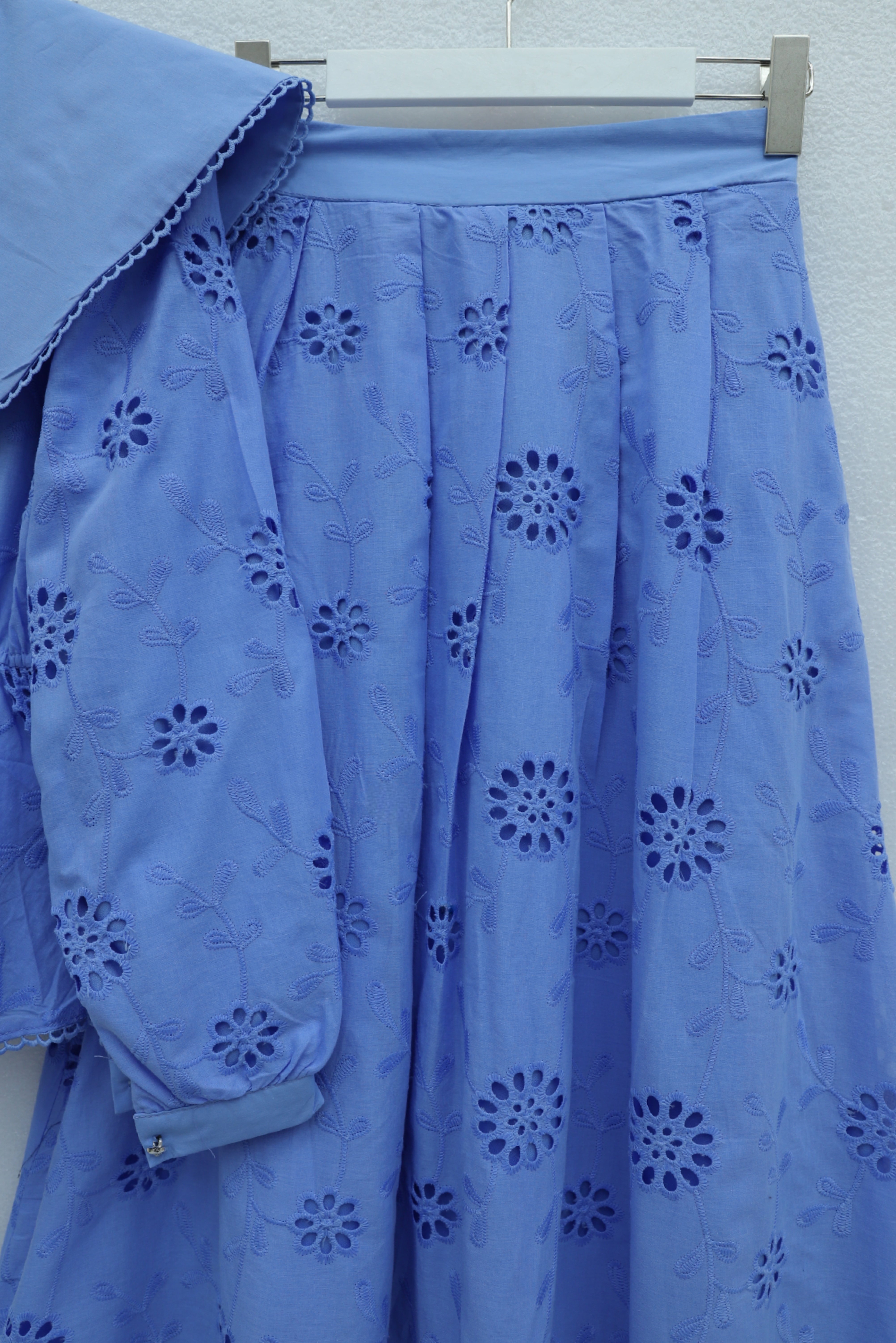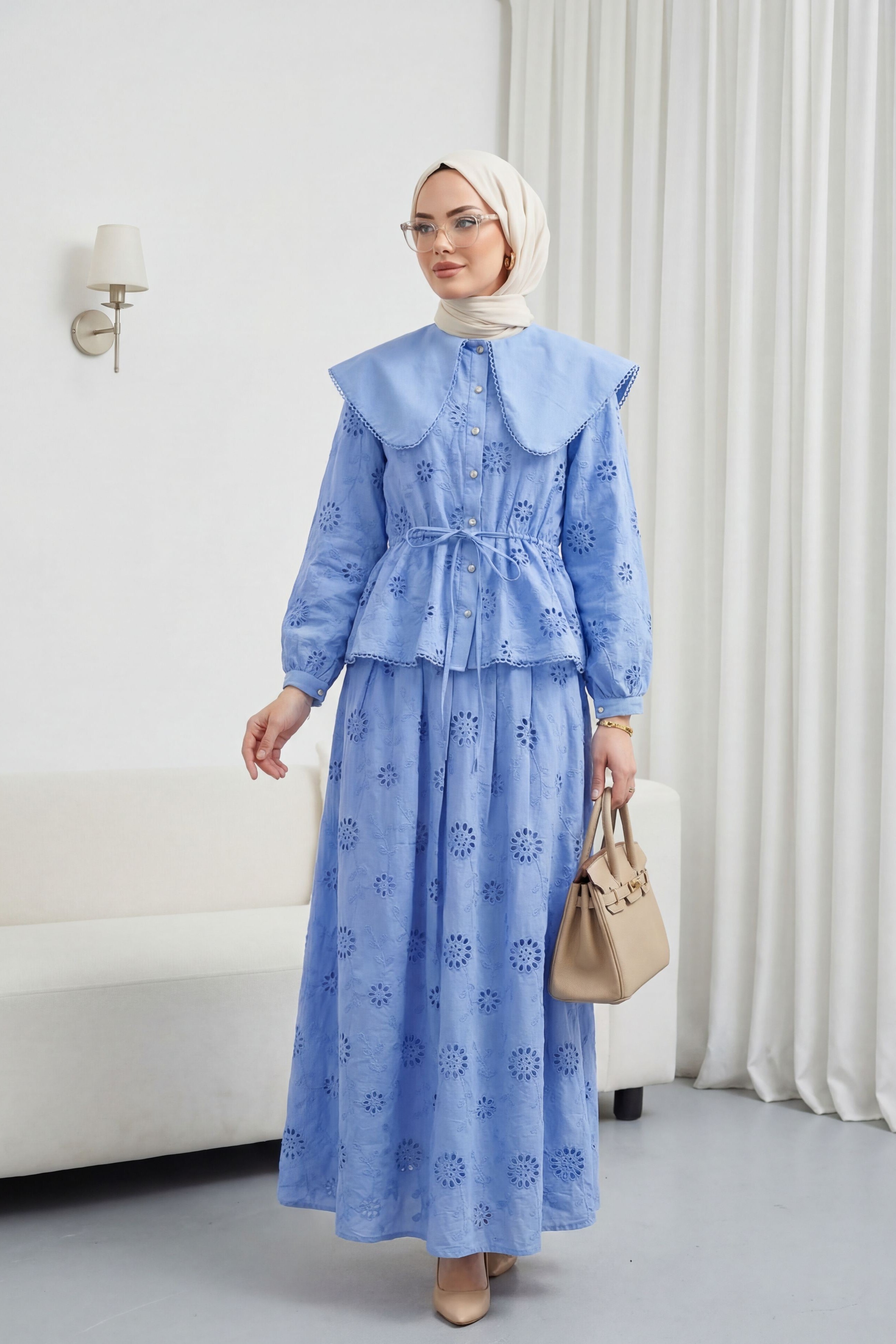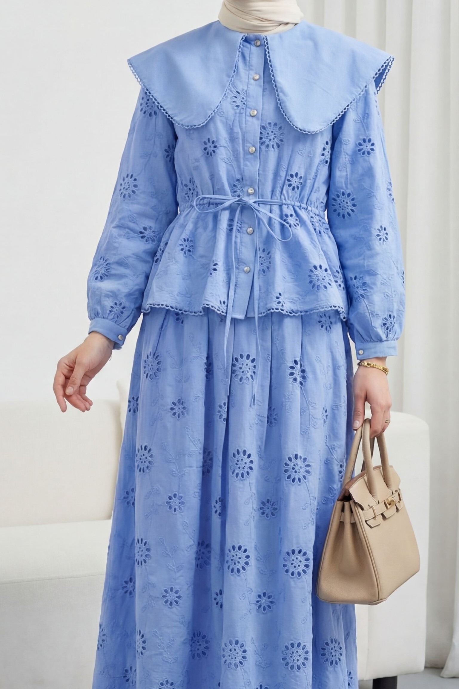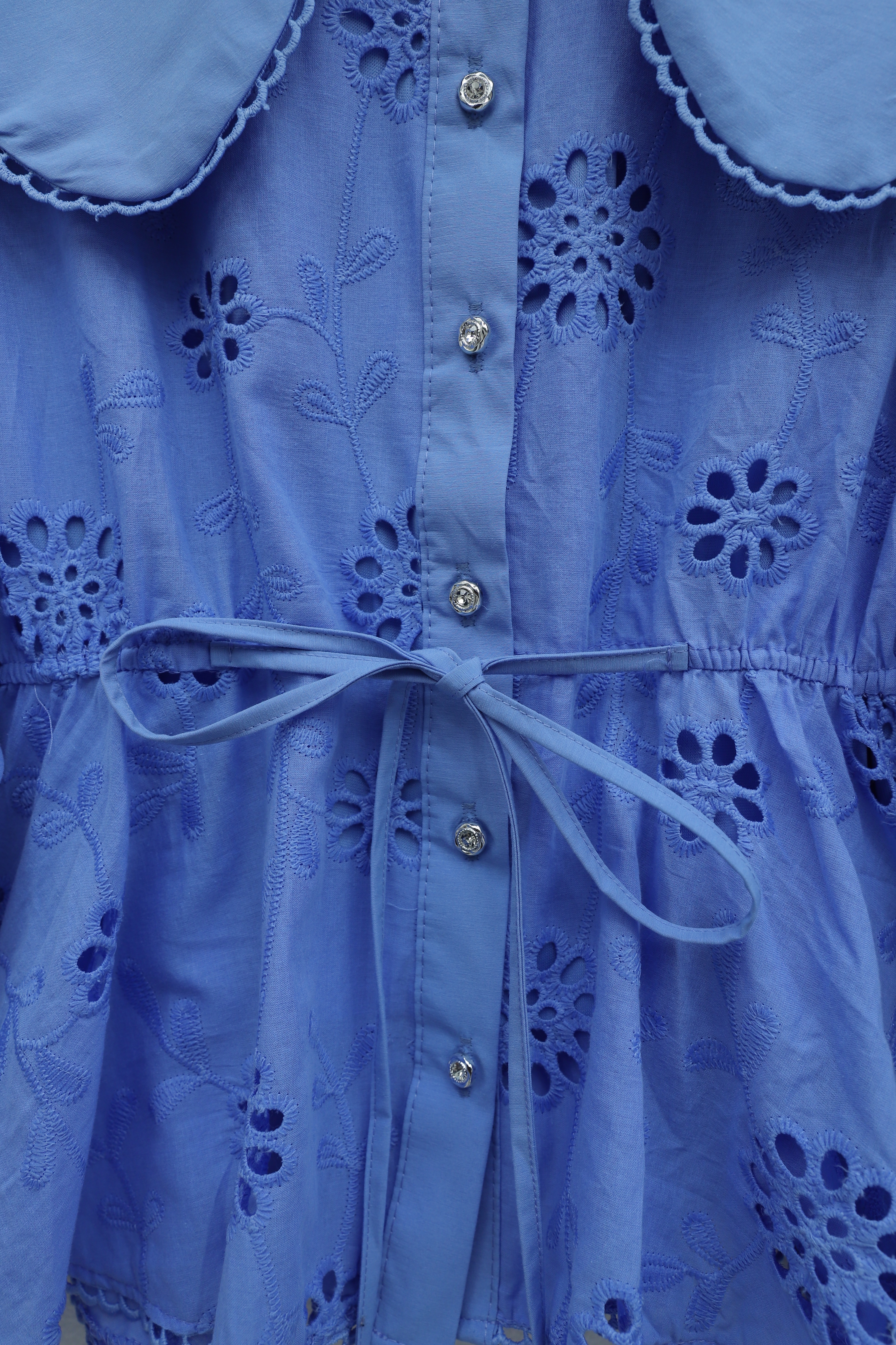 Baby Collar Poplin Shirt with Front Bow Detail -Baby Blue