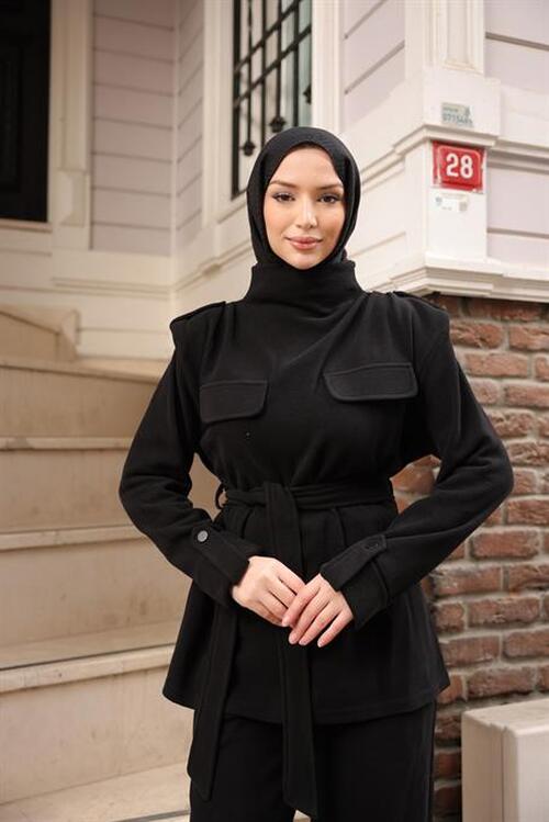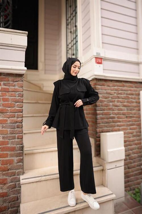 STOCK NAME: - Turtleneck, Drawstring Waist, Pocket Detail Two-Piece Hijab Tracksuit Set