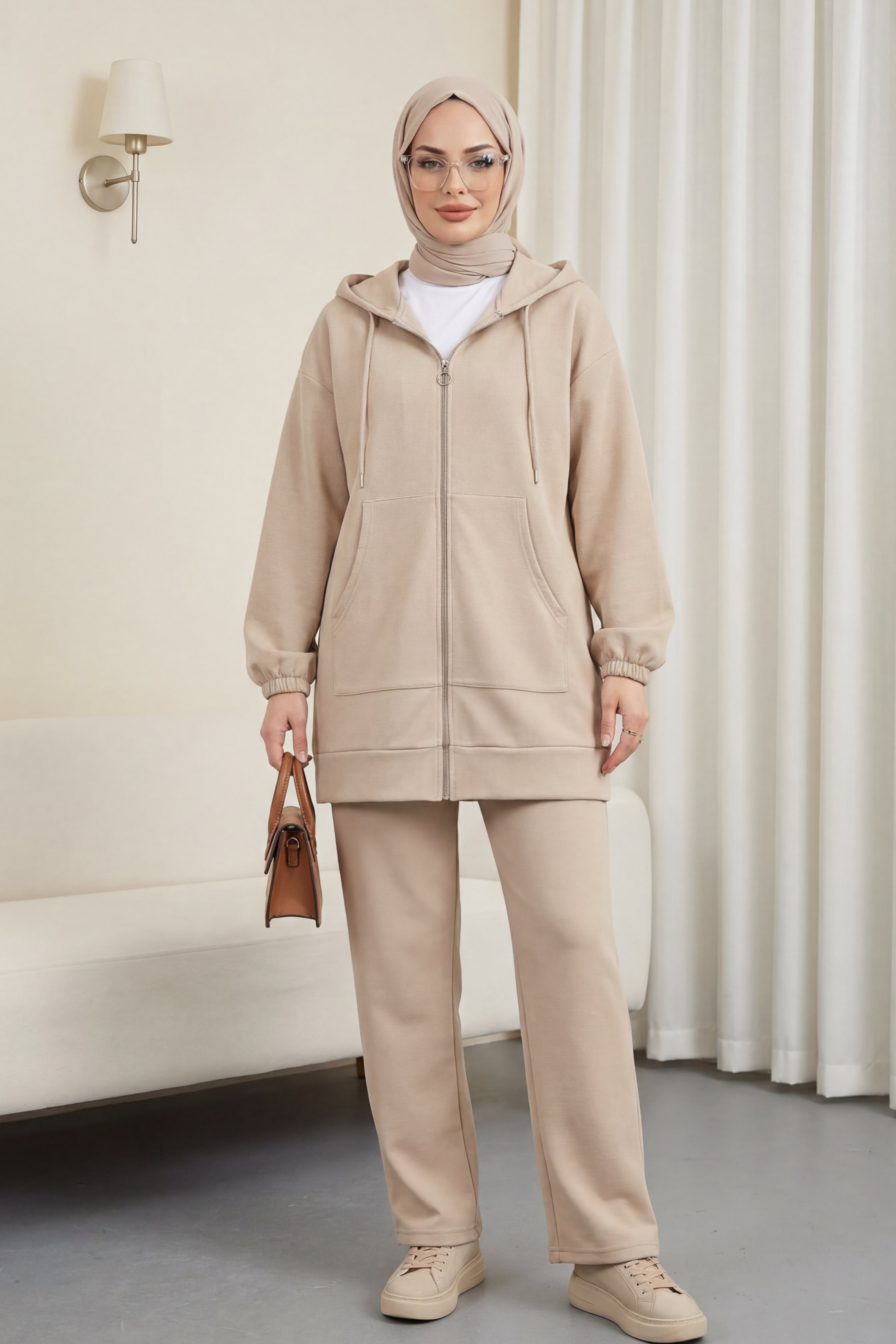 Depending on the user and region, this product can also be called a casual suit, hijab suit, seasonal suit, winter suit, summer suit, hijab suit models, hooded suit, suit with pockets.