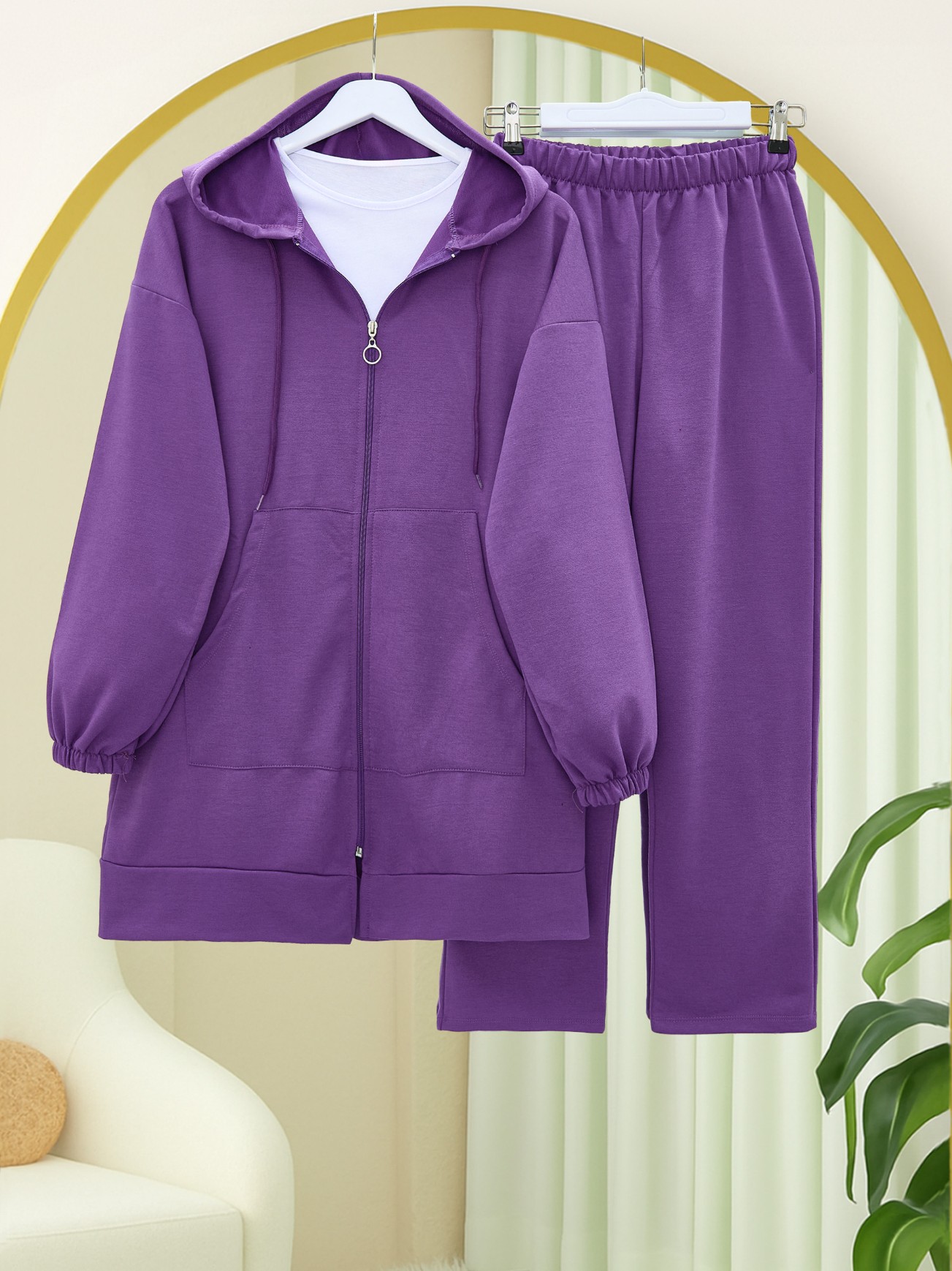 Depending on the user and region, this product can also be called a casual suit, hijab suit, seasonal suit, winter suit, summer suit, hijab suit models, hooded suit, suit with pockets.