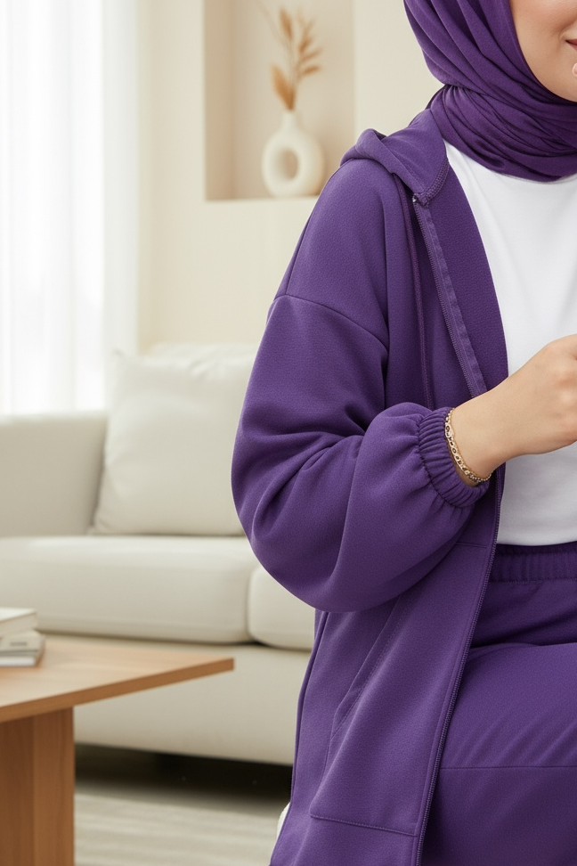 Depending on the user and region, this product can also be called a casual suit, hijab suit, seasonal suit, winter suit, summer suit, hijab suit models, hooded suit, suit with pockets.
