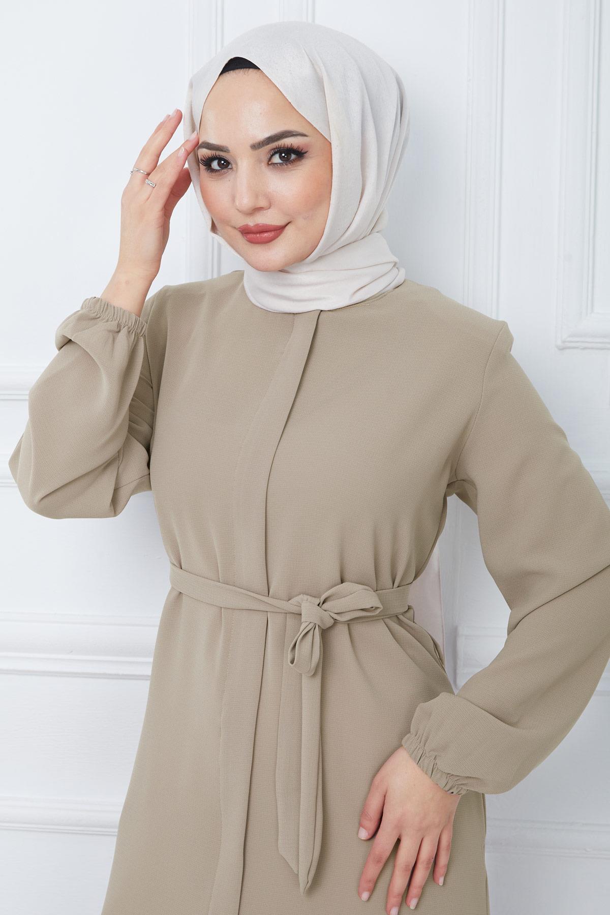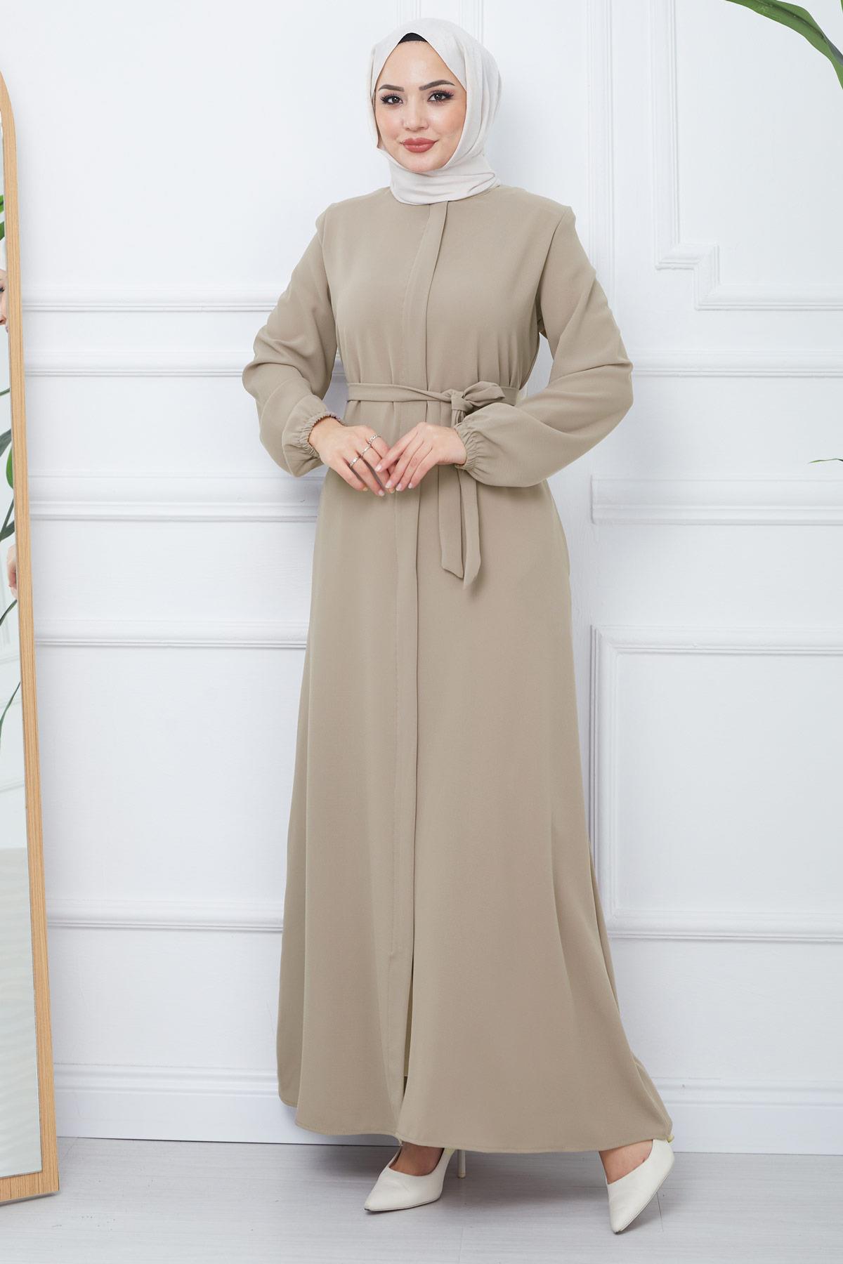 Hidden Placket Belted Abaya Beige HM2361 Specifications
