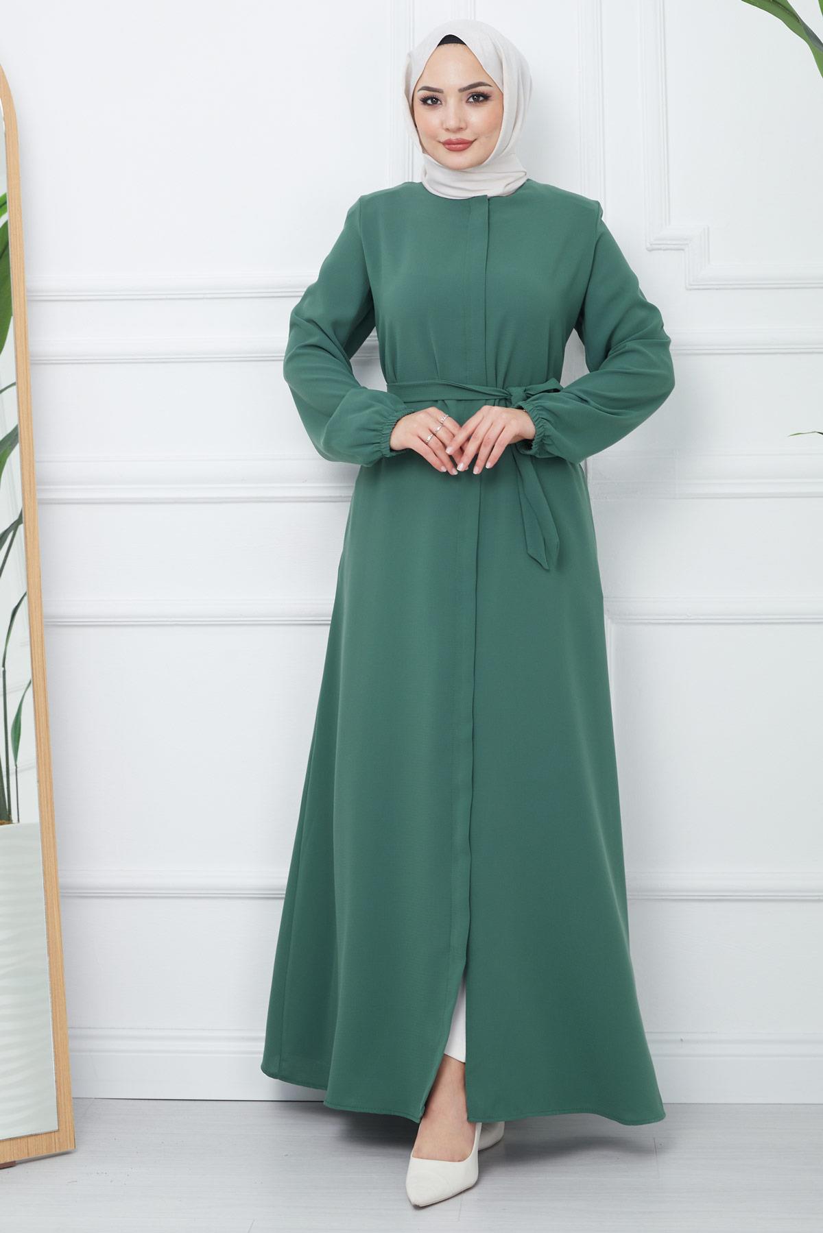 Hidden Placket Belted Abaya Green HM2361 Specifications