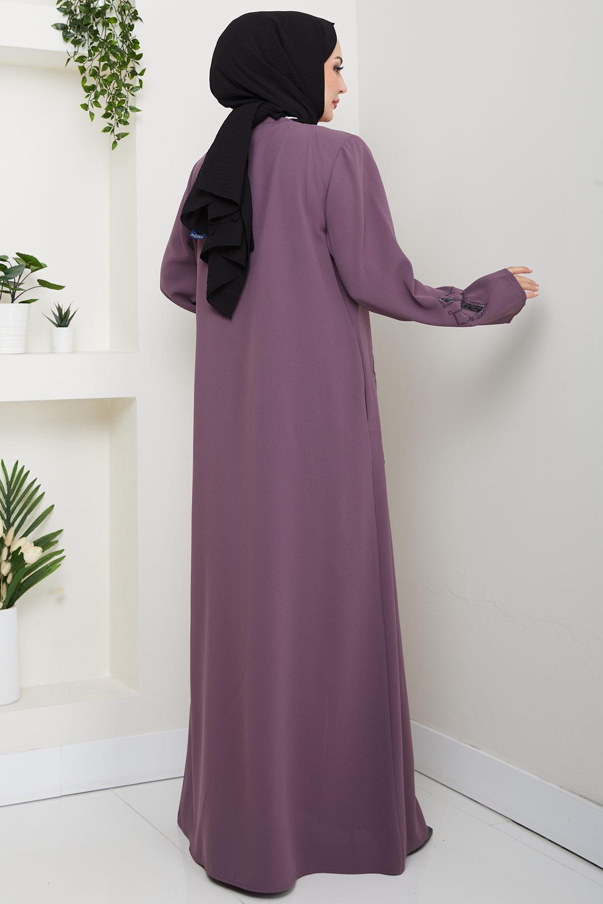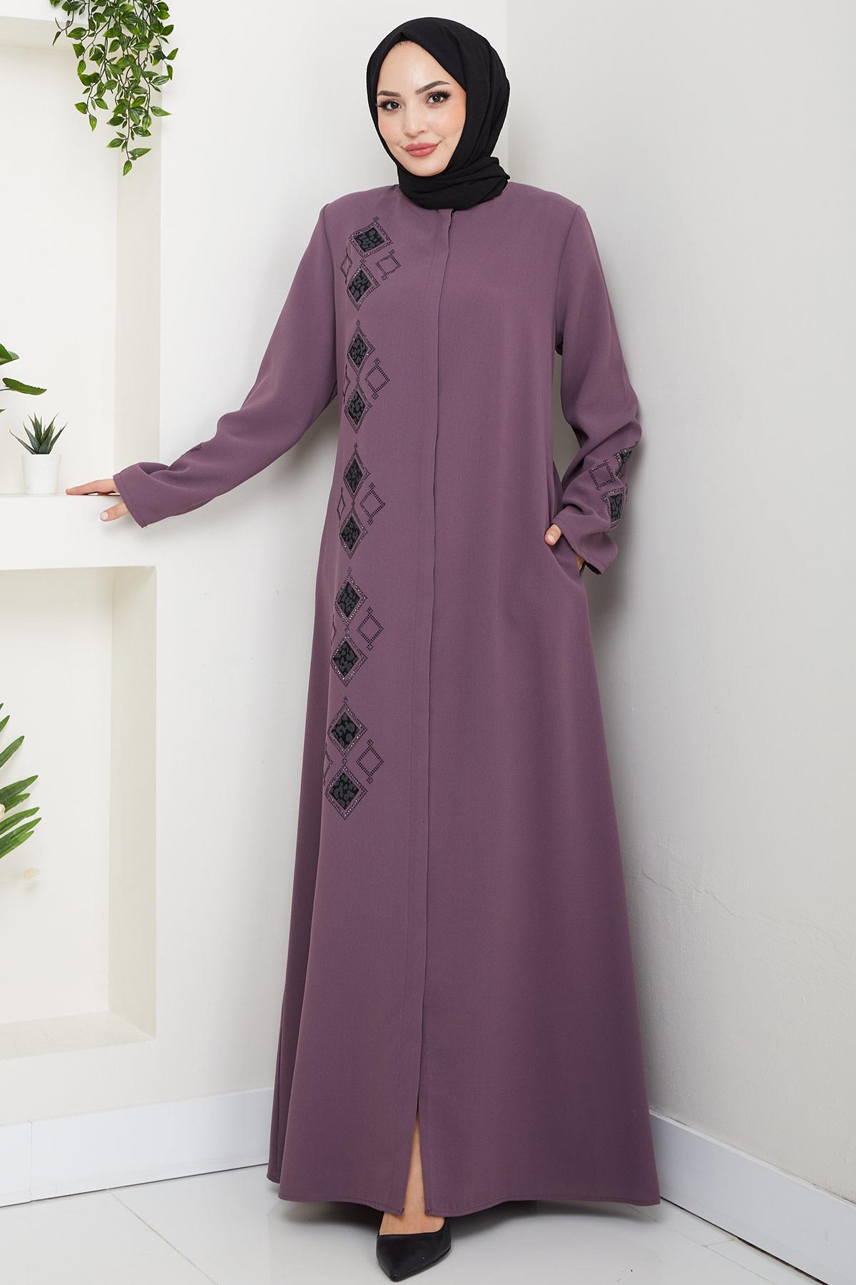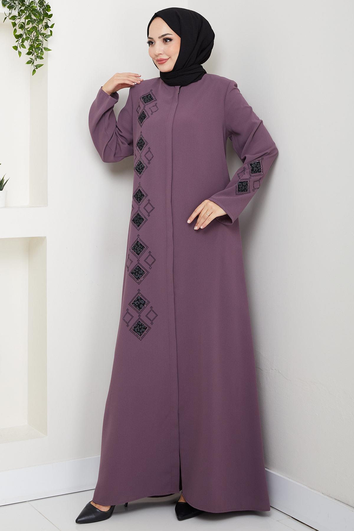 Leather Embroidered Abaya Rose Pink HM2849 Specifications