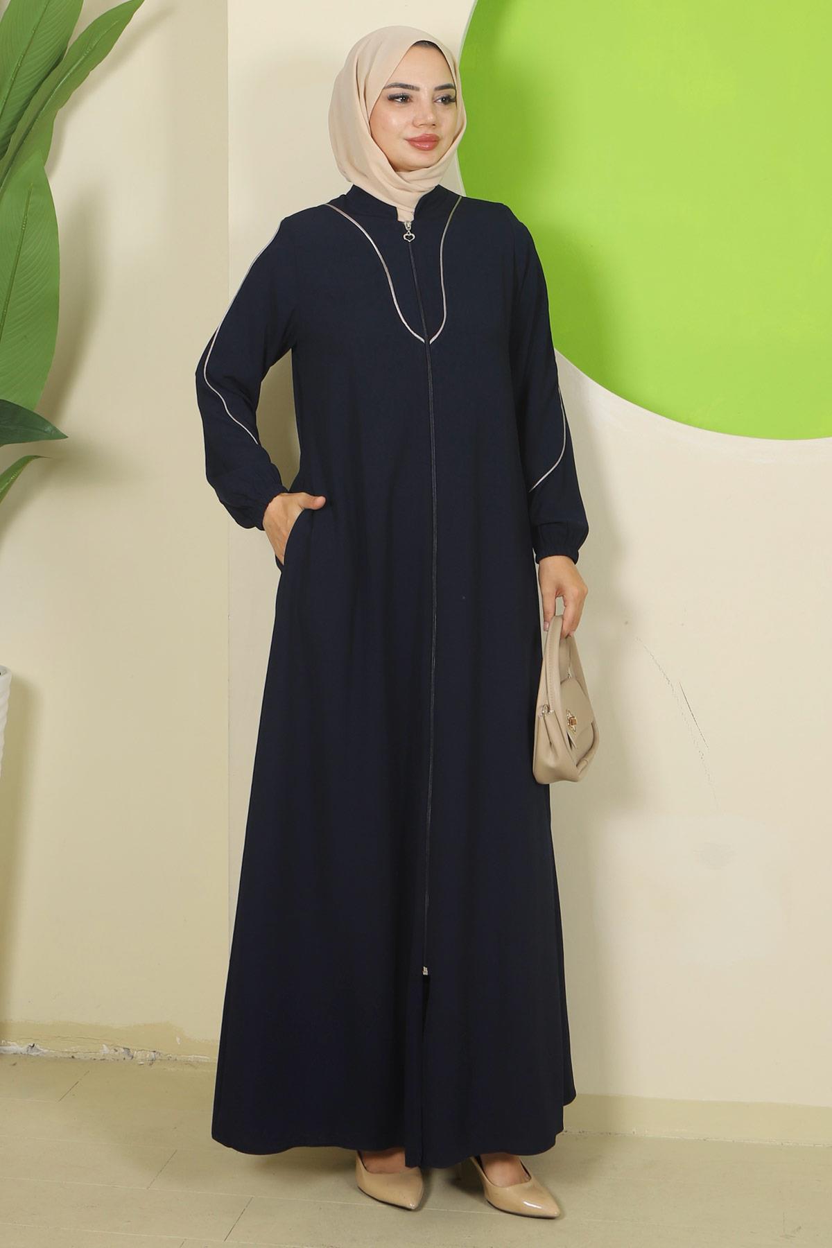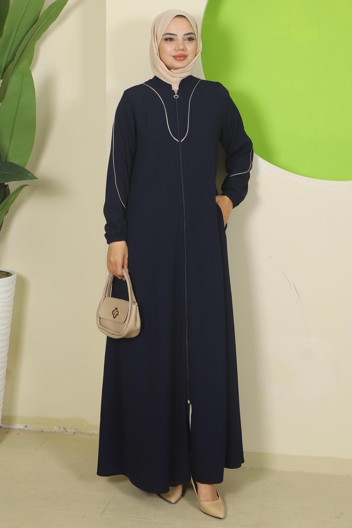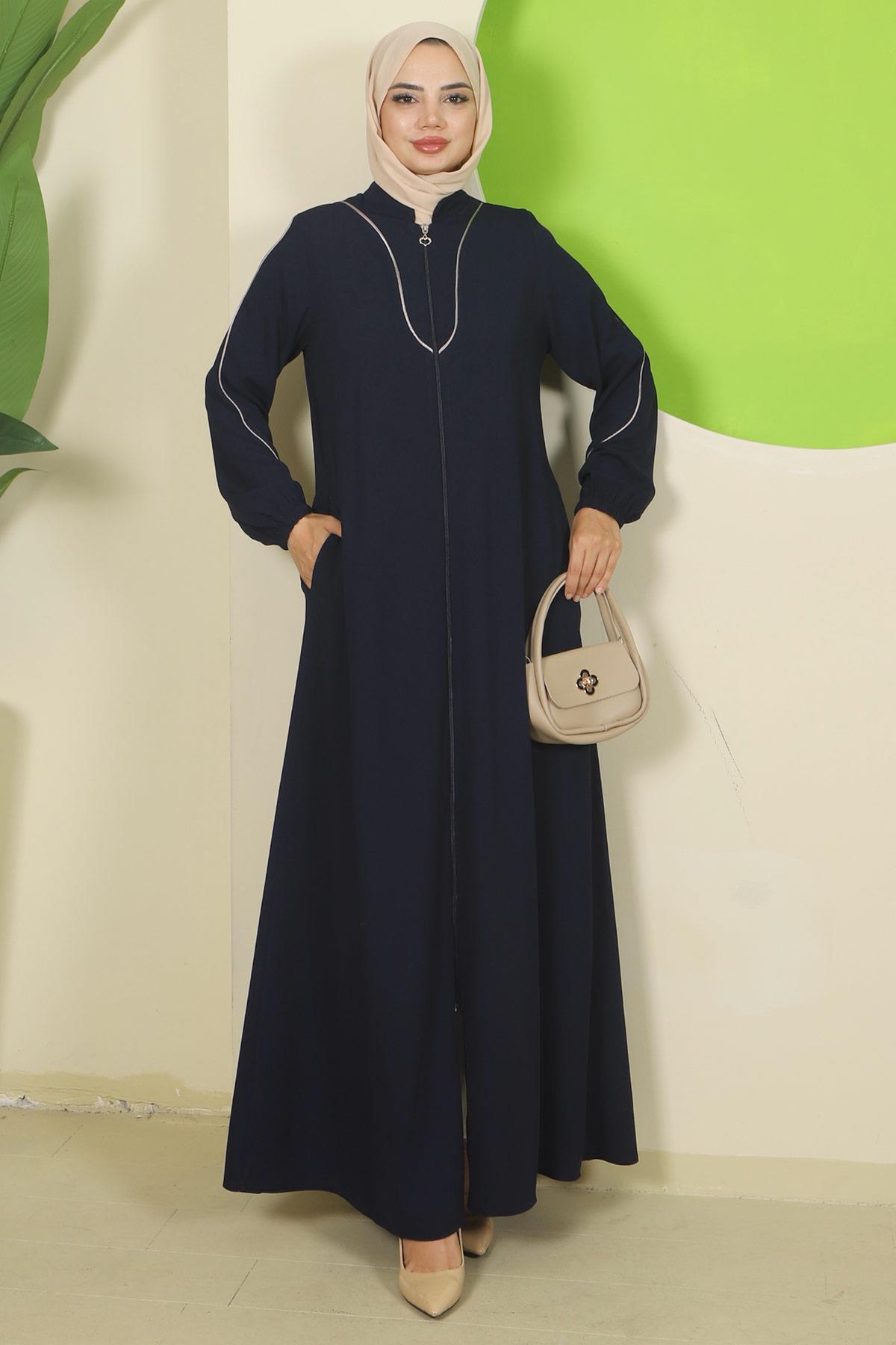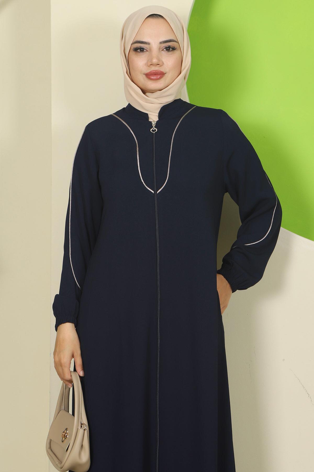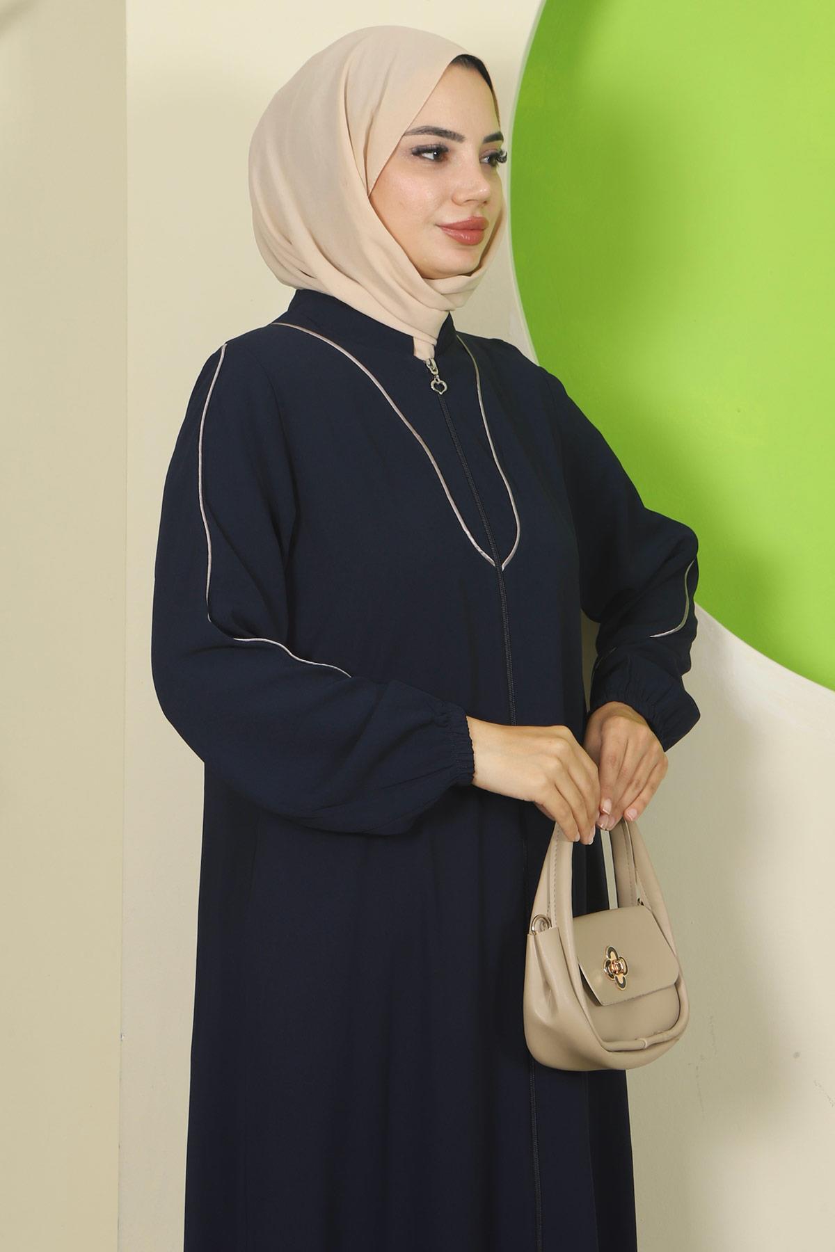 Navy Blue Abaya with Piping Details HM2812