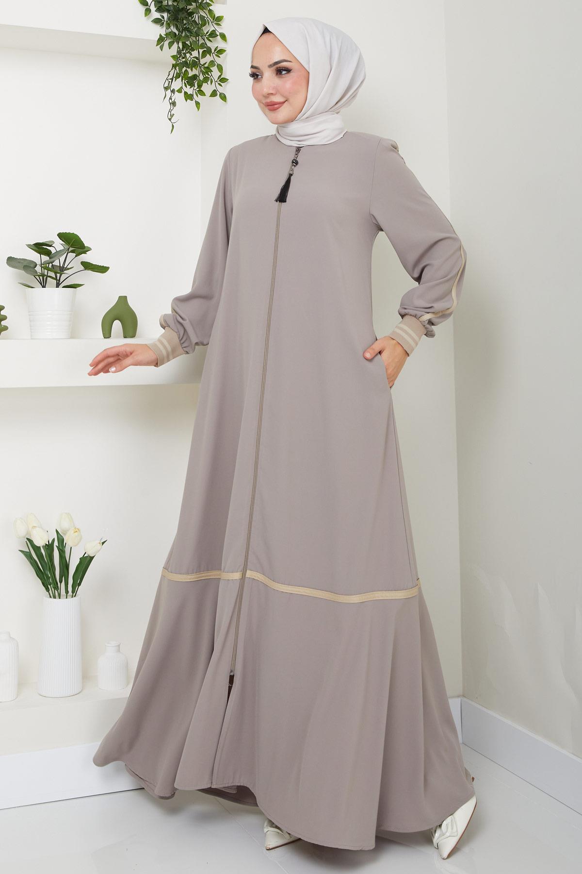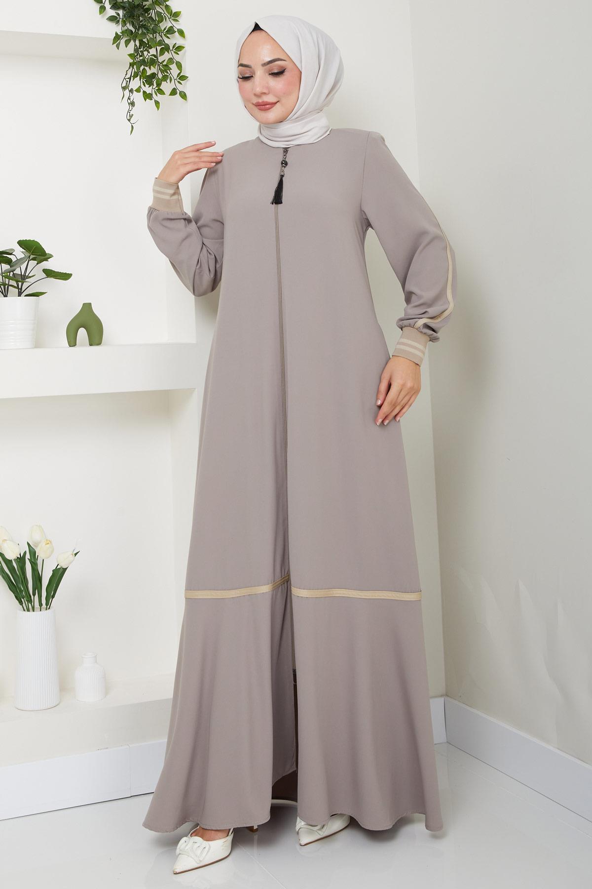 Striped Detail Beige Abaya HM2035