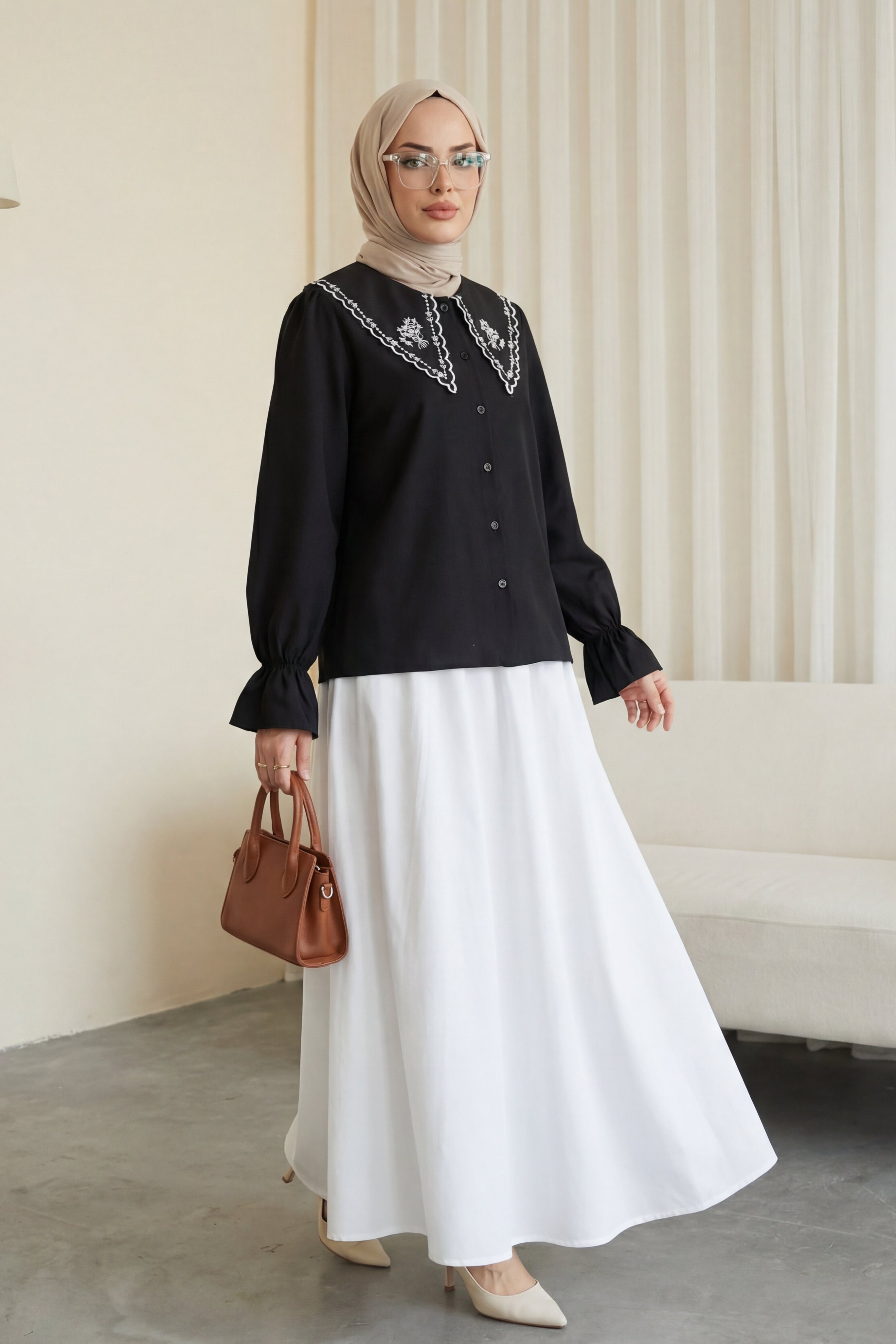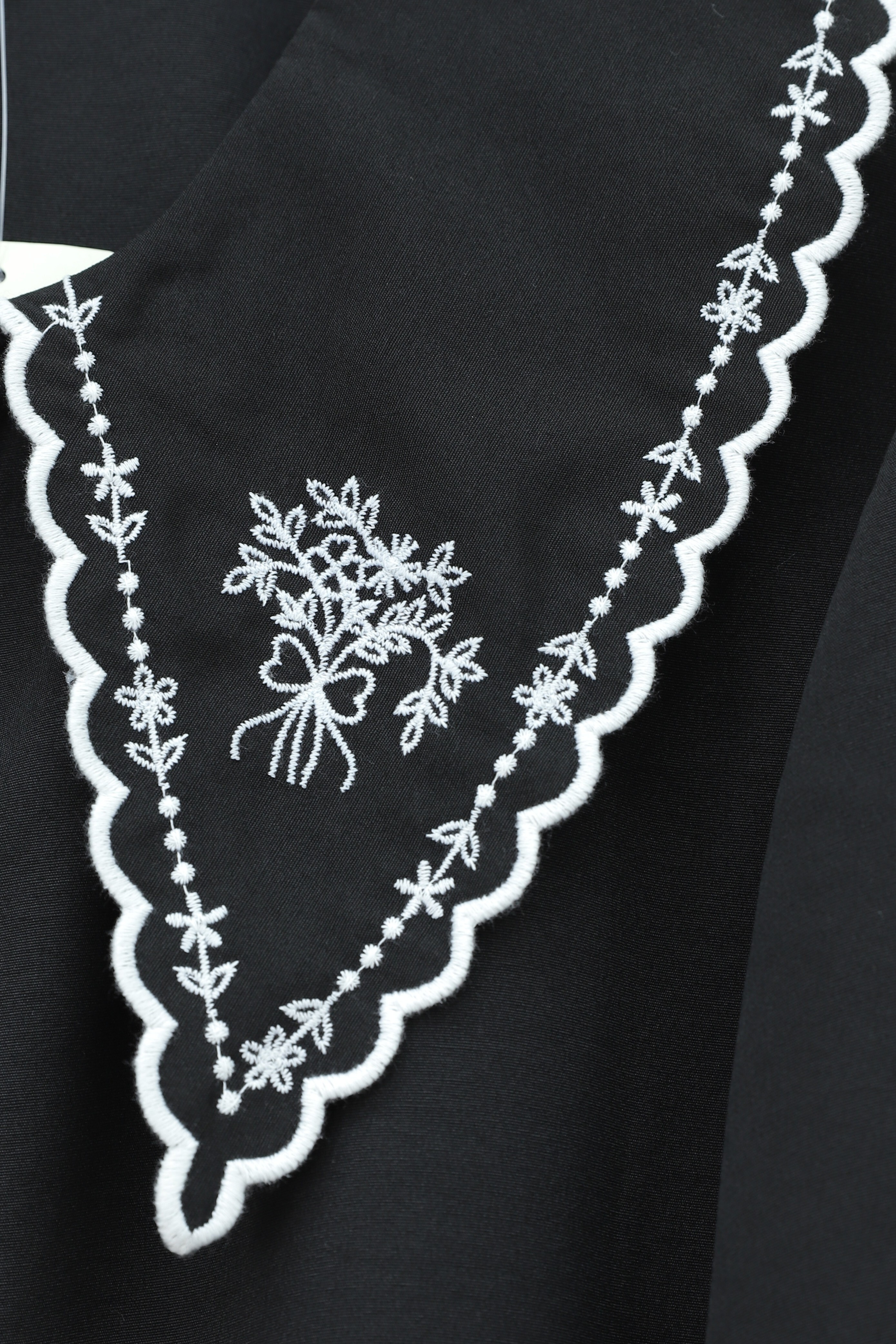 Peter Pan Collar Ruffled Poplin Shirt/Blouse with Elasticated Cuffs -Black