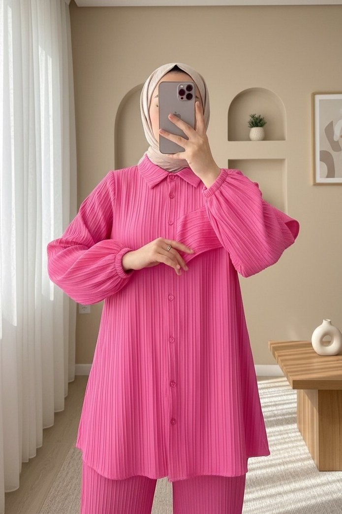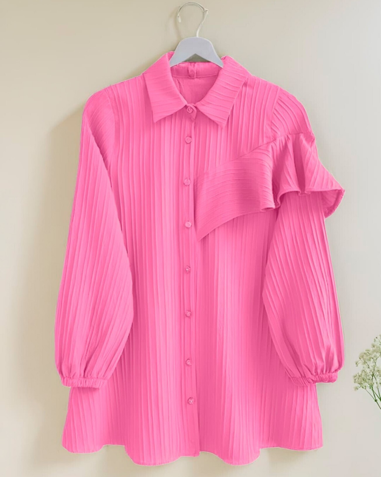 Elastic Tunic with Ruffle Detail on the Sleeves -Pink