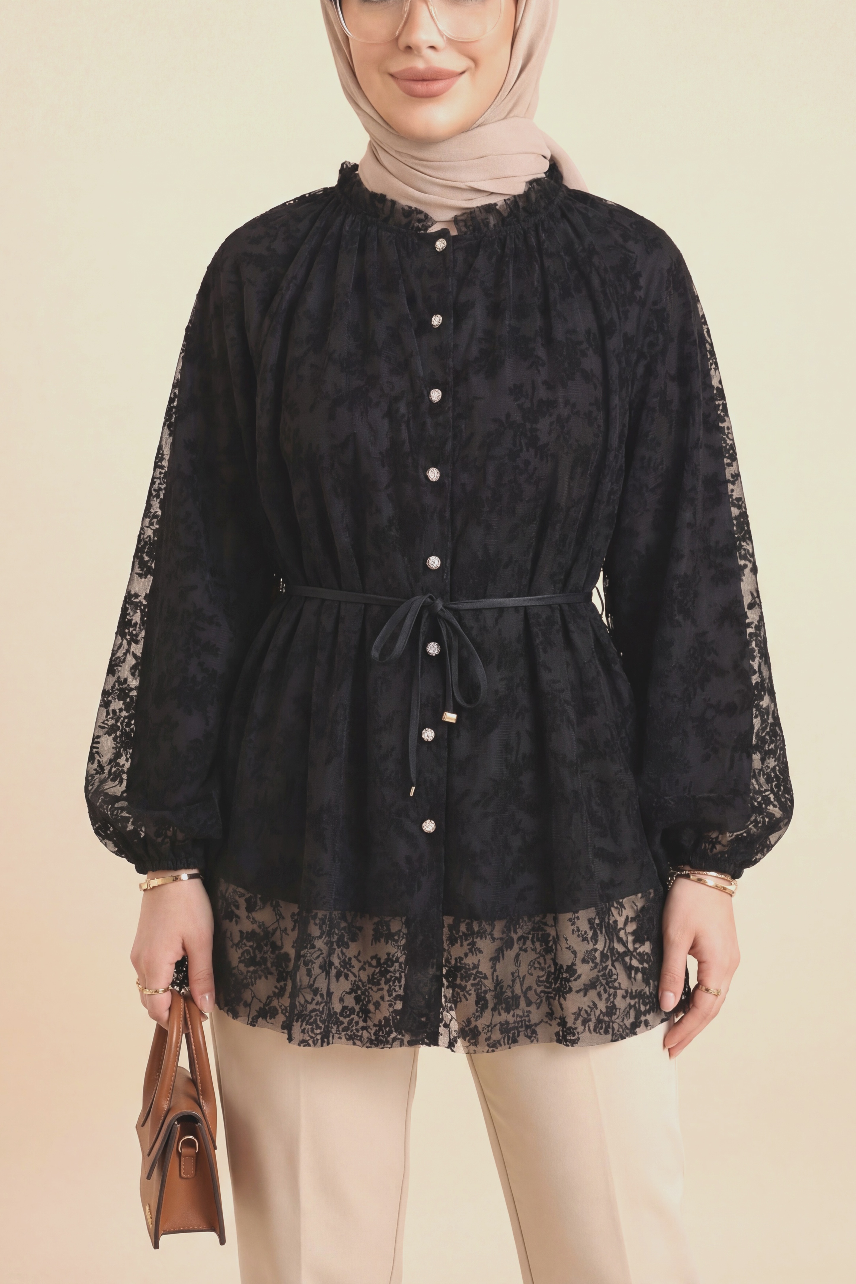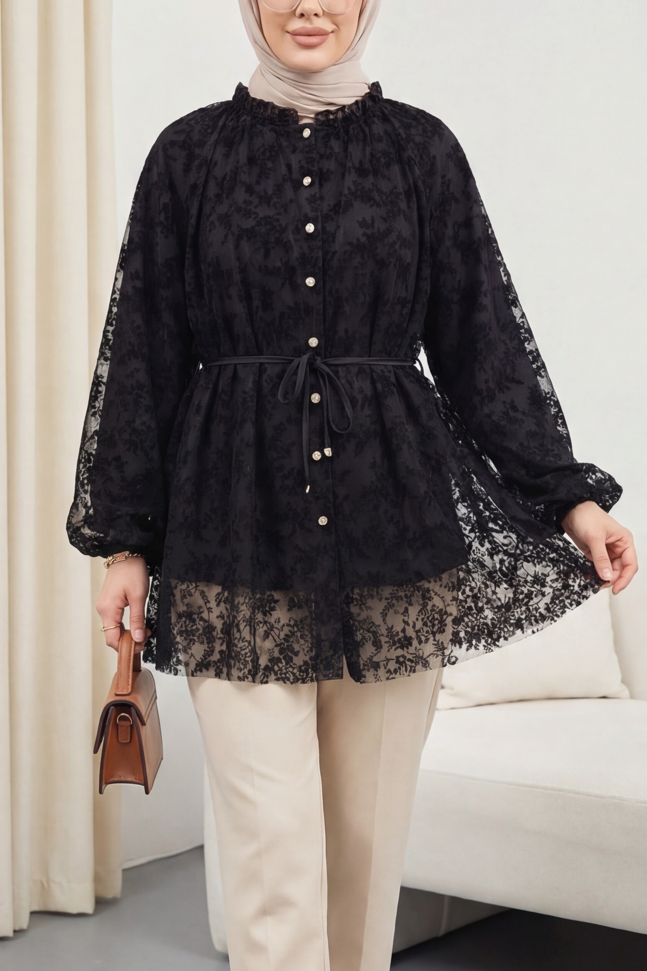 Asymmetrical Crepe Dress with Front Allery Skirt -Blue