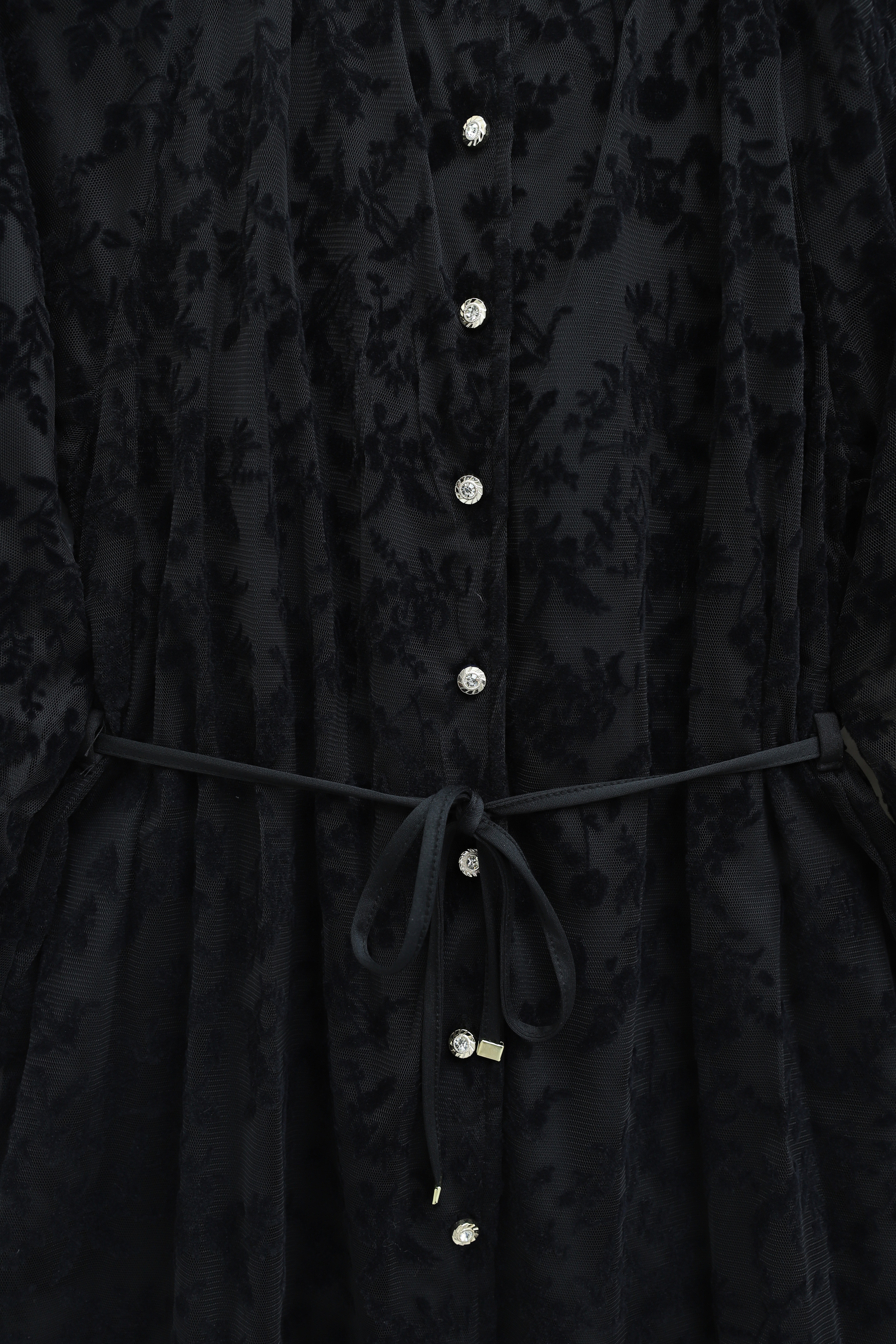 Ethnic Pattern Skirt Piece Lined Chiffon Dress -Light coffee