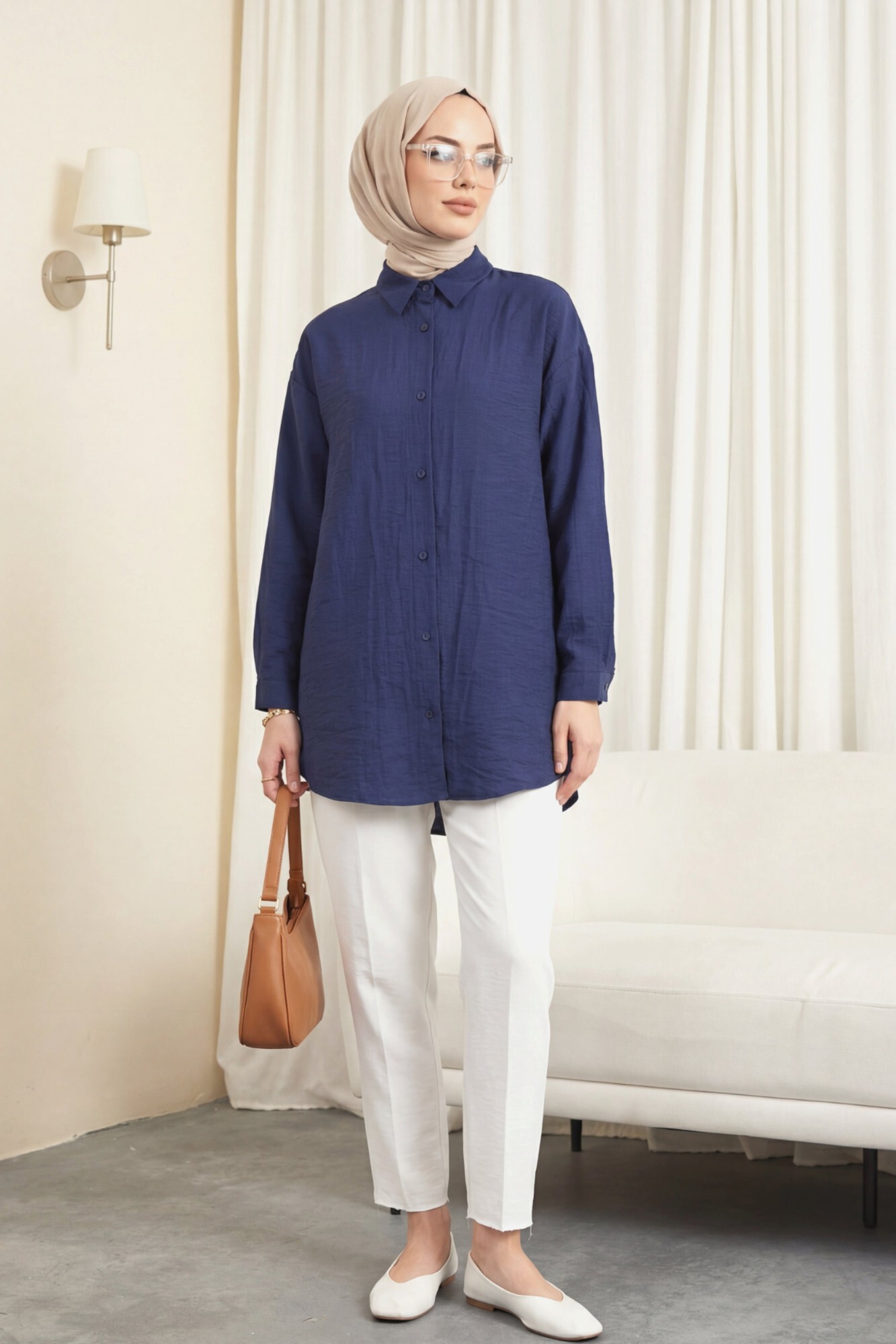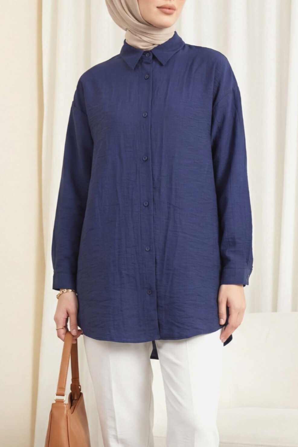 Oval Cut Button-Down Shirt -Navy blue