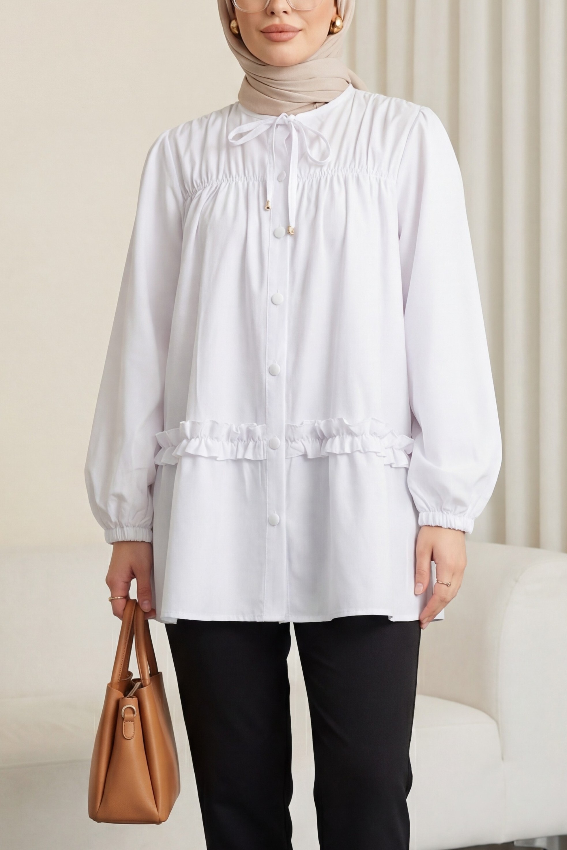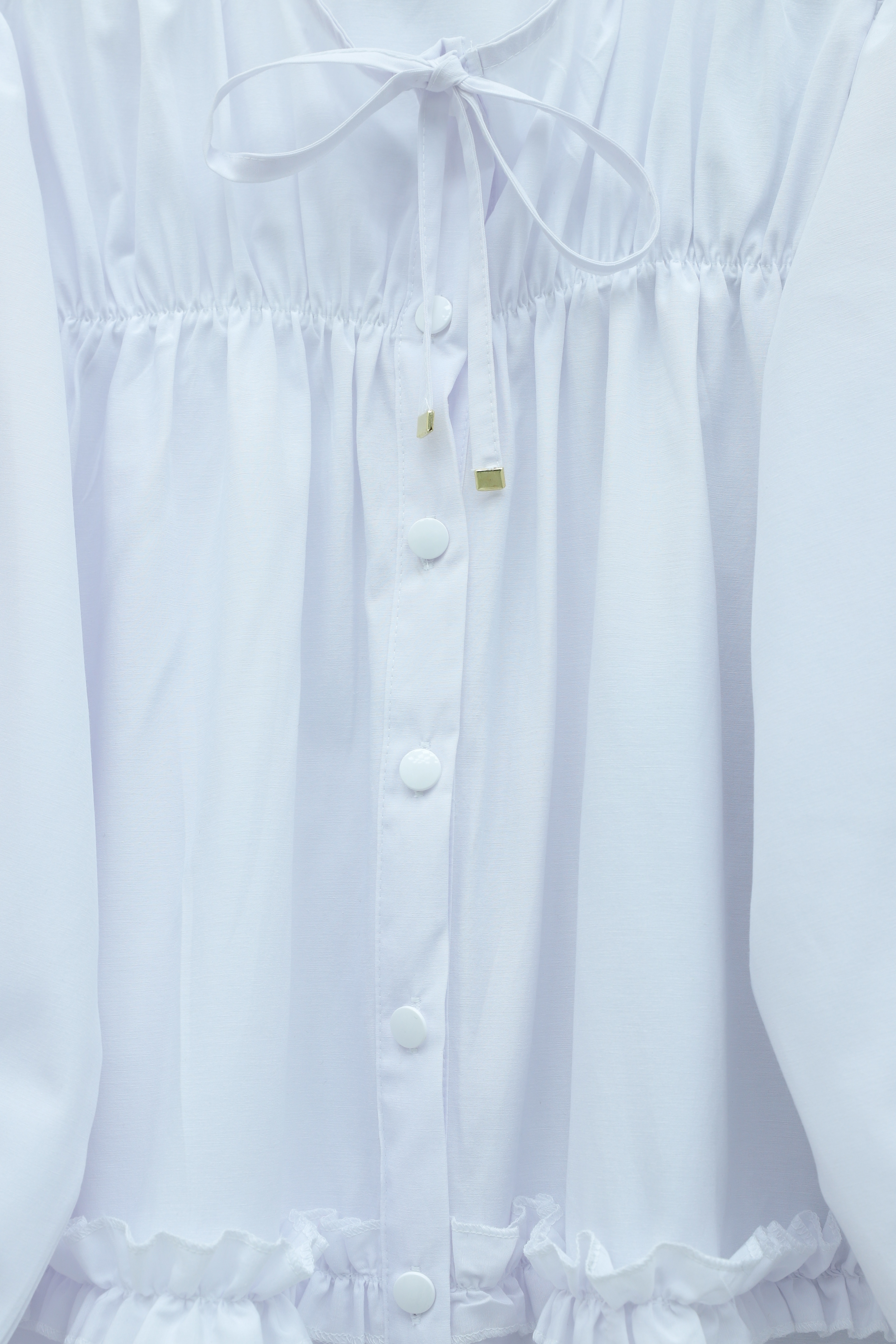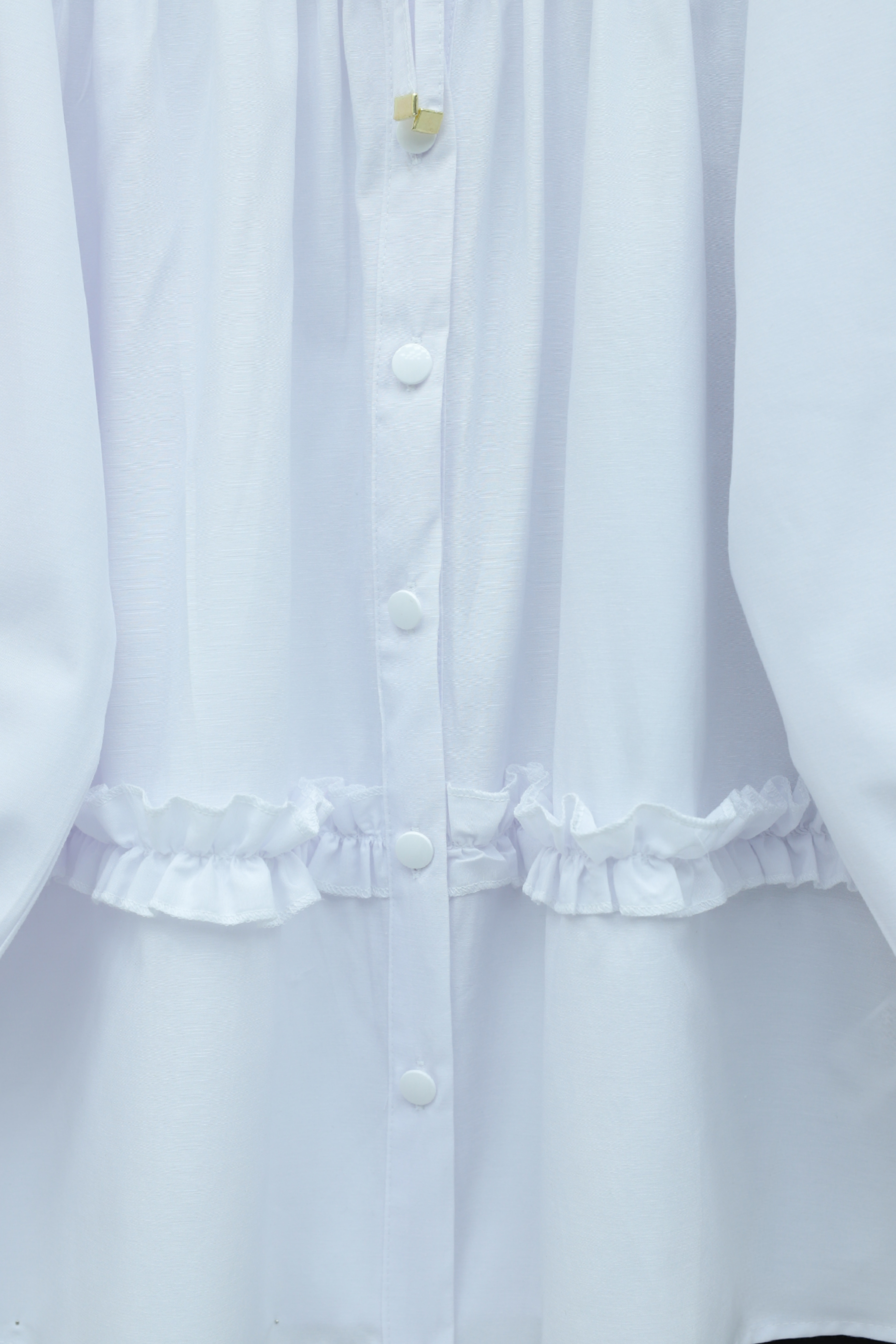 Poplin Tunic with Elasticated Waist, Ruffled Skirt and Button Closure -White