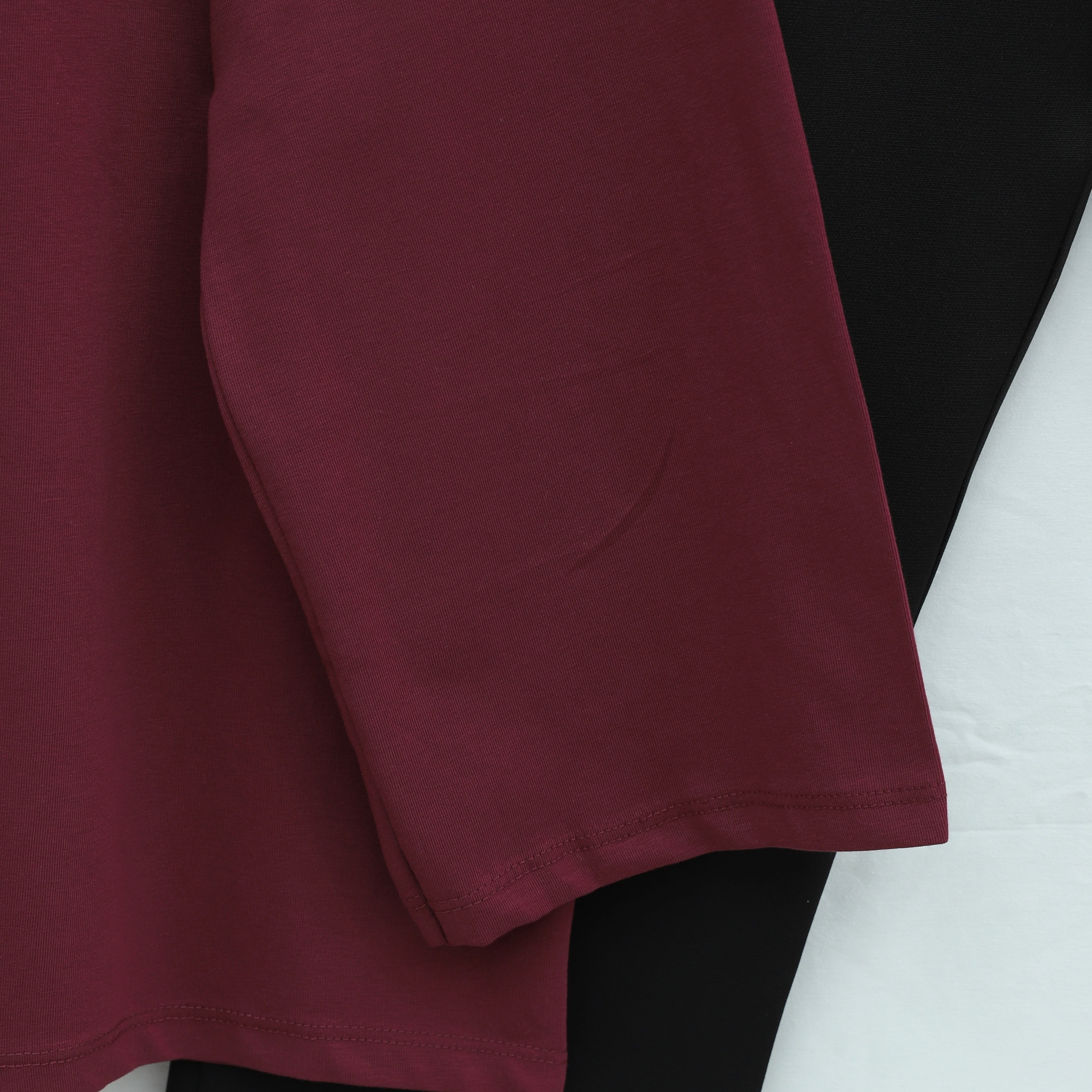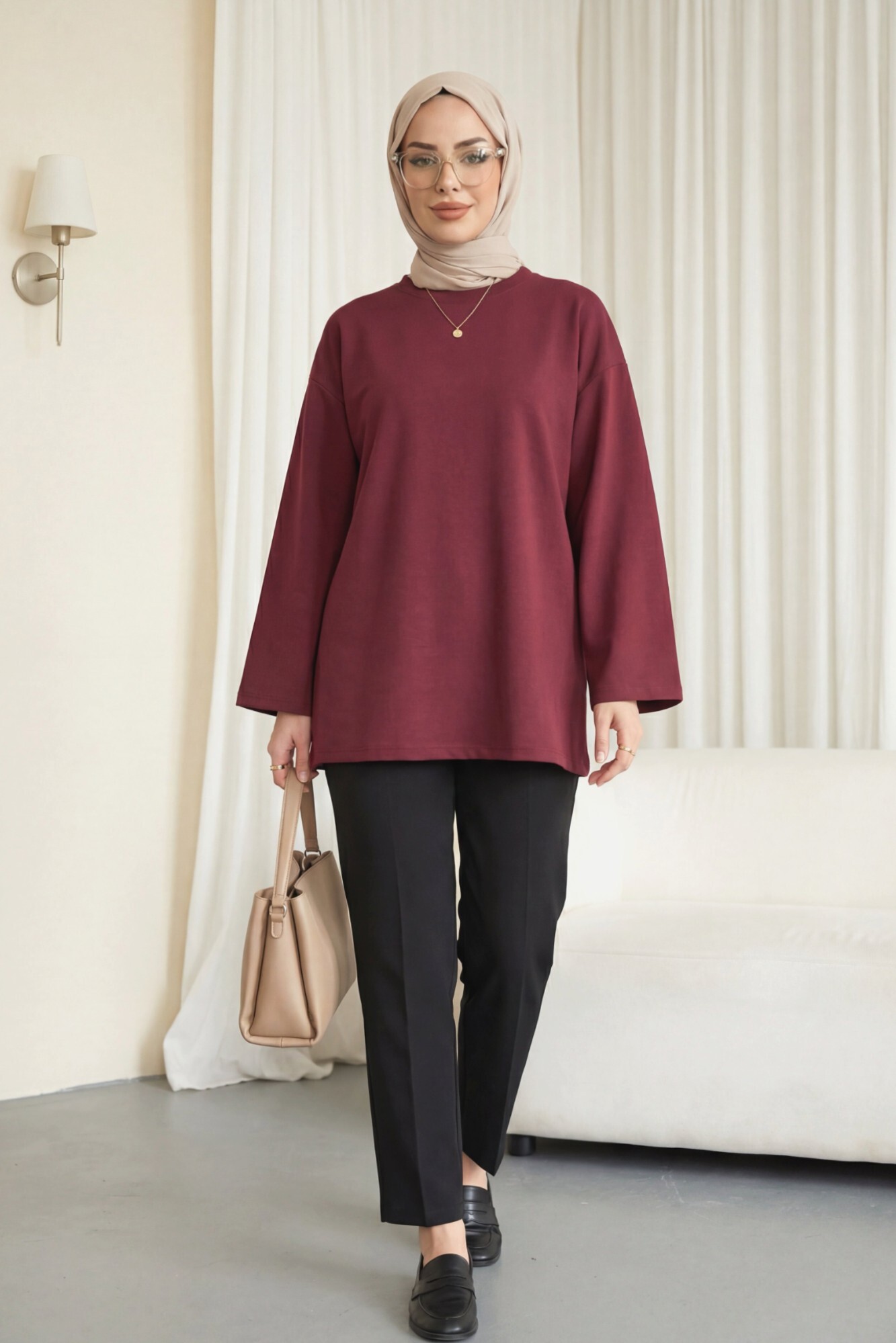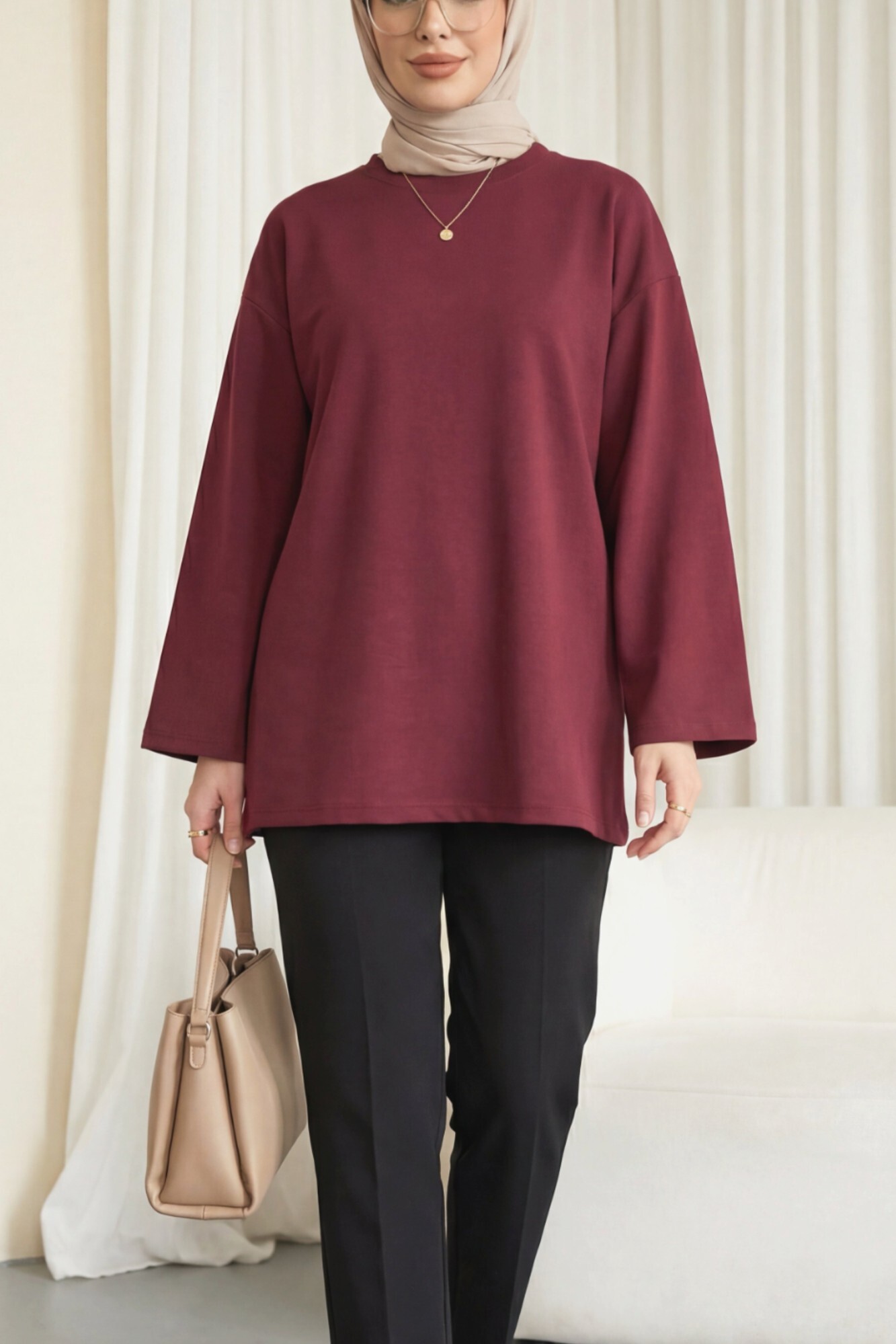 Round Neck Loose Fit Cotton Tunic -Maroon