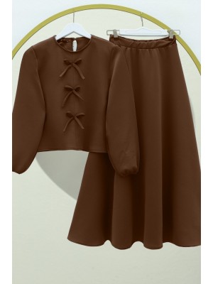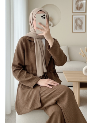 Covered Tunnel Bridge Jacket Linen Set -Brown