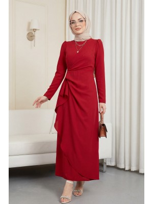 Asymmetrical Crepe Dress with Front Allery Skirt -Maroon