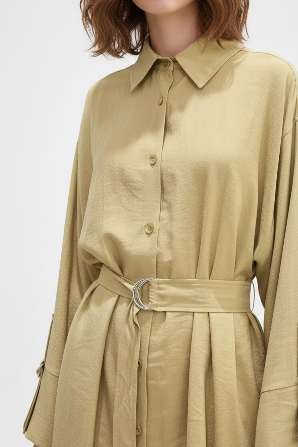 Women's Long Buttoned Belted Shirt