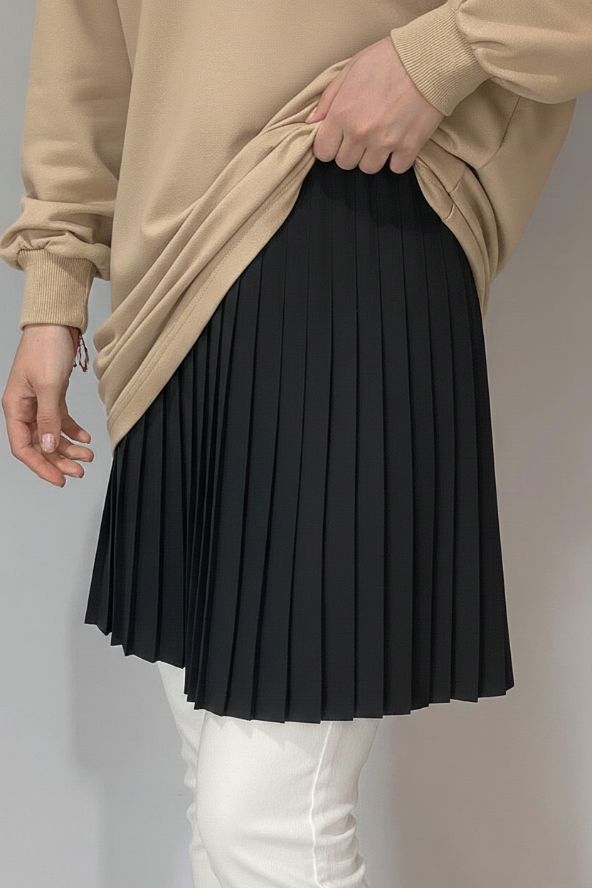 Elastic Waist Pleated Undershirt -Black