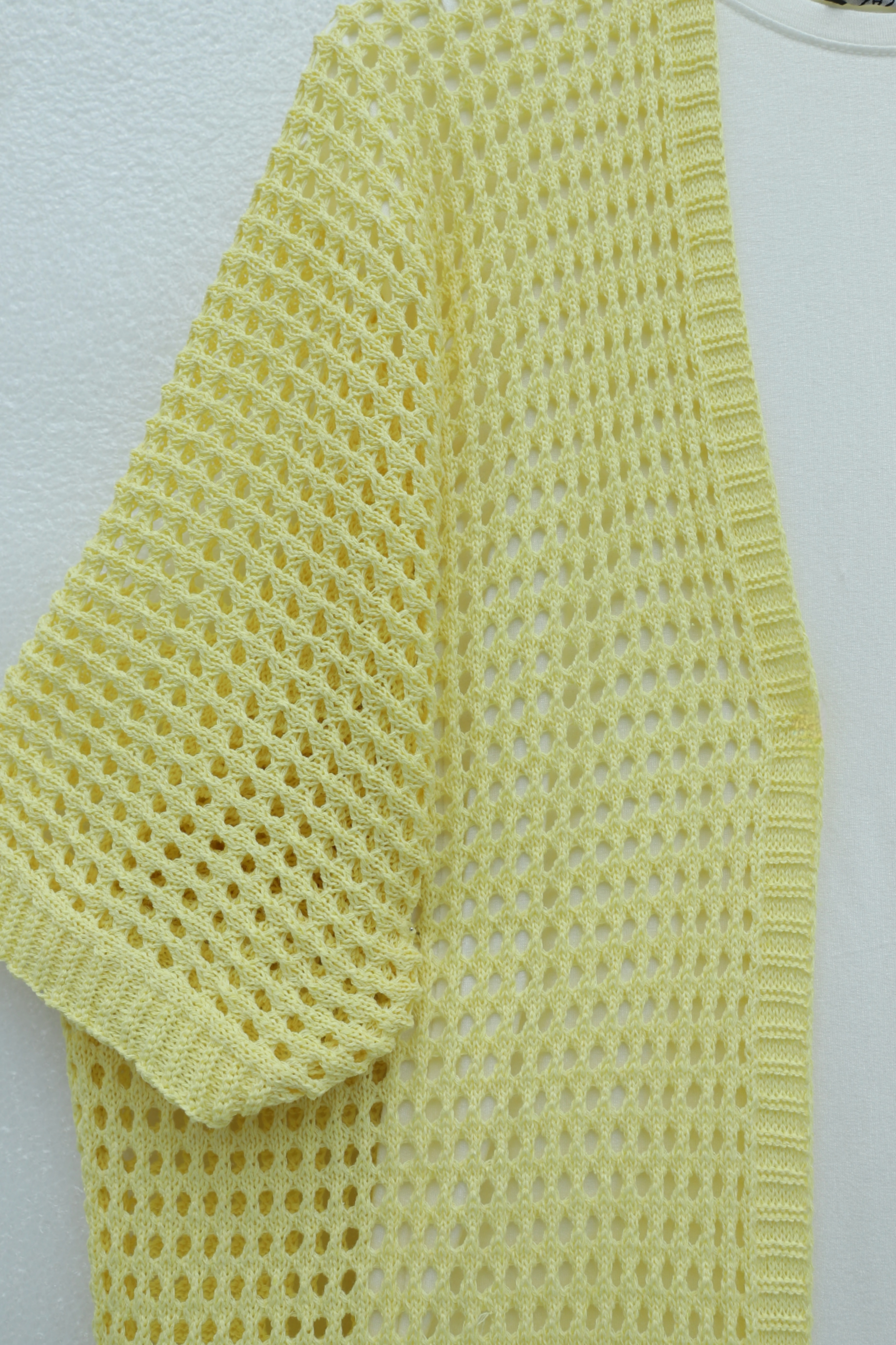 Bat Half Sleeve Openwork Knitwear Cardigan -Yellow