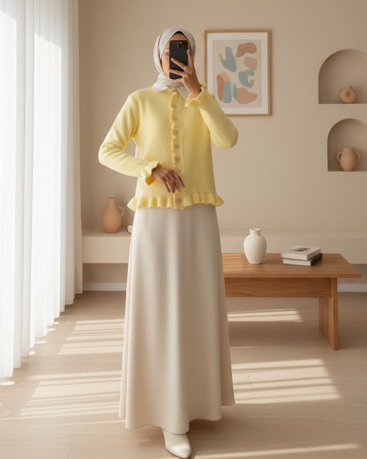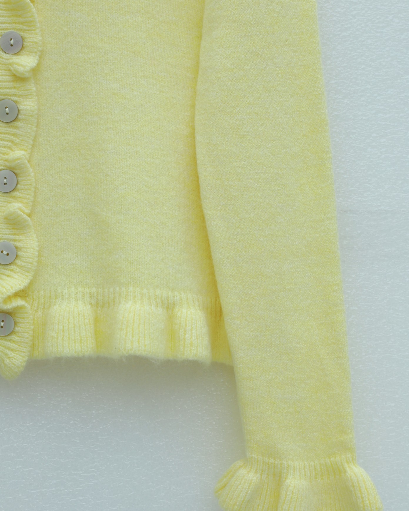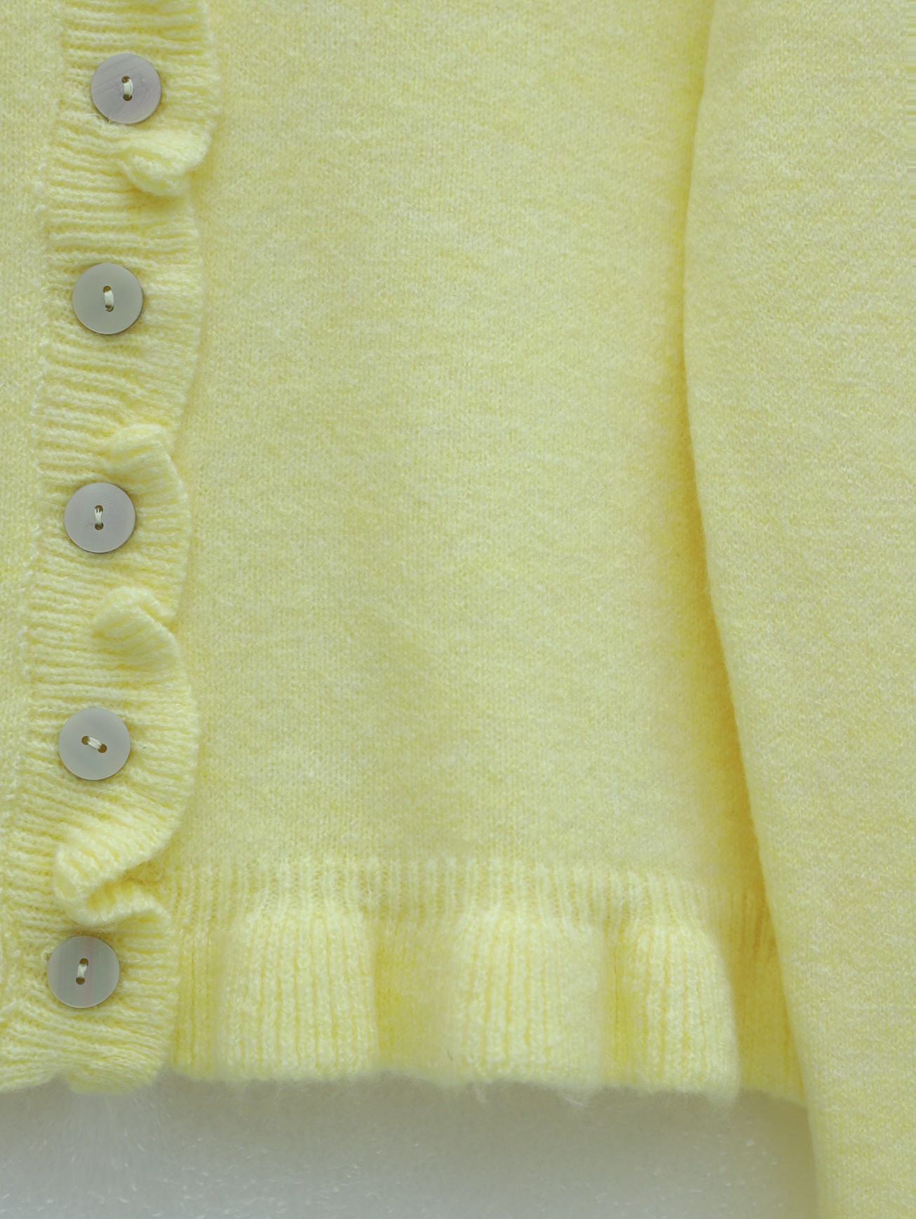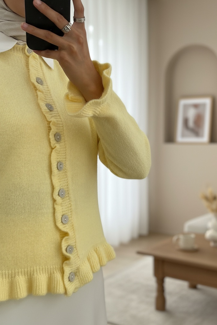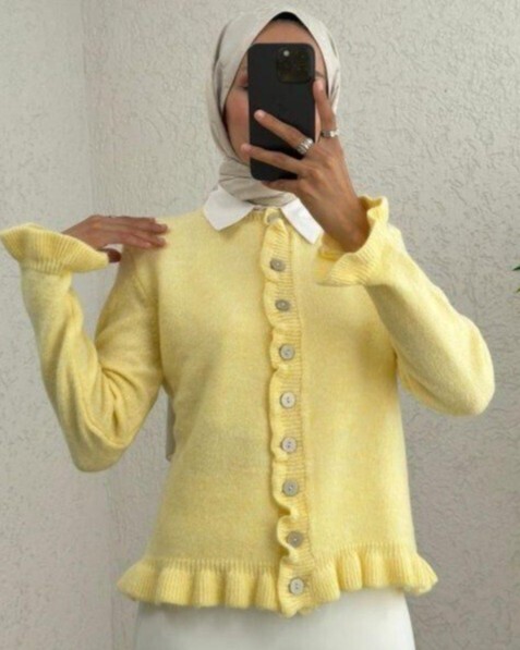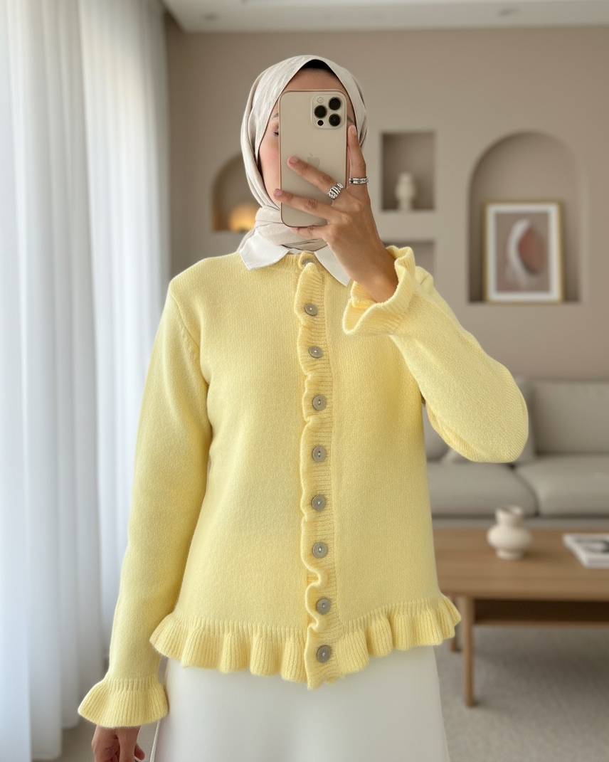 Buttoned Front and Ruffled Skirt Cardigan -Light yellow