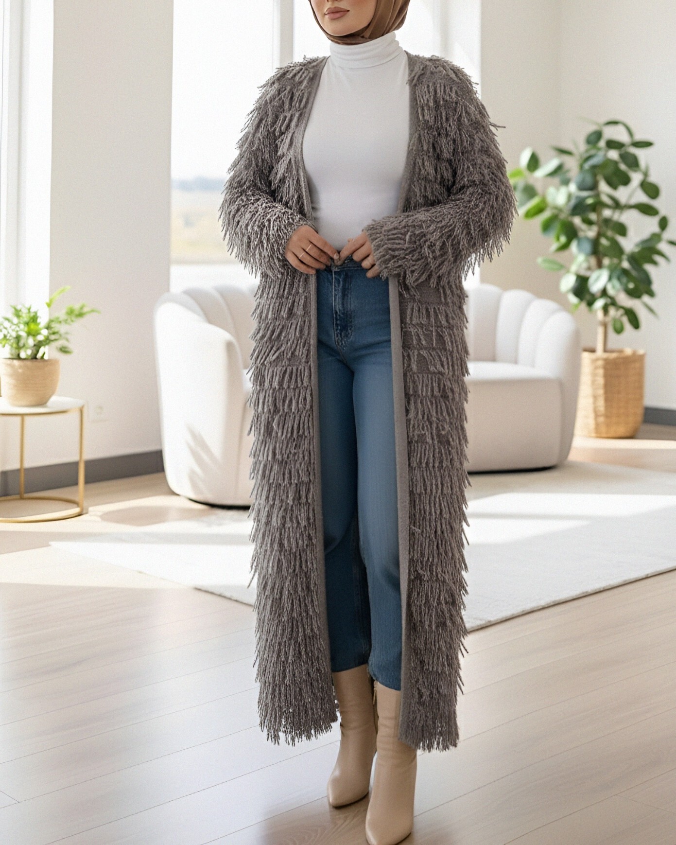 Kimono Set with Double Front Tie and Trousers -Khaki