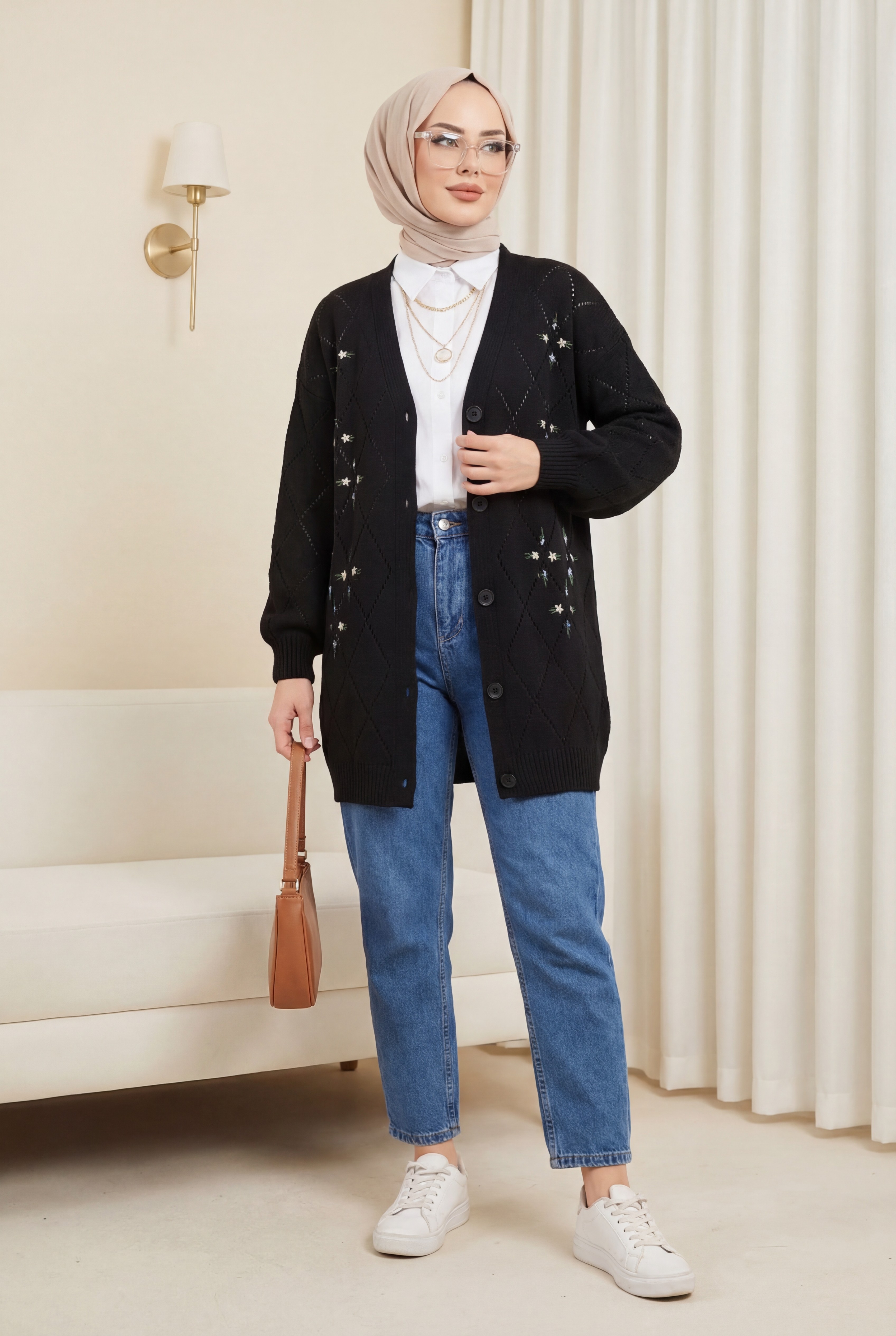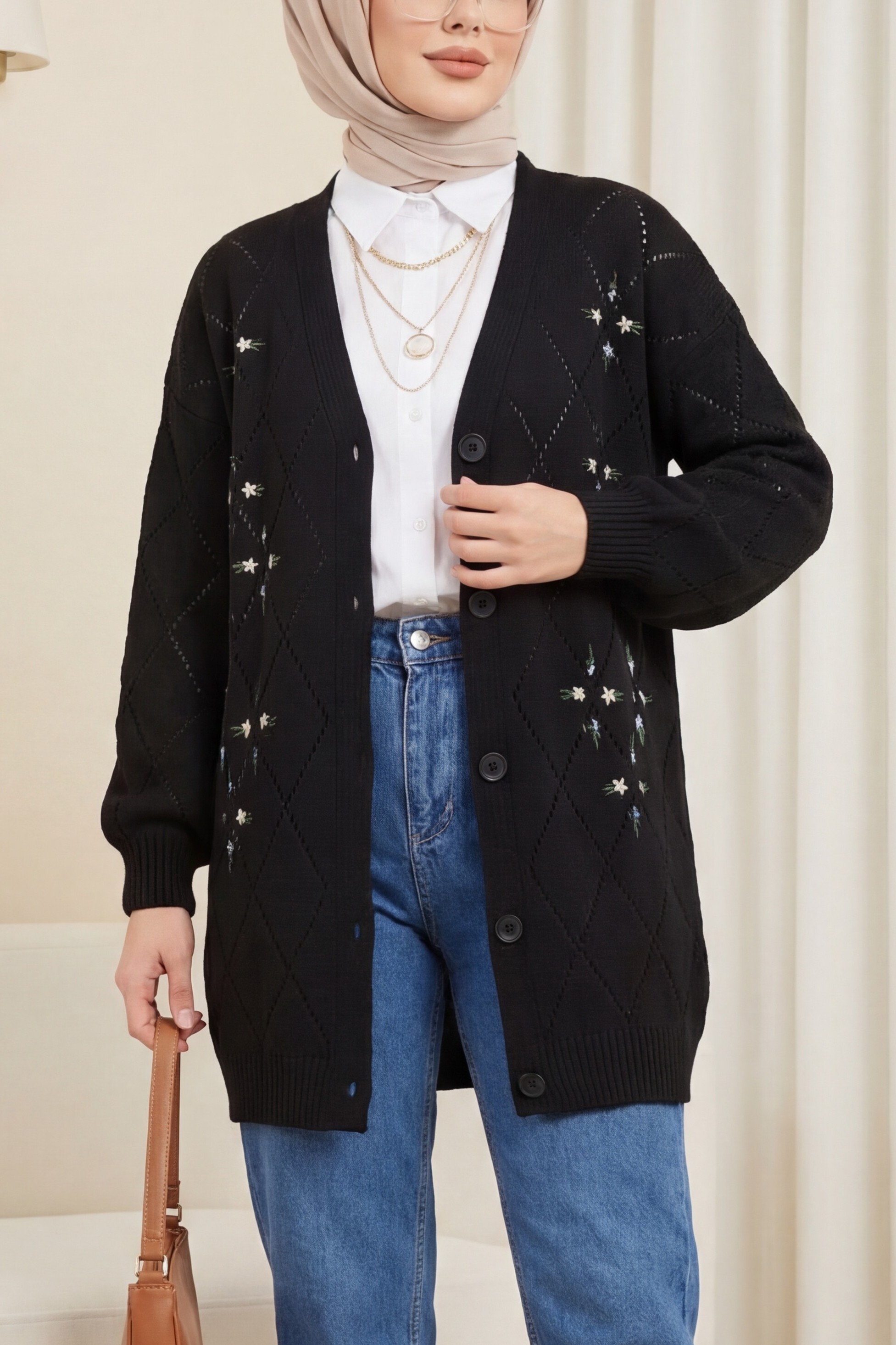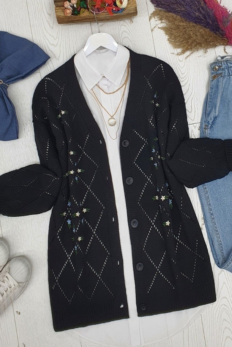 Our front buttoned, embroidered knit cardigan model is among the most trendy models of the new season.