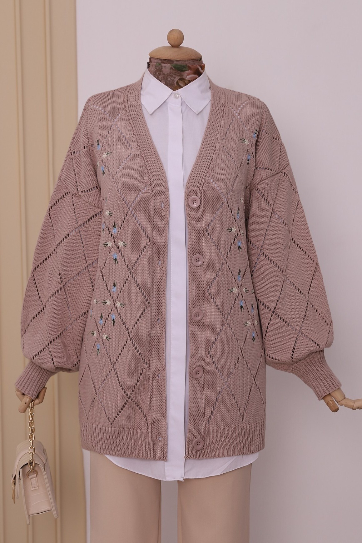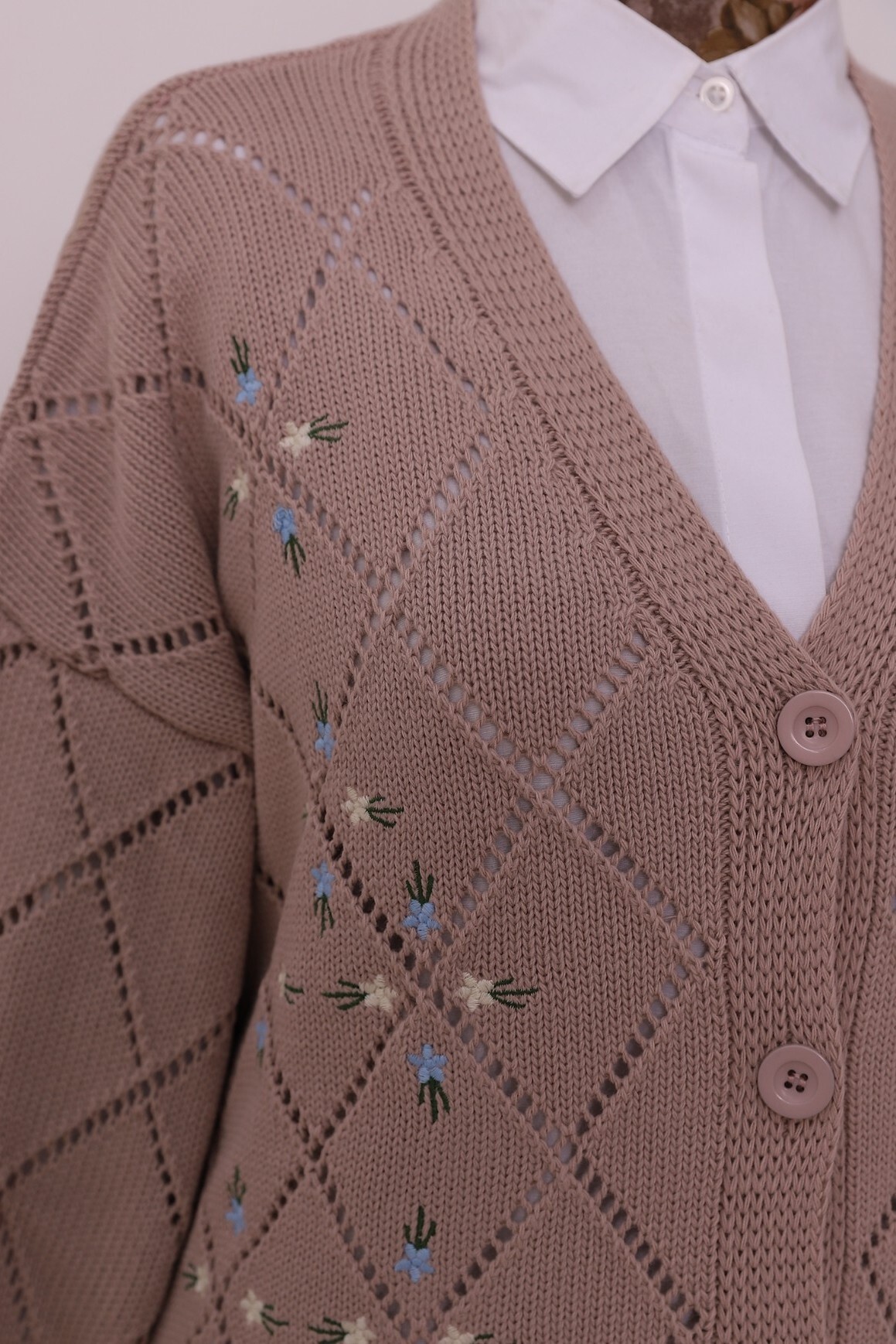 Our front buttoned, embroidered knit cardigan model is among the most trendy models of the new season.