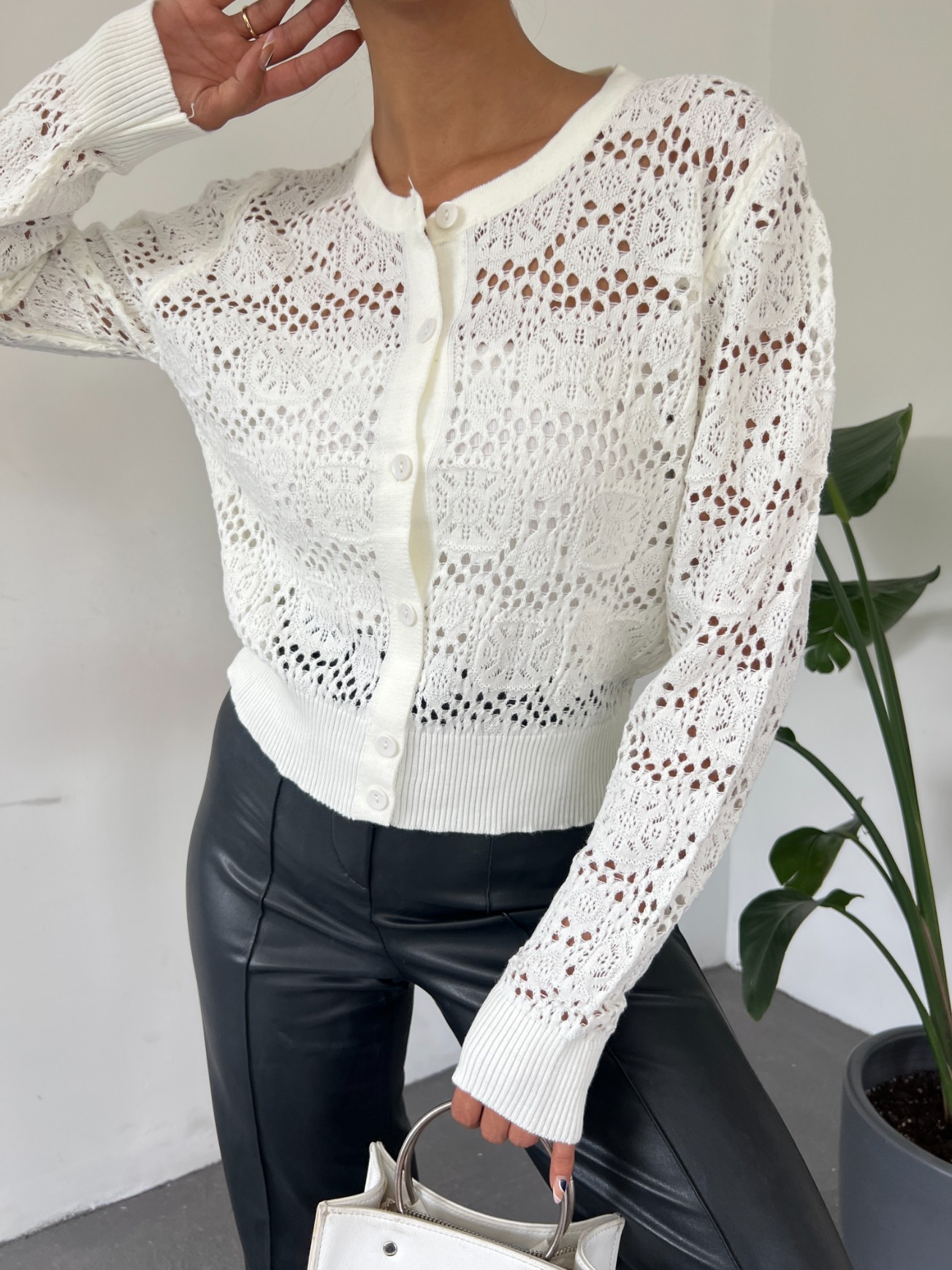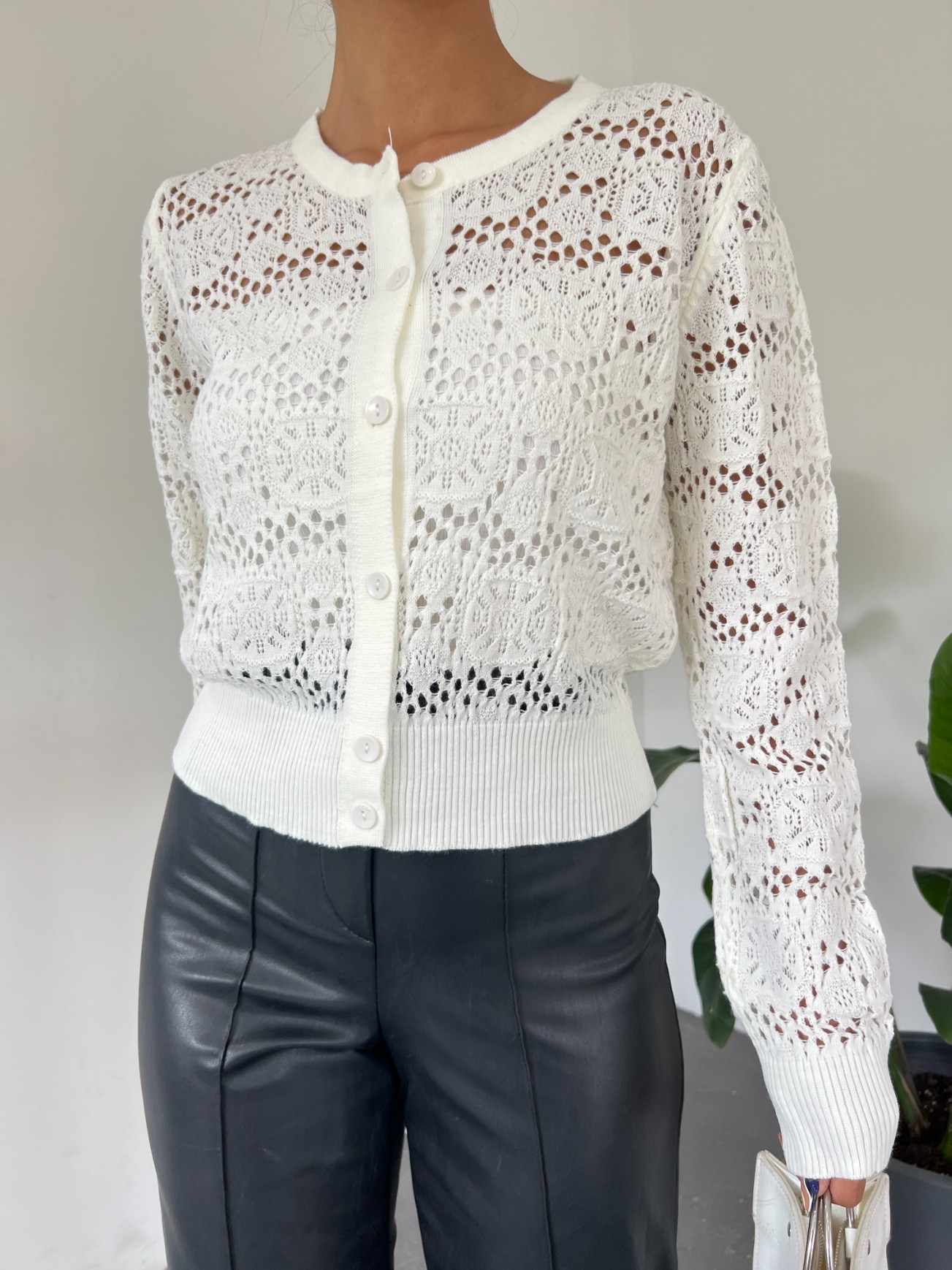 Our knit cardigan model with front button, openwork, sleeve cuffs and elasticated hem is among the most popular models of the new season.