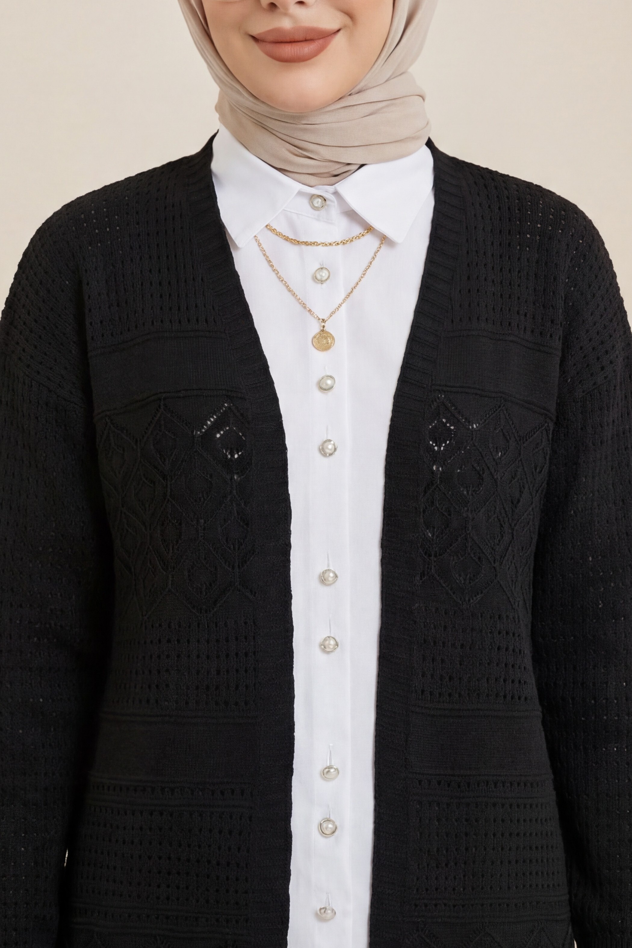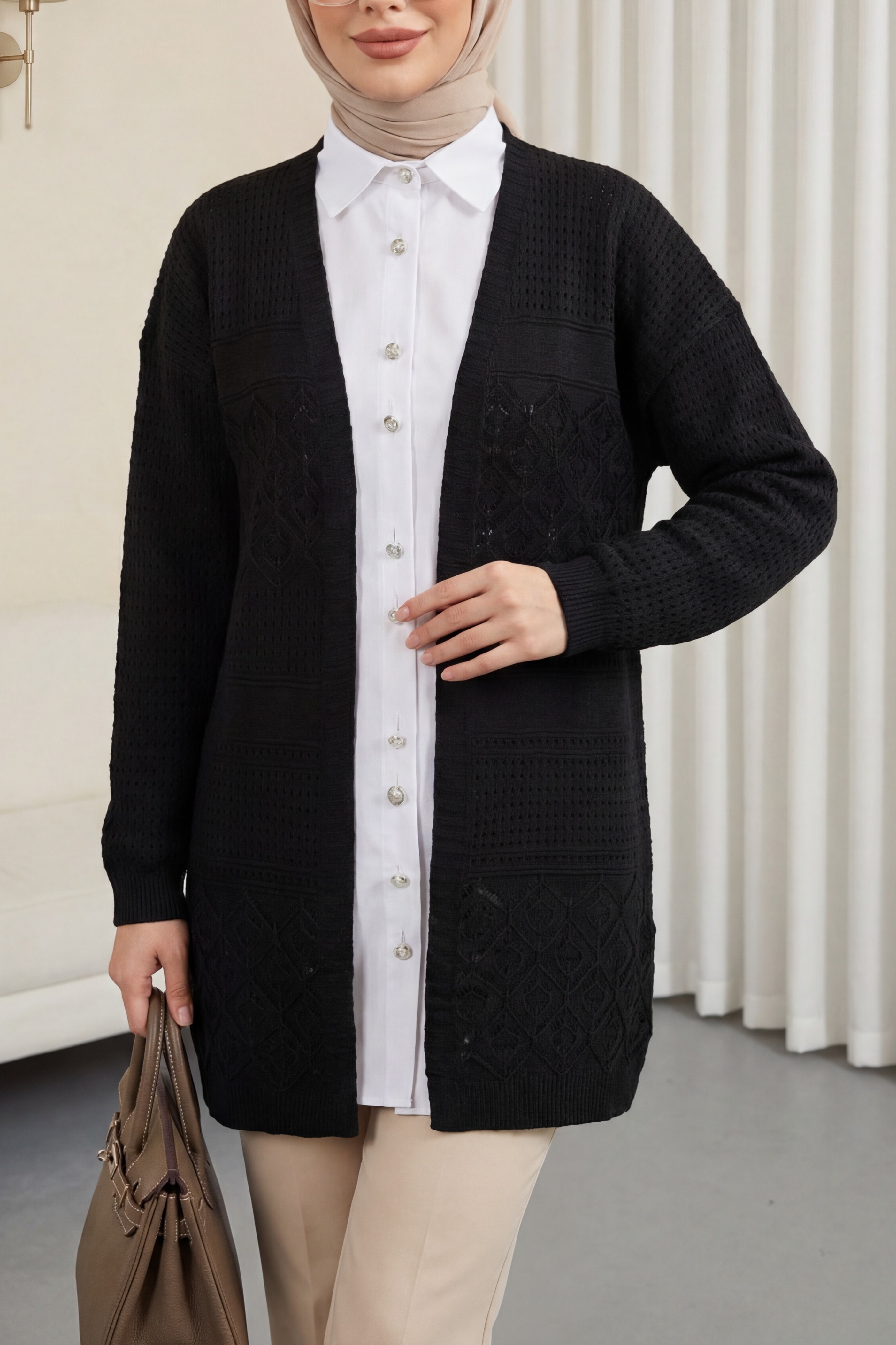 Openwork Seasonal Knitwear Cardigan -Black