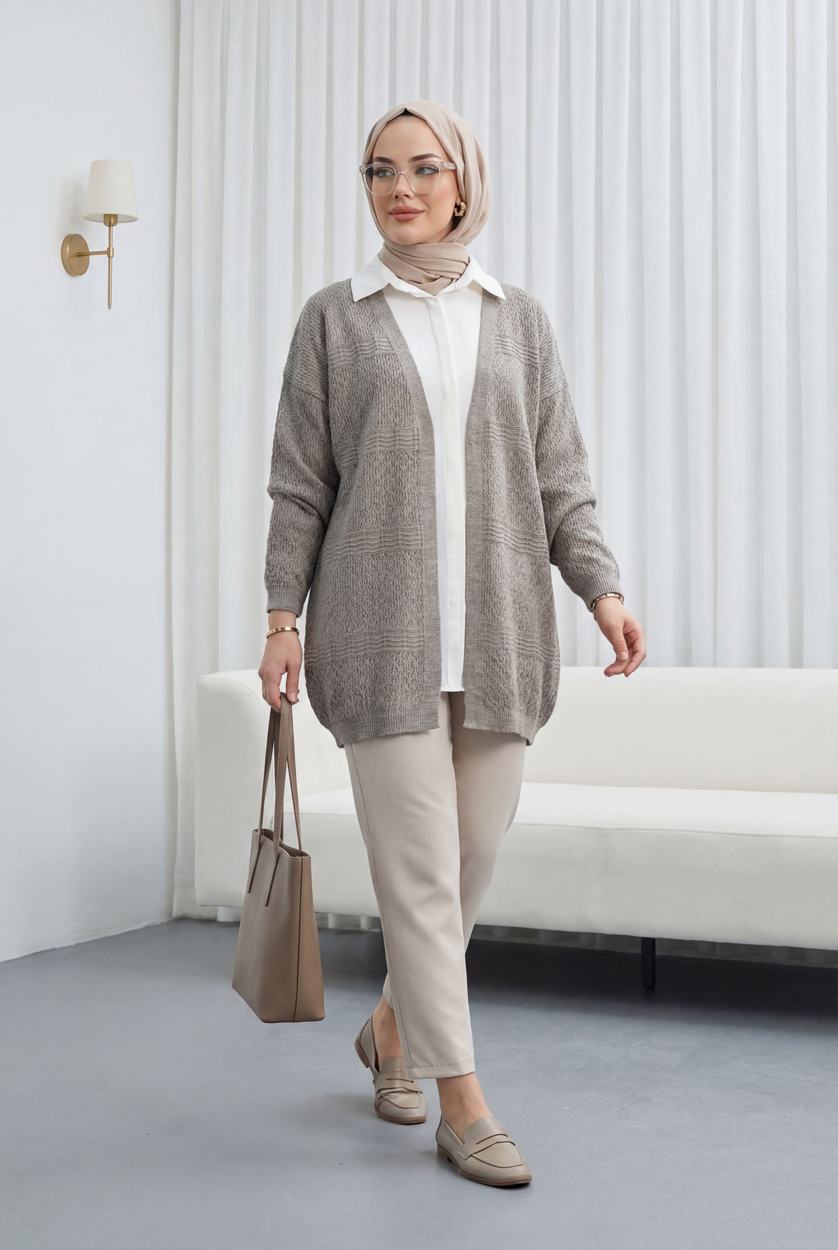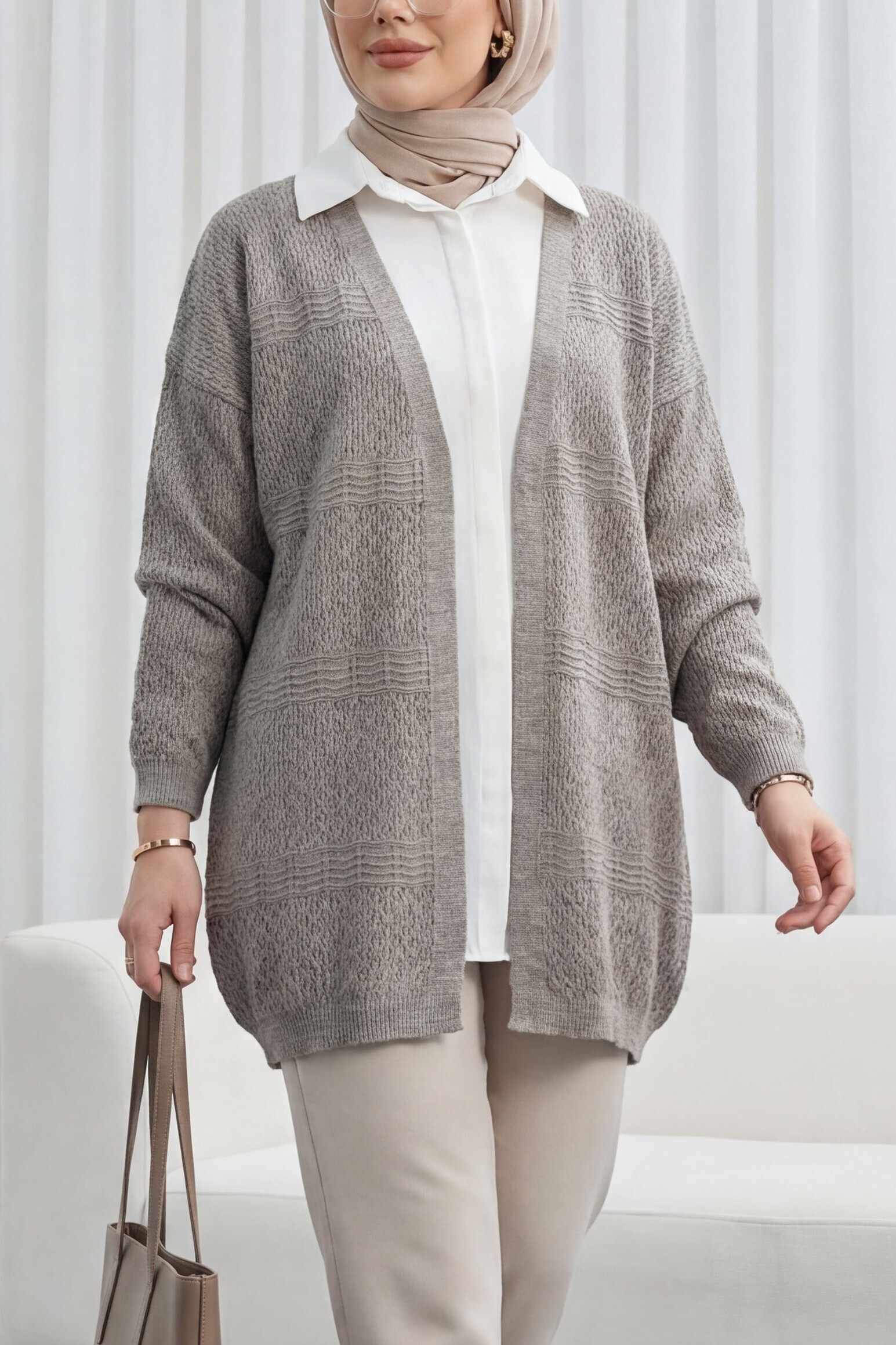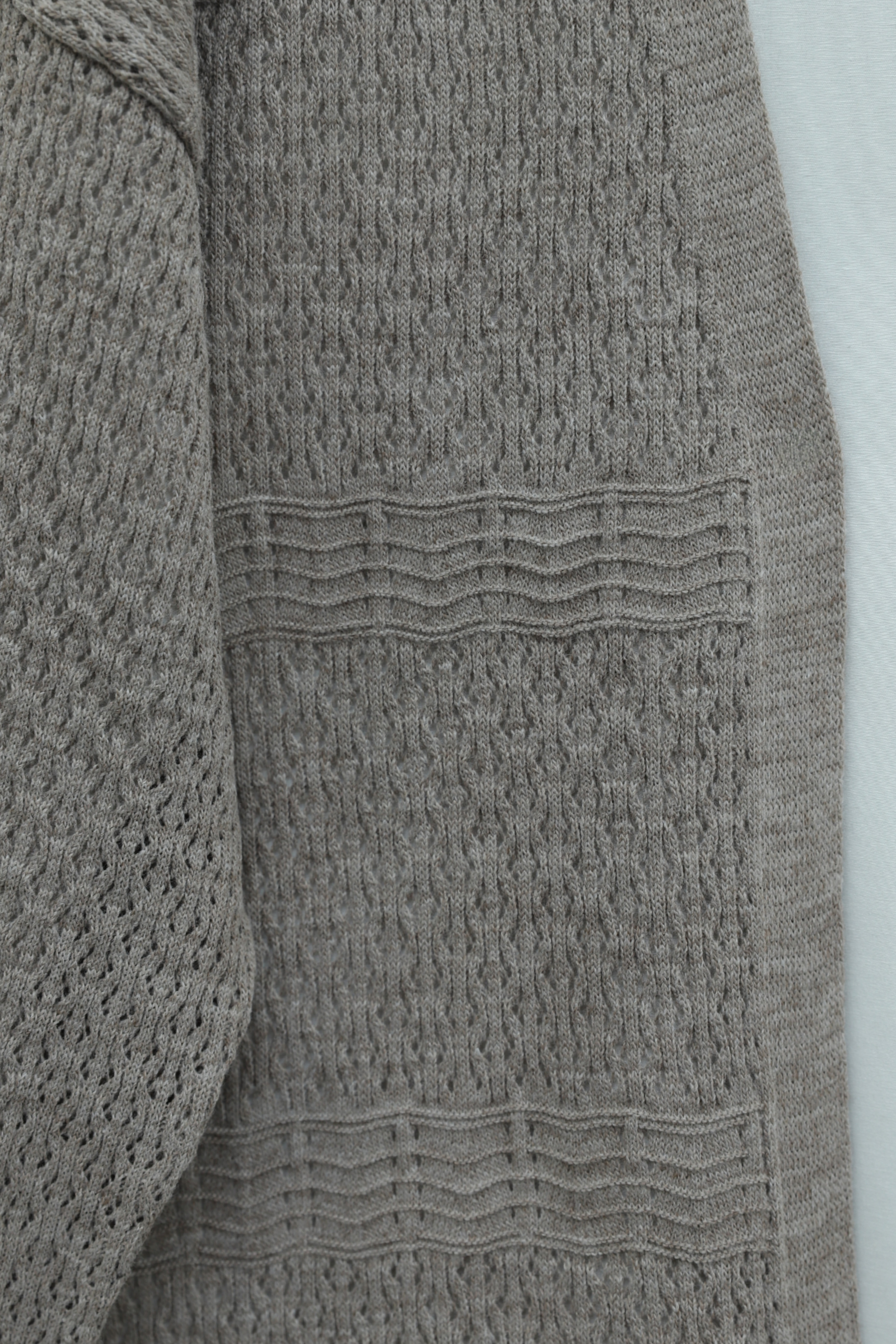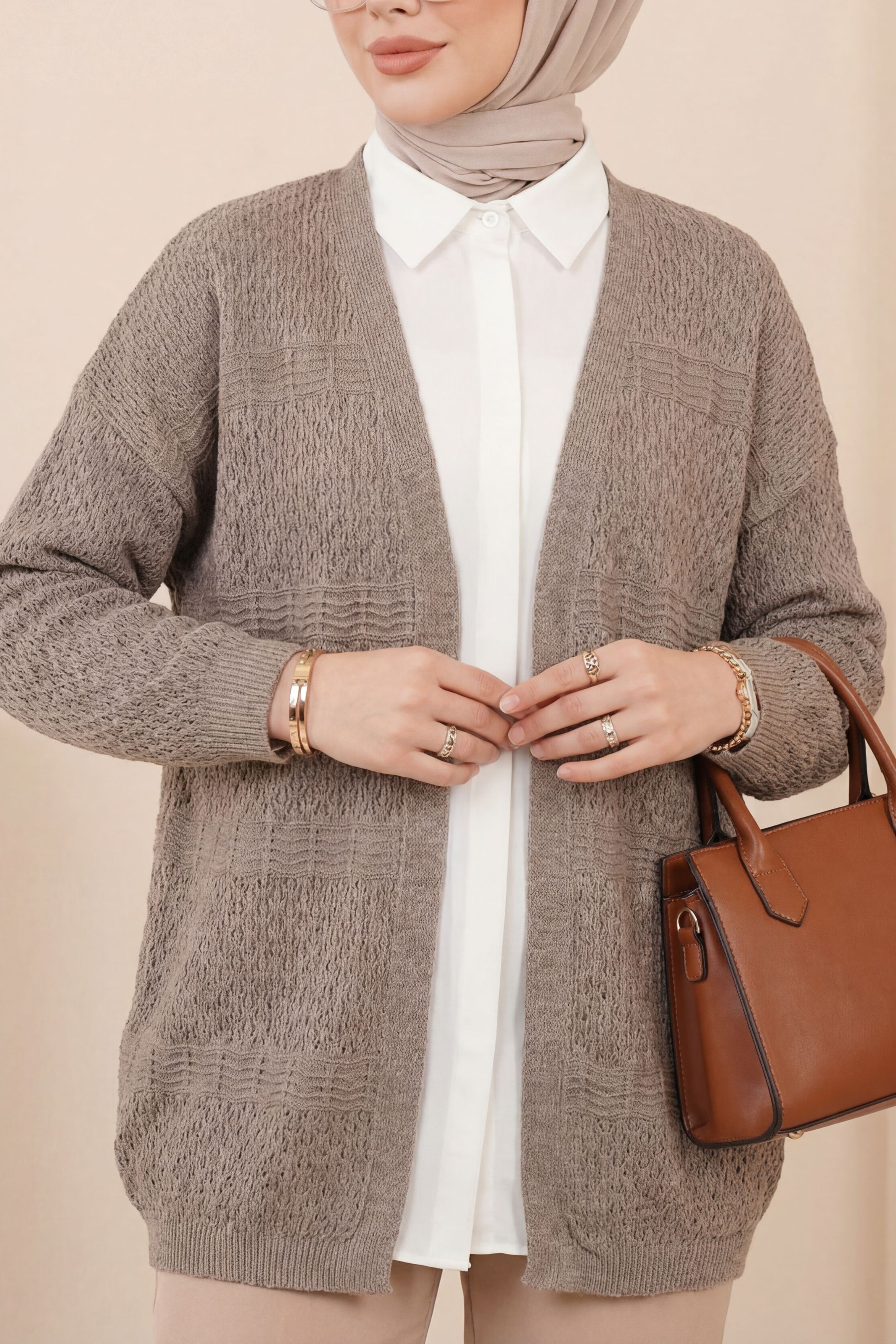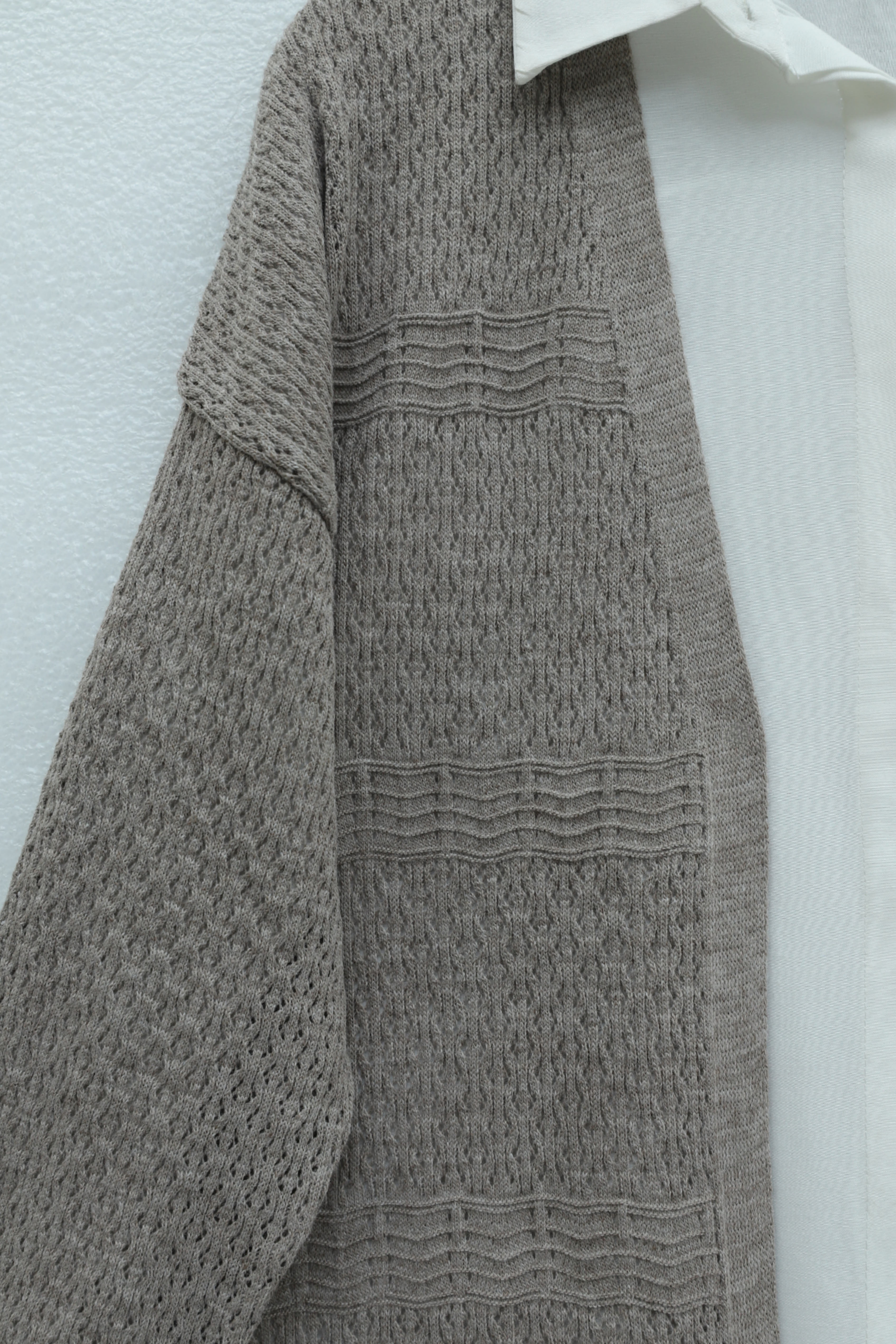 Openwork Wave Pattern Knitted Cardigan -Light coffee