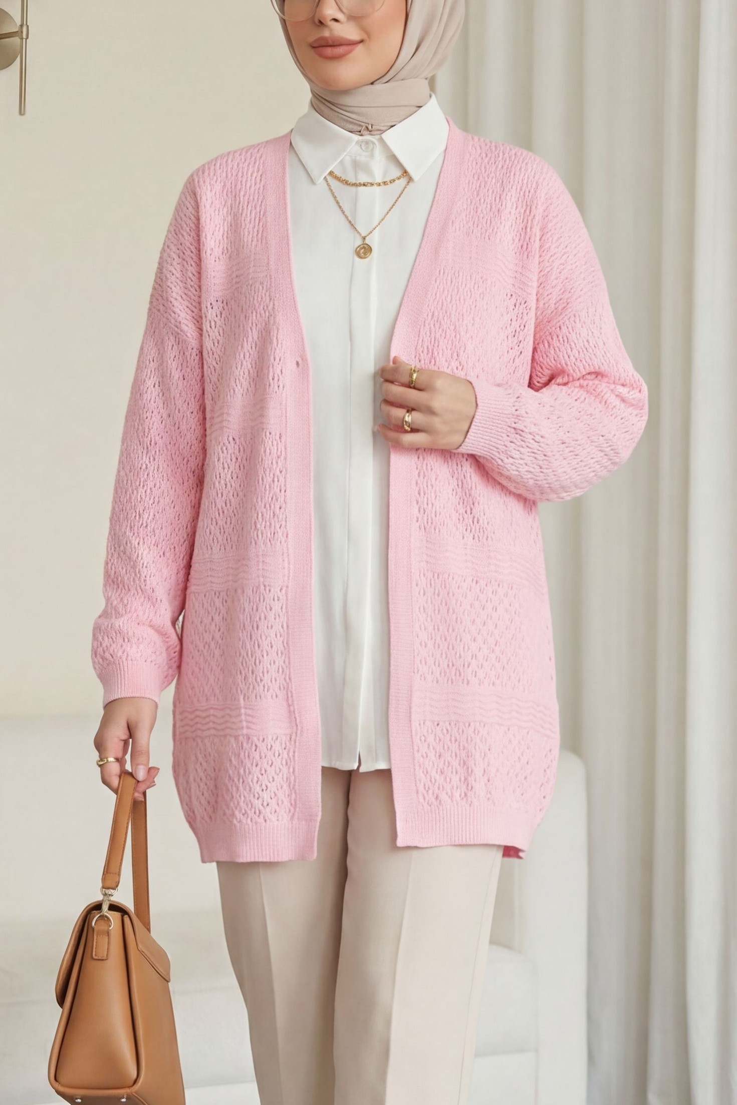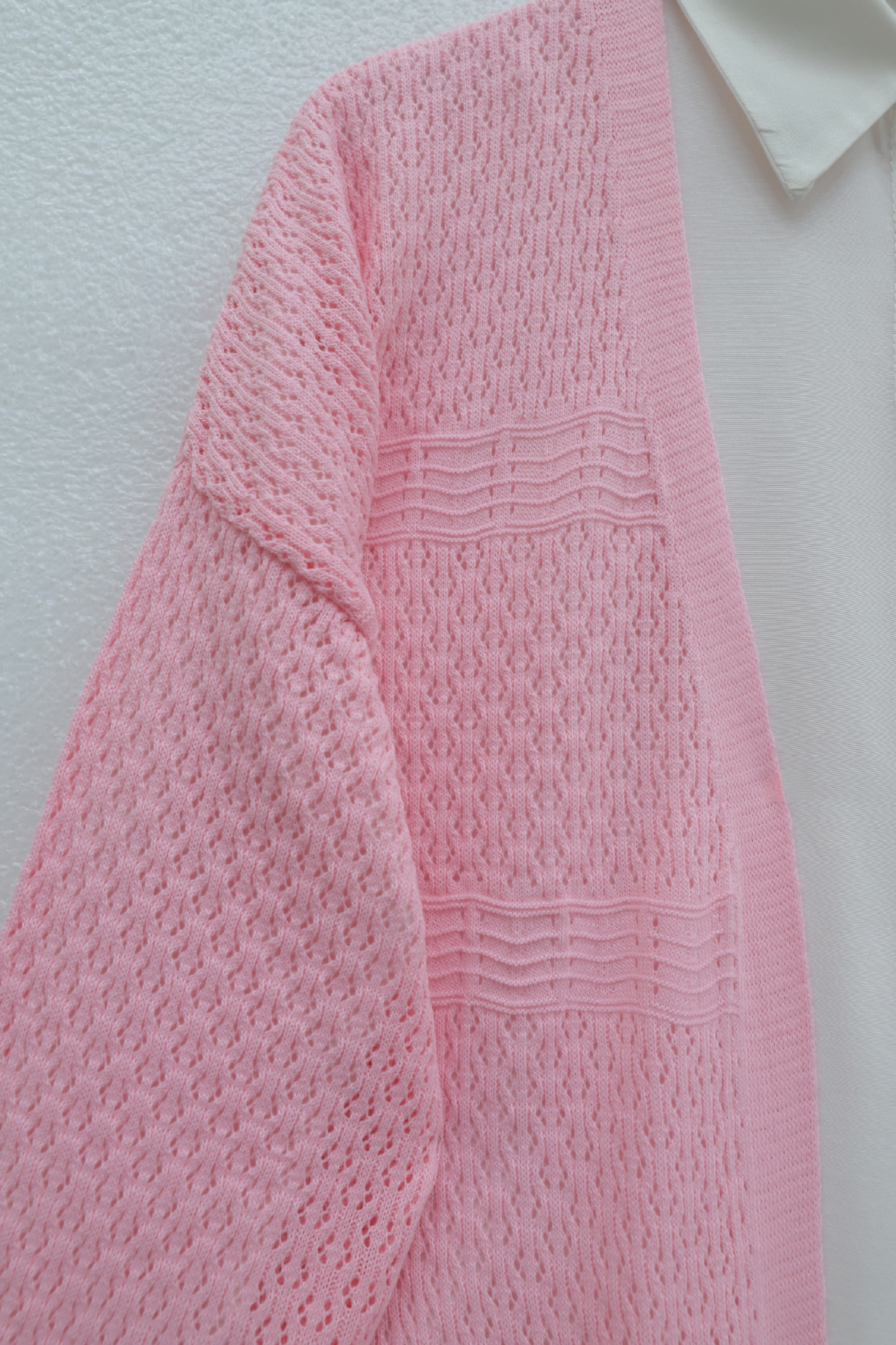 Openwork Wave Pattern Knitted Cardigan -Pink