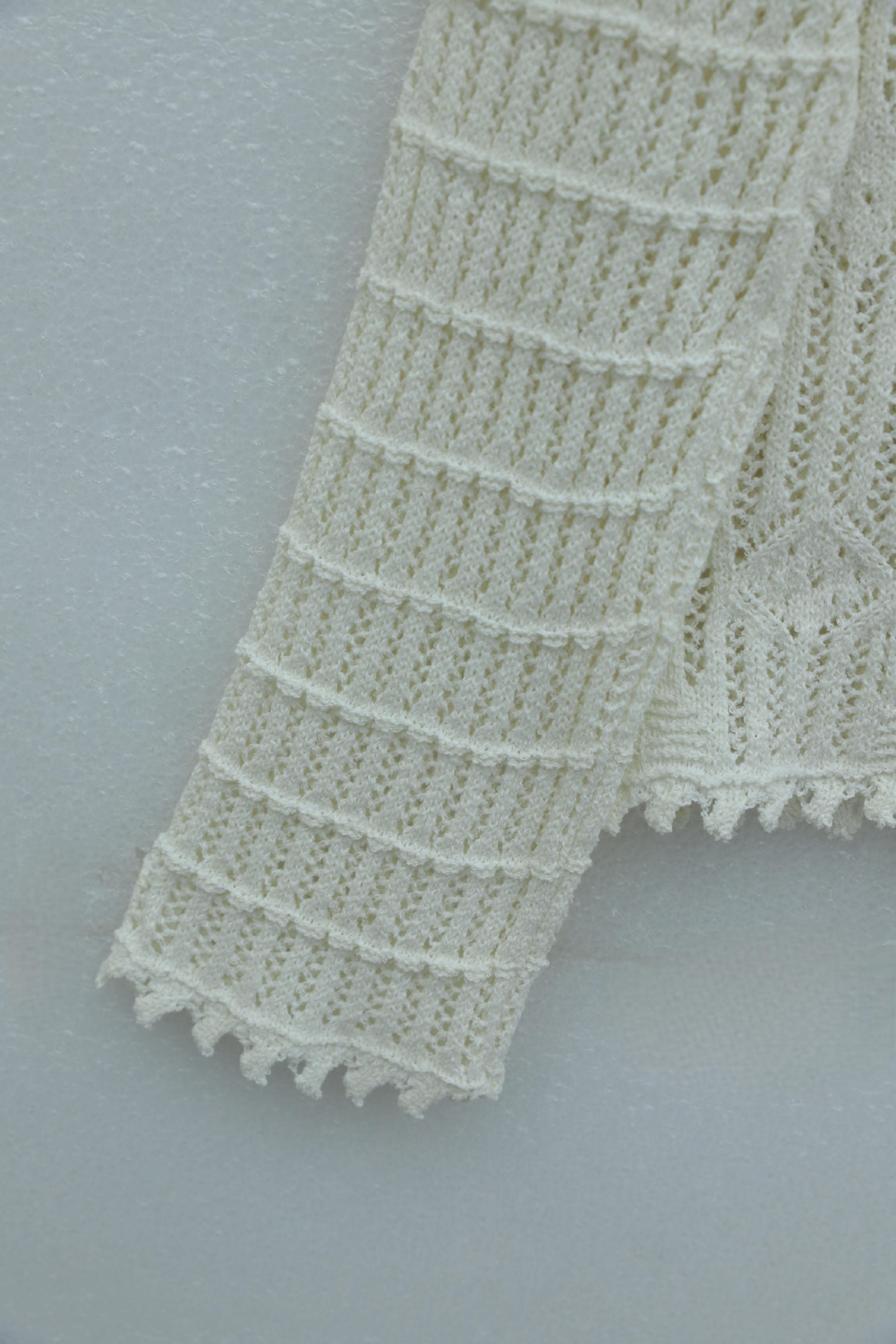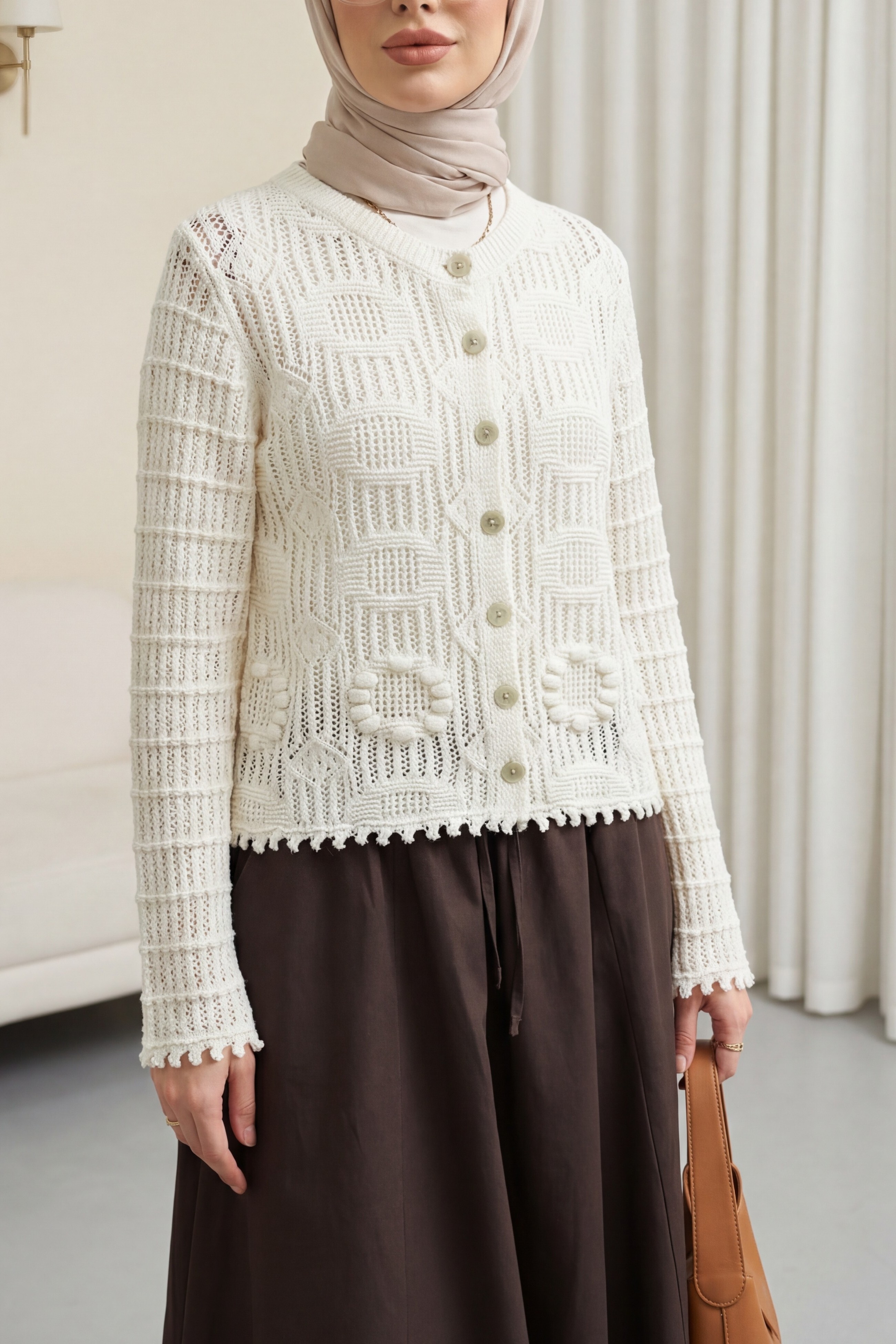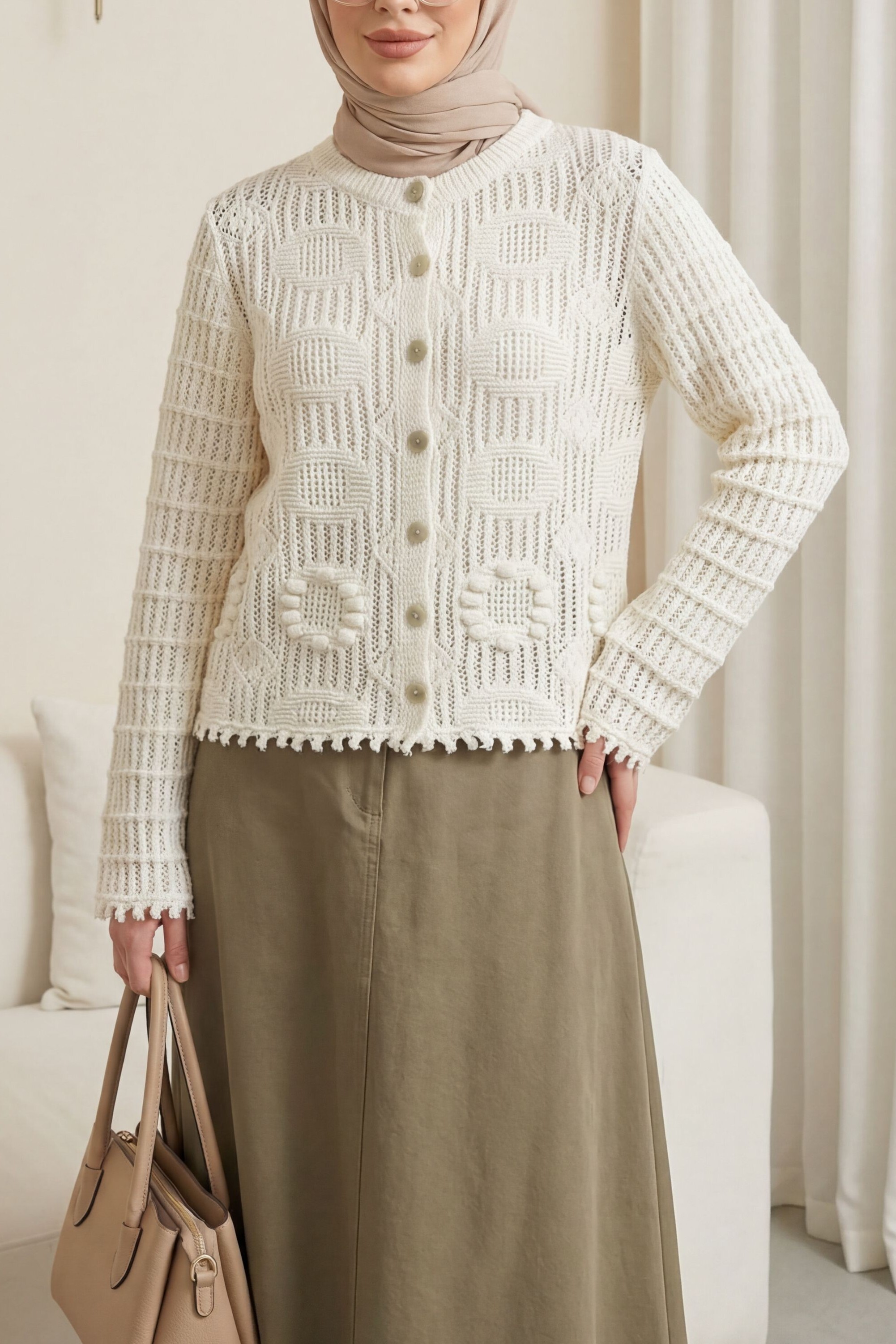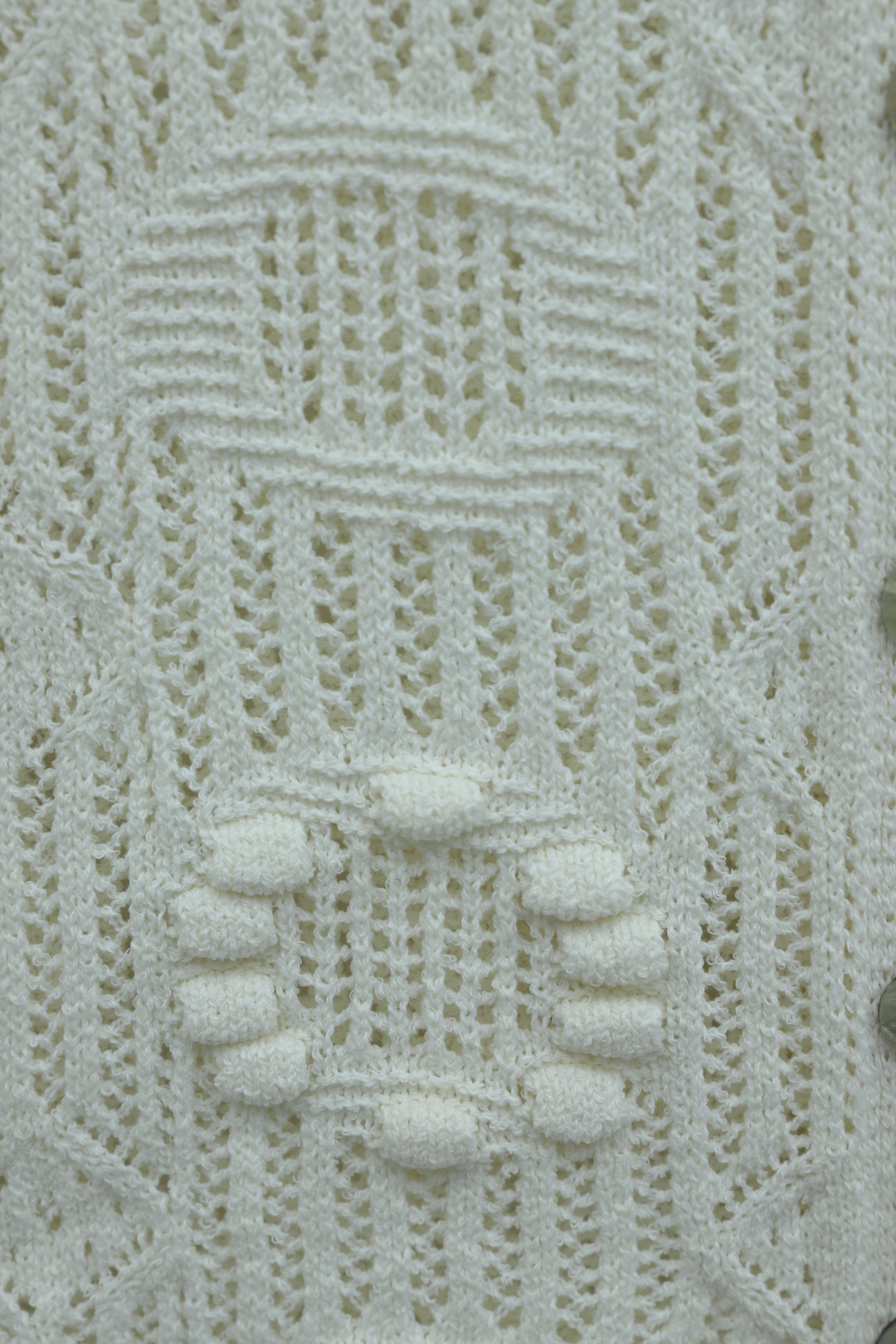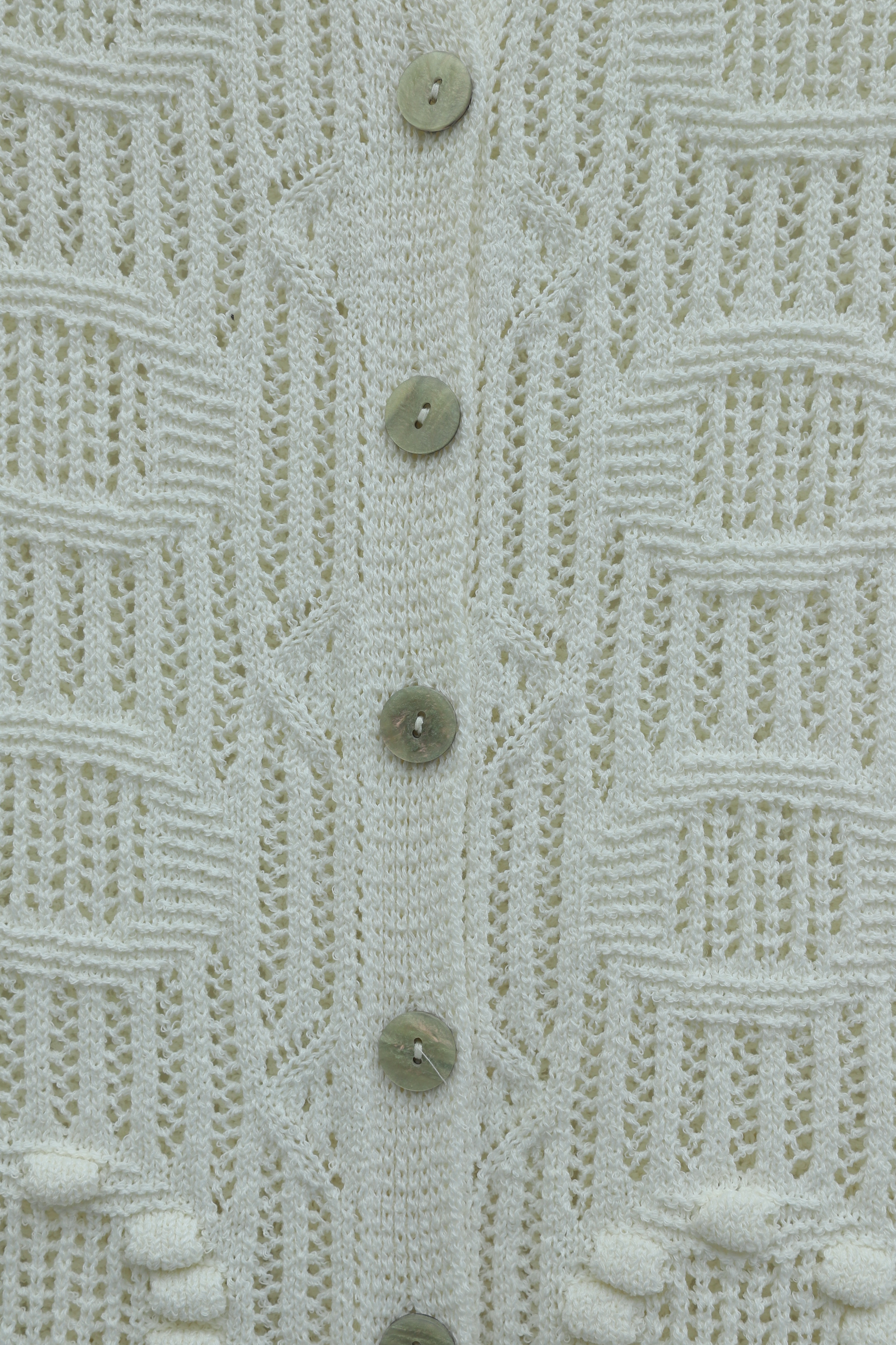 Oval Pattern Openwork Buttoned Knit Cardigan -Ecru